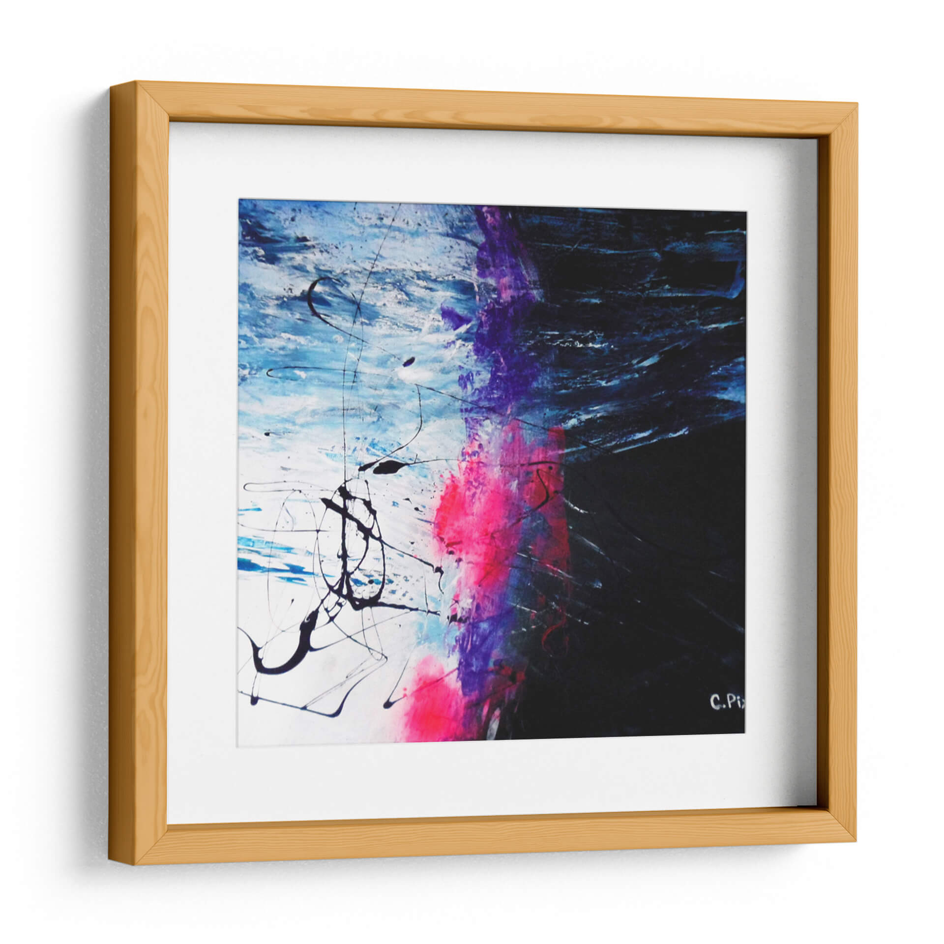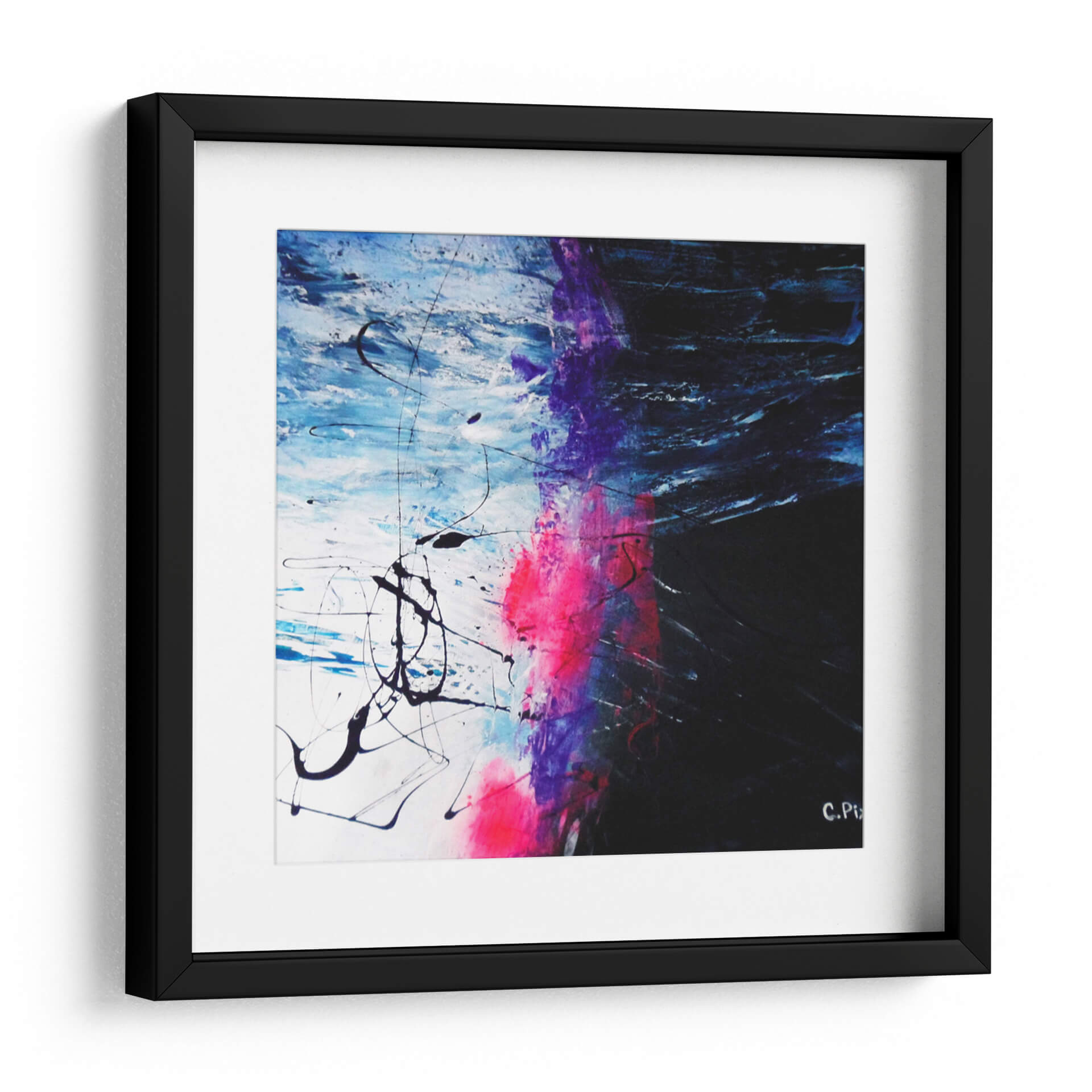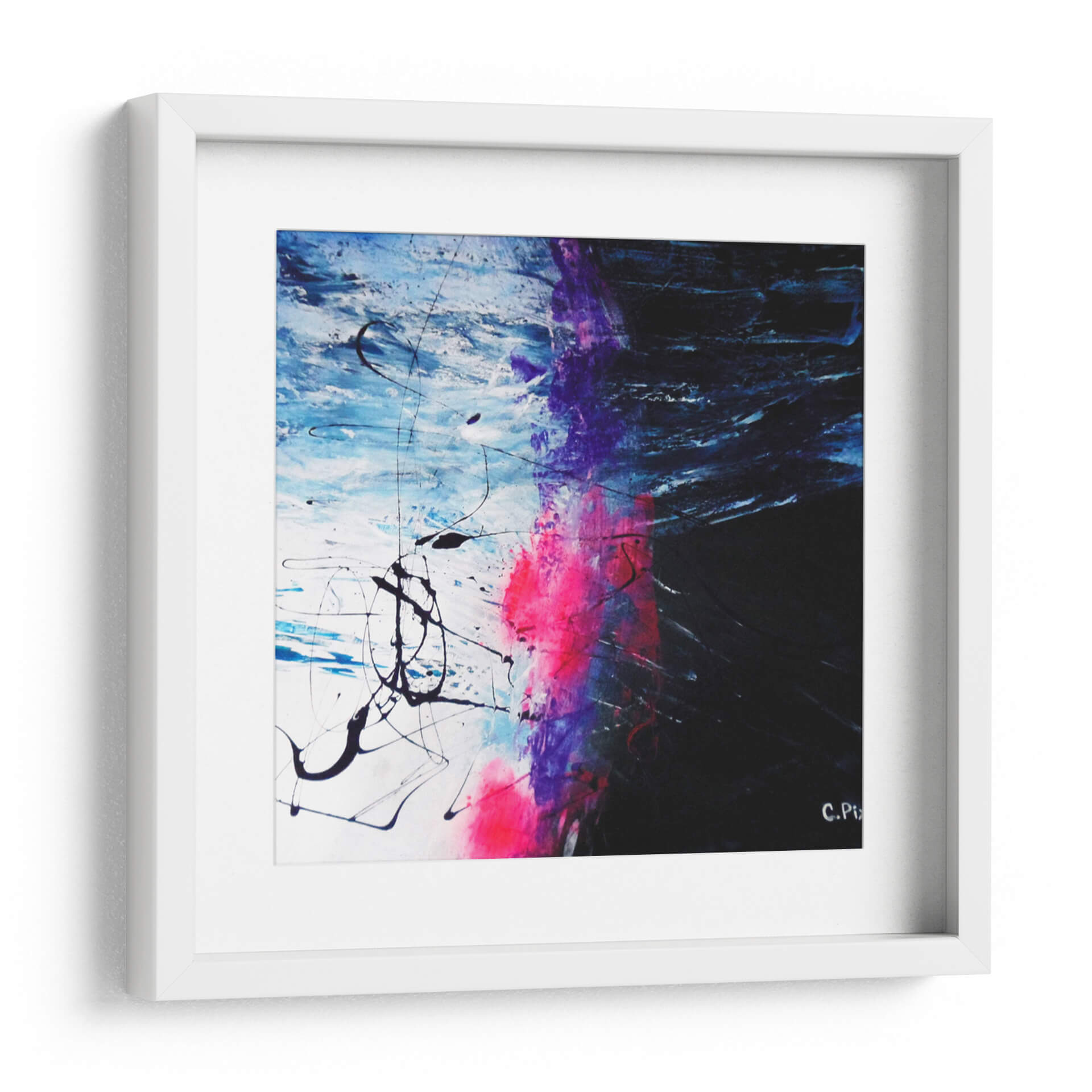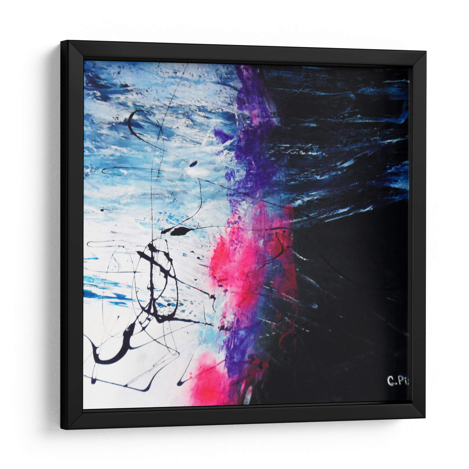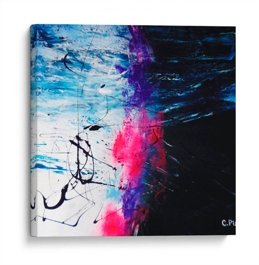 Embárquese en una travesía visual con "Caminata Espacial", una obra abstracta que invita a la contemplación y la aventura. Los vibrantes estallidos de color rosa fucsia y morado intenso contrastan con profundos tonos de azul eléctrico y blanco nítido, creando una dinámica espacial que evoca la inmensidad y el misterio del cosmos. Las pinceladas enérgicas y las líneas fluidas, tanto gruesas como finas, sugieren movimiento y energía, como si se tratara de un torbellino de fuerzas cósmicas o el rastro de un cometa. Este cuadro decorativo es una pieza de arte contemporáneo que rompe con lo convencional, ideal para aquellos que buscan añadir un toque de audacia y profundidad a sus espacios. Su composición abstracta permite múltiples interpretaciones, estimulando la imaginación y generando conversaciones. Perfecto para salas de estar modernas, oficinas creativas o cualquier lugar donde se desee un punto focal impactante y lleno de carácter. "Caminata Espacial" no es solo decoración, es una ventana a un universo de posibilidades, un lienzo que captura la esencia de la exploración y la expresión artística libre. Añada esta obra maestra a su colección y transforme su entorno en una galería personal de inspiración.