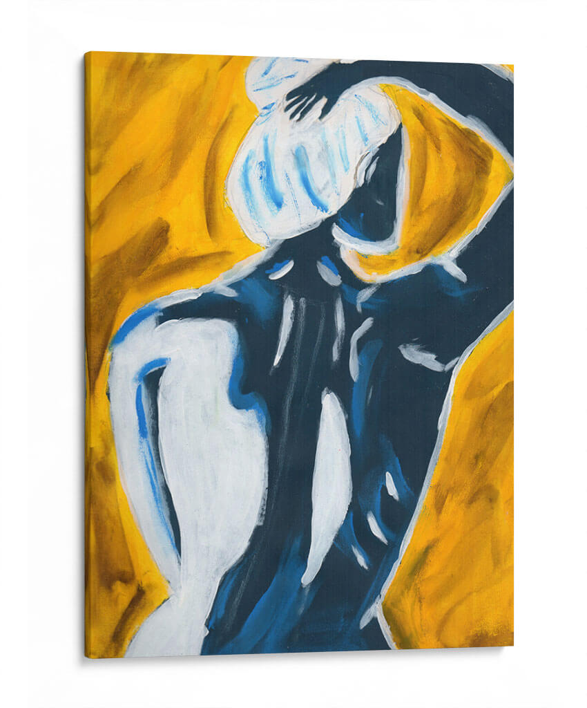 Sumérgete en la cautivadora obra de arte titulada "Dorso", creada por la talentosa Jimena Escobedo. Este cuadro decorativo abstracto captura la figura humana desde una perspectiva íntima y enigmática, invitando a la contemplación. La paleta de colores vibrantes, dominada por un intenso amarillo que contrasta con profundos tonos de azul oscuro y toques de blanco puro, crea una atmósfera de energía contenida y misterio. Las pinceladas audaces y expresivas definen las formas con una fuerza que evoca movimiento y emoción, presentando una composición dinámica que captura la mirada. El estilo artístico, que fusiona elementos abstractos con una representación figurativa estilizada, resulta en una pieza única que puede adaptarse a diversos estilos de decoración. Ideal para espacios que buscan un punto focal audaz y una dosis de arte contemporáneo, como salas de estar modernas, estudios creativos u oficinas que deseen inspirar. "Dorso" no es solo una decoración, sino una invitación a la reflexión sobre la forma, el color y la expresión humana, añadiendo carácter y profundidad a cualquier ambiente.