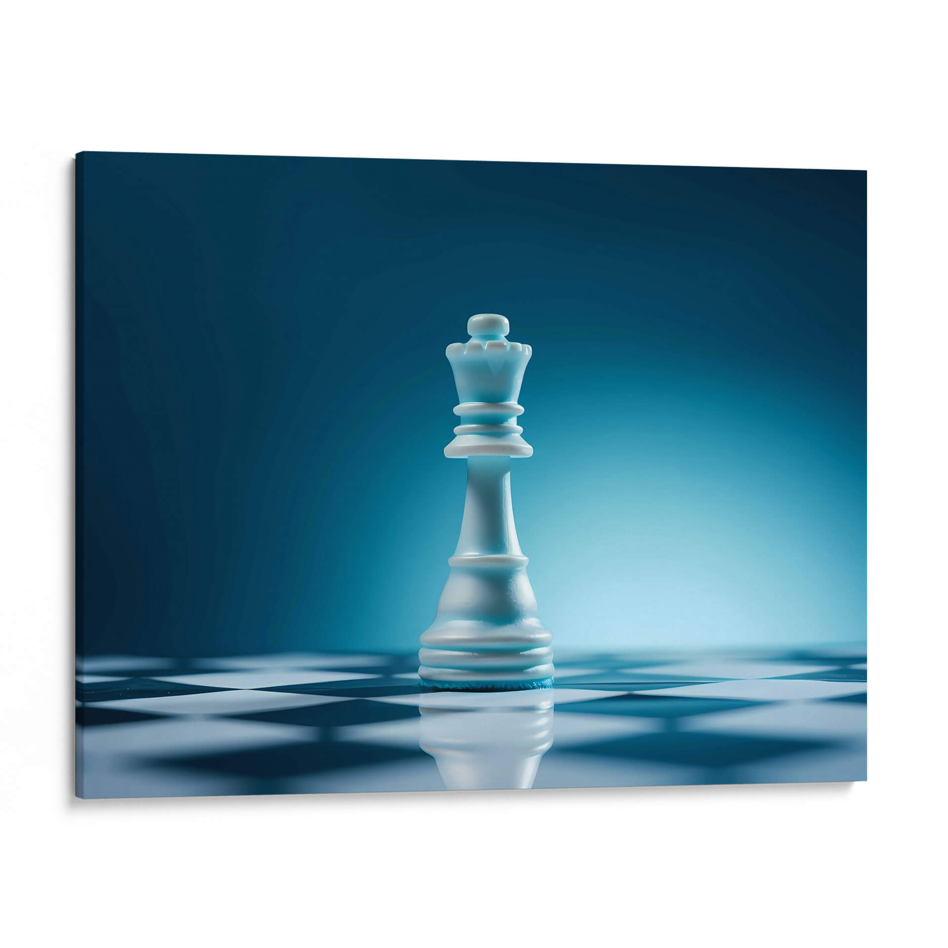 Sumérgete en la estrategia y la elegancia con "El Juego de la Vida - 18", una obra de arte que captura la esencia del ajedrez con una estética moderna y cautivadora. La pieza central, una figura de dama de ajedrez translúcida en tonos blanquecinos, se erige con una presencia serena sobre un tablero de ajedrez de contraste nítido. El fondo, un degradado suave de azul profundo a azul claro, crea una atmósfera de concentración y profundidad, realzando la figura principal y añadiendo un toque de misterio. La iluminación dramática proyecta sutiles reflejos sobre el tablero, añadiendo una dimensión visual adicional y un sentido de sofisticación. Este cuadro decorativo es perfecto para aquellos que aprecian la inteligencia, la planificación y la belleza de las formas geométricas. Su diseño minimalista y la paleta de colores fríos lo convierten en un complemento ideal para espacios de oficina, estudios o salas de estar modernas, aportando un aire de contemplación y pensamiento estratégico. "El Juego de la Vida - 18" no es solo una imagen, es una invitación a reflexionar sobre las decisiones y el poder en nuestras propias vidas. Añade un toque de clase intelectual a tu decoración con esta pieza única.