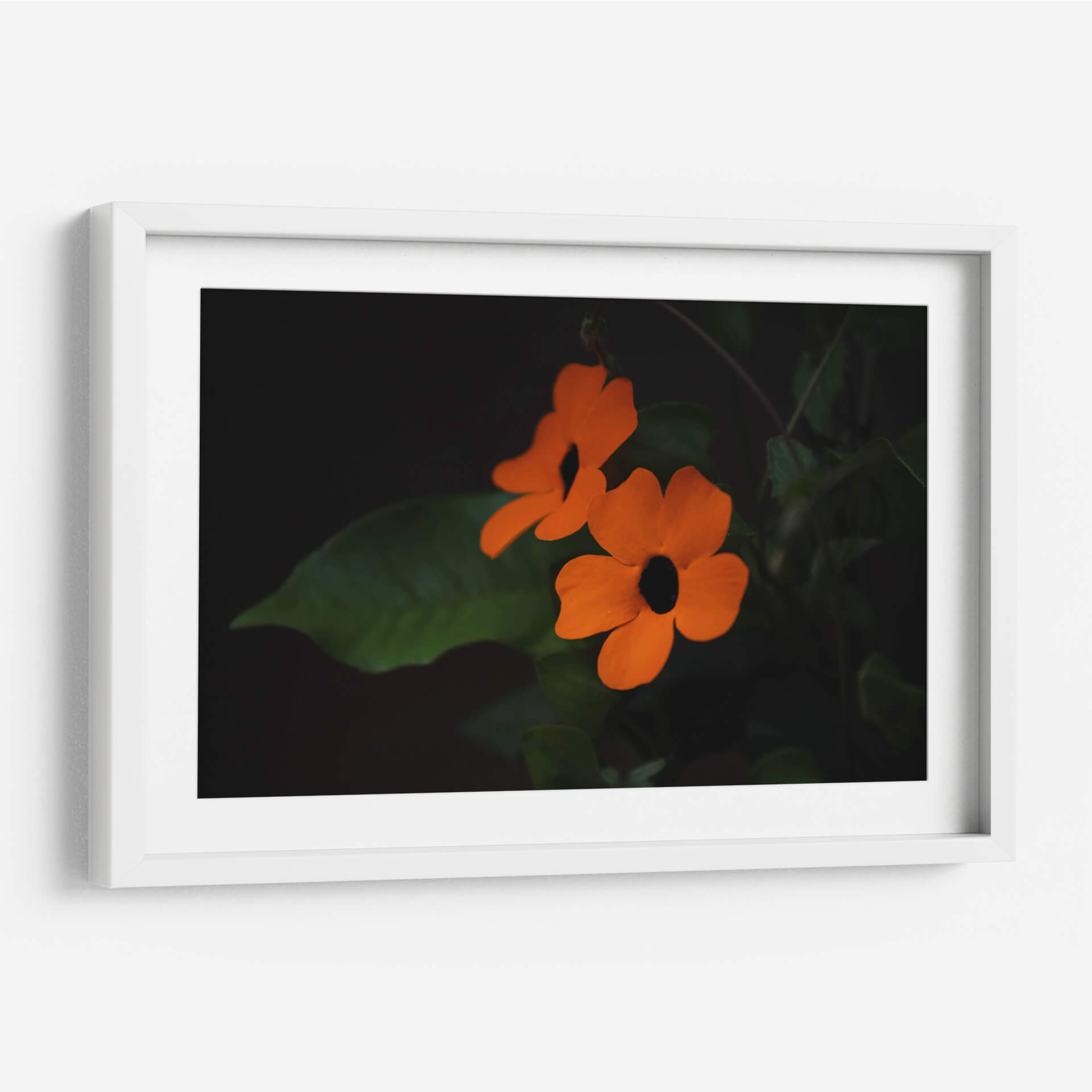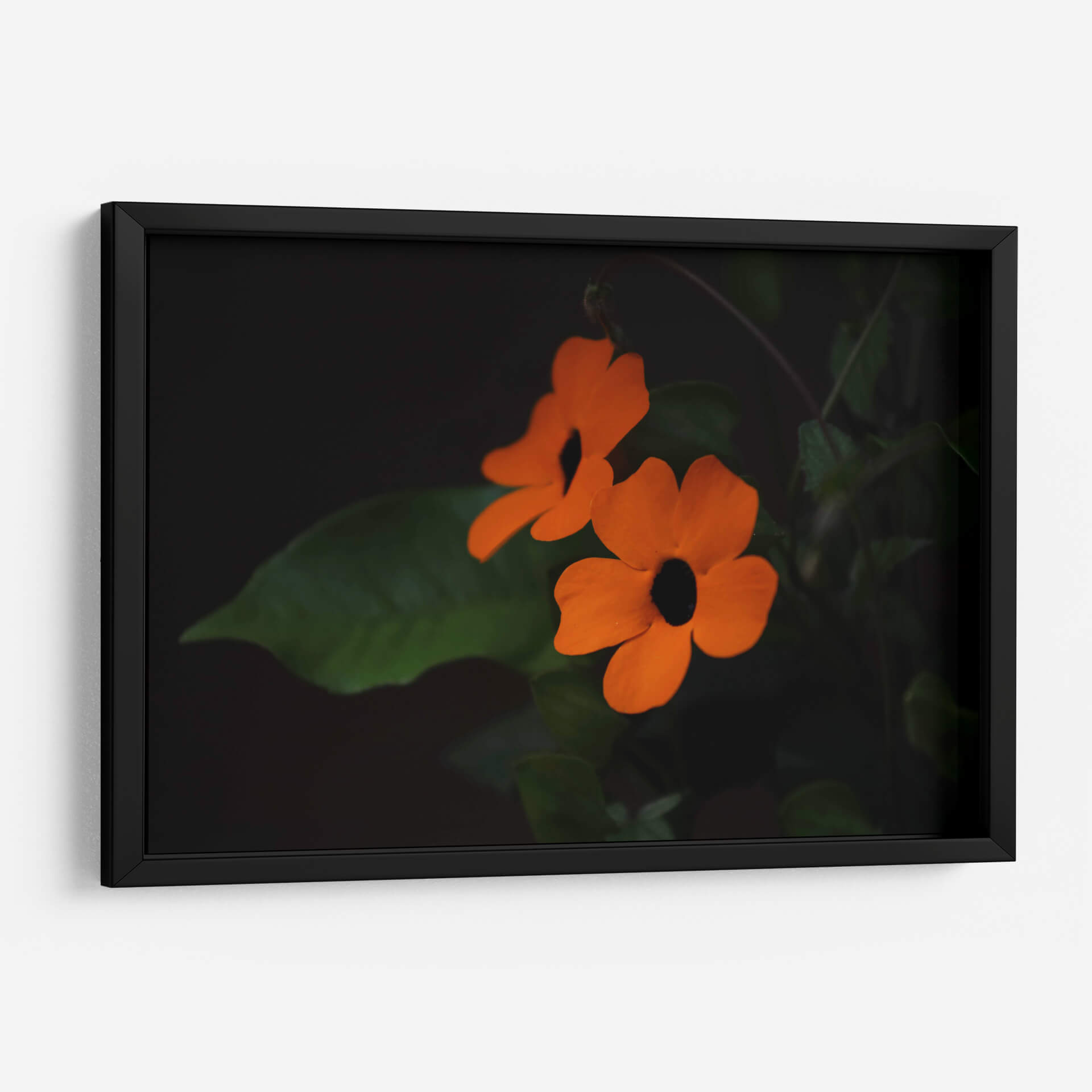 Sumérgete en la vibrante belleza de "Estallido Floral", una obra de arte contemporáneo de Ana Zagal que captura la energía y el color de la naturaleza con una intensidad cautivadora. Este cuadro decorativo presenta dos flores de un naranja radiante, con pétalos sedosos y centros oscuros, que emergen de un fondo de tonos profundos y sombríos, casi un negro aterciopelado. La iluminación dramática resalta la textura y la forma de las flores, creando un efecto casi etéreo que contrasta maravillosamente con la oscuridad circundante. Las hojas verdes, aunque sutiles, aportan profundidad y anclan la composición, sugiriendo un jardín secreto iluminado por un foco de luz. La obra evoca una sensación de vitalidad, pasión y el poder transformador de la naturaleza, ideal para infundir vida y un toque de audacia en cualquier espacio. Su estilo fotográfico y la composición cercana la convierten en un punto focal impresionante para salas de estar modernas, comedores o incluso para añadir un toque de color sofisticado a una oficina. "Estallido Floral" es más que una decoración; es una experiencia visual que invita a la reflexión y celebra la exuberancia de la vida.