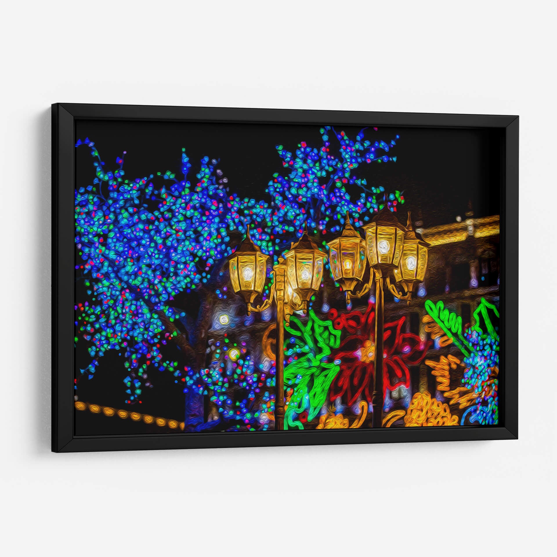 Sumérgete en la magia festiva con "Faroles y luces navideñas", una obra de arte vibrante y evocadora del artista Guillermo Aparicio. Este cuadro decorativo captura la esencia luminosa y alegre de una noche estrellada adornada con innumerables luces de Navidad que deslumbran en tonos azules eléctricos, verdes vibrantes y destellos rojos y dorados. Los faroles clásicos, con su cálida luz ámbar, proyectan un resplandor acogedor, creando un contraste fascinante con el fondo oscuro y las luces parpadeantes del árbol decorado. La pincelada audaz y texturizada aporta una sensación de movimiento y vida a la escena, invitando al espectador a experimentar la atmósfera encantadora de la temporada. Ideal para añadir un toque de color y optimismo a salones modernos, recibidores elegantes o incluso espacios de trabajo que busquen inspiración, este cuadro es una celebración de la luz y la alegría. "Faroles y luces navideñas" no es solo una decoración, sino una ventana a un momento de pura fantasía y celebración, perfecta para quienes aprecian el arte contemporáneo que irradia energía positiva y detalles cautivadores. Transforma cualquier estancia en un espacio lleno de encanto y espíritu festivo con esta pieza única.