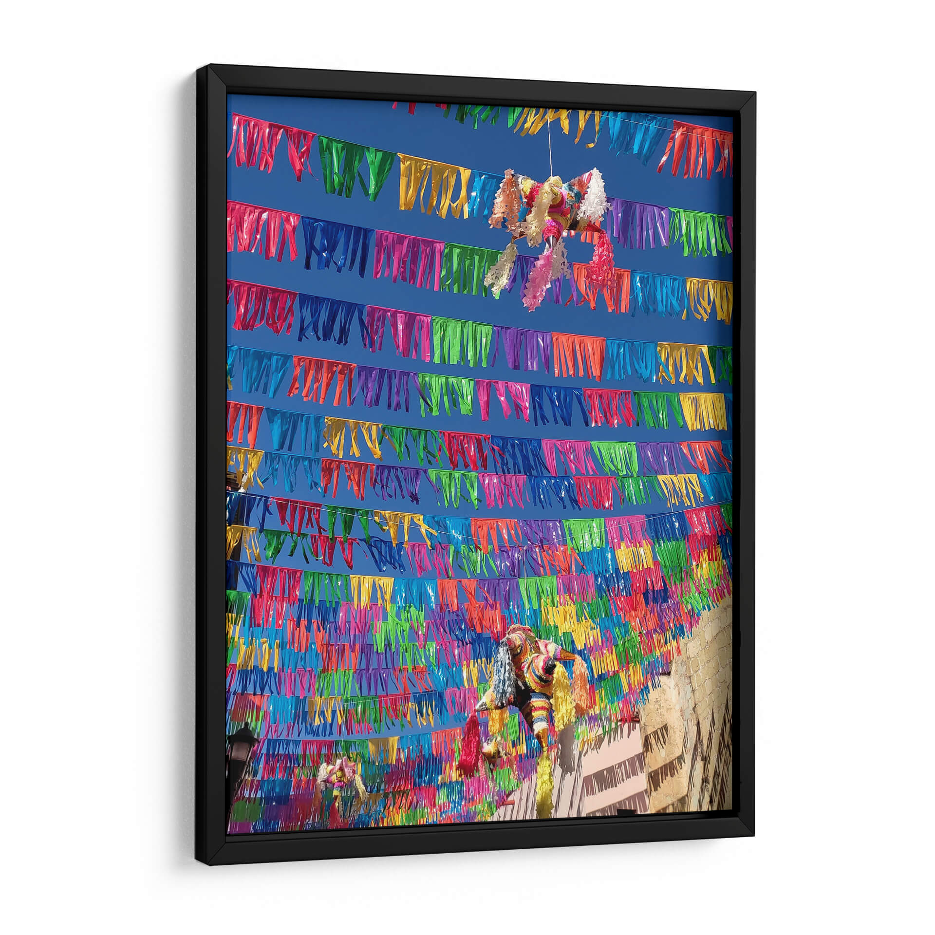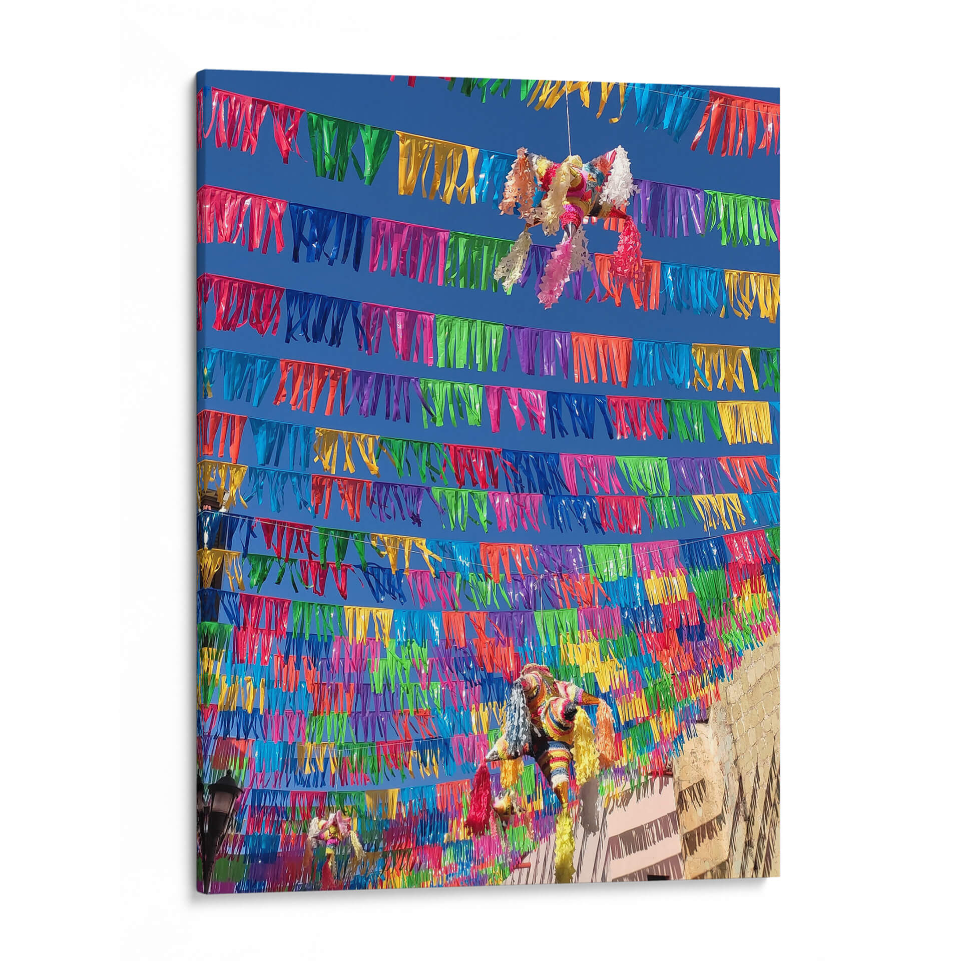 Celebra la alegría y la vitalidad con "Fiesta", una obra de arte vibrante del artista Hugo Segura. Este cuadro decorativo captura la esencia de una festividad en pleno apogeo, con un cielo azul intenso sirviendo de telón de fondo para una profusión de coloridas banderolas que ondean al viento. Las tiras de papel crepé, en tonos fucsia, naranja, amarillo, verde, azul y morado, crean un espectáculo visual dinámico y festivo, evocando la energía contagiosa de las celebraciones tradicionales. En primer plano, una piñata de colores, un símbolo icónico de alegría y sorpresa, añade un toque de autenticidad y carácter lúdico a la escena. La composición captura el movimiento y la espontaneidad, invitando al espectador a sumergirse en un ambiente de celebración. "Fiesta" es la elección perfecta para añadir un estallido de color y optimismo a cualquier espacio. Ideal para salones modernos, comedores animados o cualquier rincón que necesite un toque de alegría mexicana y arte contemporáneo. Esta pieza no solo decora, sino que también inspira momentos de felicidad y unión. Descubre la magia de "Fiesta" y transforma tu hogar con esta explosión de color y cultura.