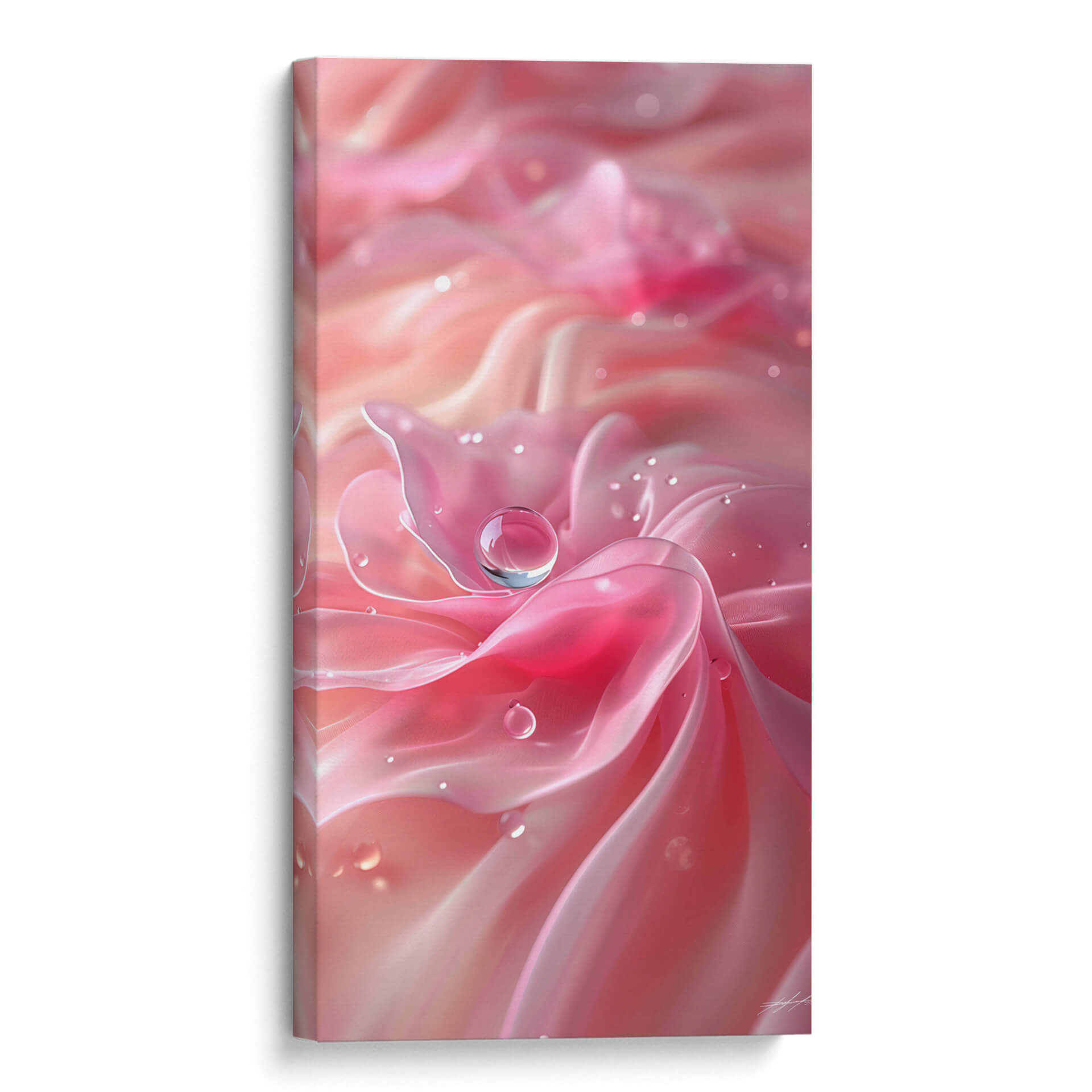 Sumérgete en la delicada belleza de "Gotas - 1", una obra de arte digital que captura la esencia etérea de los pétalos rosados y la pureza del agua. Esta pieza, con su vibrante paleta de rosas y tonos pastel, evoca una sensación de calma y frescura, como si contemplaras una flor recién bañada por la mañana. La composición se centra en la intrincada textura de los pétalos, realzada por el brillo seductor de las gotas de agua suspendidas, que actúan como pequeños diamantes líquidos. El estilo hiperrealista de las gotas contrasta maravillosamente con la suavidad y el movimiento sugerido de los pétalos, creando una experiencia visual cautivadora. Este cuadro decorativo es perfecto para añadir un toque de serenidad y elegancia a cualquier espacio, desde un dormitorio acogedor hasta una sala de estar moderna o un baño spa. Su diseño vertical y su temática natural lo convierten en una opción versátil para quienes buscan una decoración de pared que inspire paz y contemplación. "Gotas - 1" no es solo una imagen, es una invitación a detenerse y apreciar la sutil perfección de la naturaleza, transformada en arte para embellecer tu hogar u oficina. Añade esta obra maestra a tu colección y siente la tranquilidad que irradia.