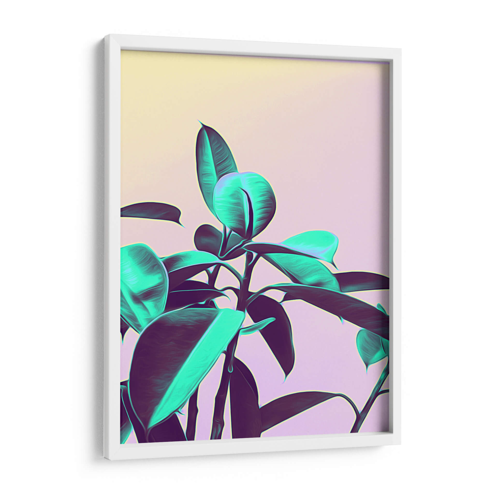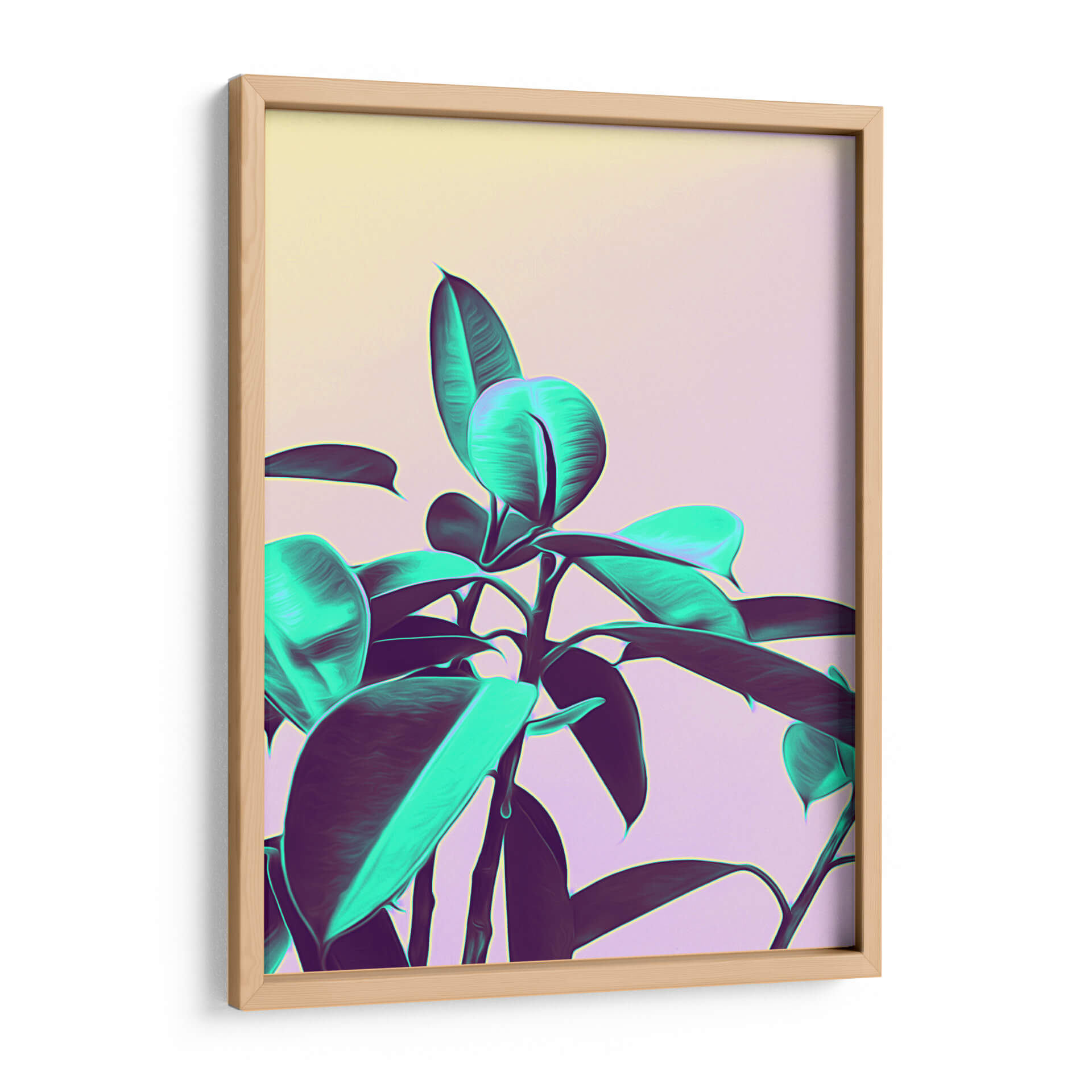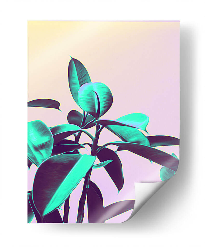 Embellece tu espacio con "Hojas Verdes Iridiscentes", una obra de arte contemporáneo que captura la belleza etérea de la naturaleza. Este cuadro decorativo presenta un estudio detallado de hojas de ficus, realzadas por una paleta de colores iridiscentes que transitan entre profundos tonos púrpuras y vibrantes verdes azulados. El fondo suave, teñido de tonos pastel que evocan un amanecer sereno, crea un contraste cautivador con la intensidad de la vegetación. La composición se centra en la forma orgánica de las hojas, resaltando sus curvas elegantes y la delicadeza de sus venas. La técnica utilizada, que combina elementos de arte digital y una estética casi fotográfica, otorga a la pieza una profundidad y un realismo sorprendentes, a pesar de su tratamiento estilizado. "Hojas Verdes Iridiscentes" es ideal para añadir un toque de sofisticación botánica a cualquier habitación, desde una sala de estar moderna hasta un sereno dormitorio o una oficina inspiradora. Su atmósfera tranquila pero intrigante invita a la contemplación, transformando cualquier pared en un punto focal de elegancia natural y color.