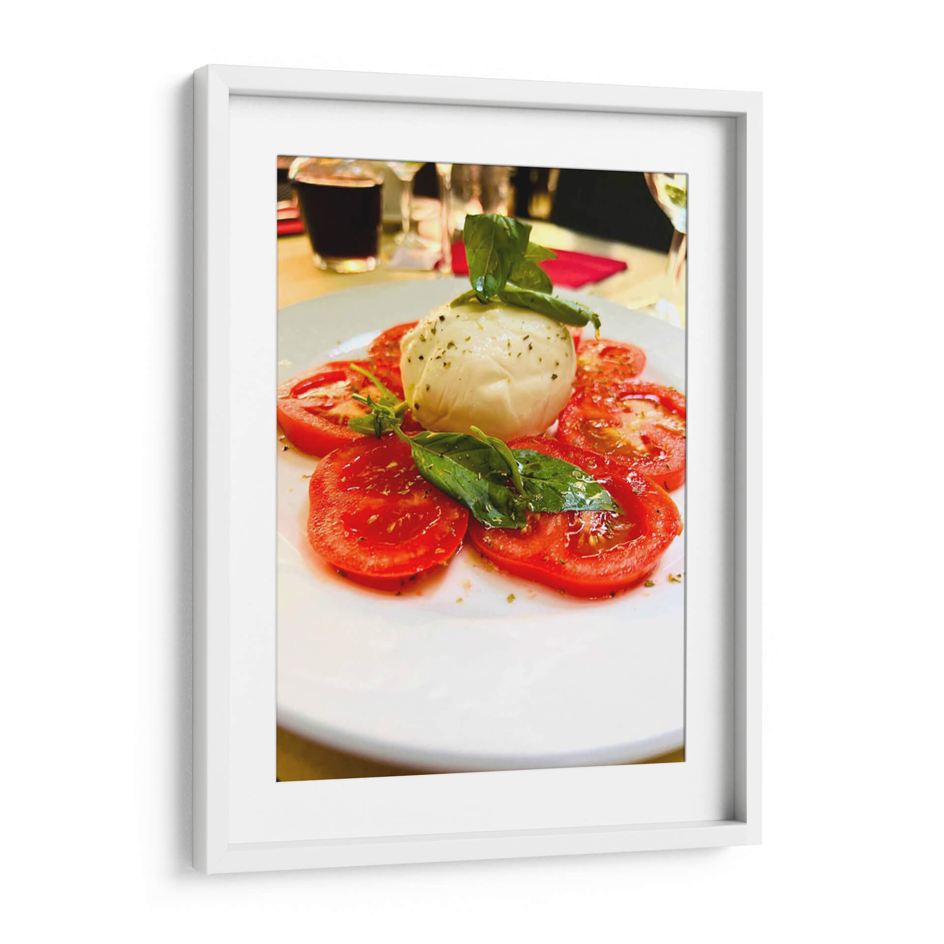 Captura la esencia de la cocina italiana y la frescura del Mediterráneo con esta cautivadora obra de arte culinaria. "Estilo Italiano" presenta un primer plano exquisito de una caprese, donde las rodajas vibrantes de tomate maduro se entrelazan con una generosa porción de mozzarella fresca y hojas de albahaca aromática, todo ello aderezado con un ligero toque de aceite de oliva y especias. La composición fotográfica resalta la textura jugosa de los tomates y la suavidad cremosa del queso, invitando a una experiencia sensorial única. Los colores intensos, dominados por el rojo carmesí de los tomates y el verde intenso de la albahaca, crean un contraste visual apetitoso que evoca calidez, tradición y el placer de una buena comida. Ideal para cocinas, comedores o cualquier espacio que busque un toque de sabor y elegancia italiana, este cuadro decorativo es una celebración de los ingredientes sencillos pero deliciosos que definen la gastronomía de Italia. Transforma tu hogar en un rincón de la 'dolce vita' con esta pieza que combina arte y sabor.