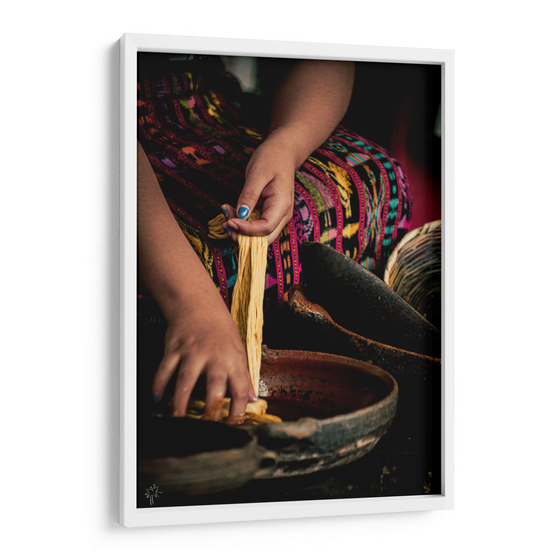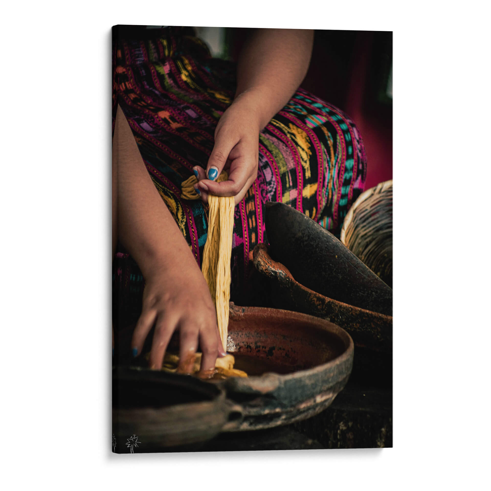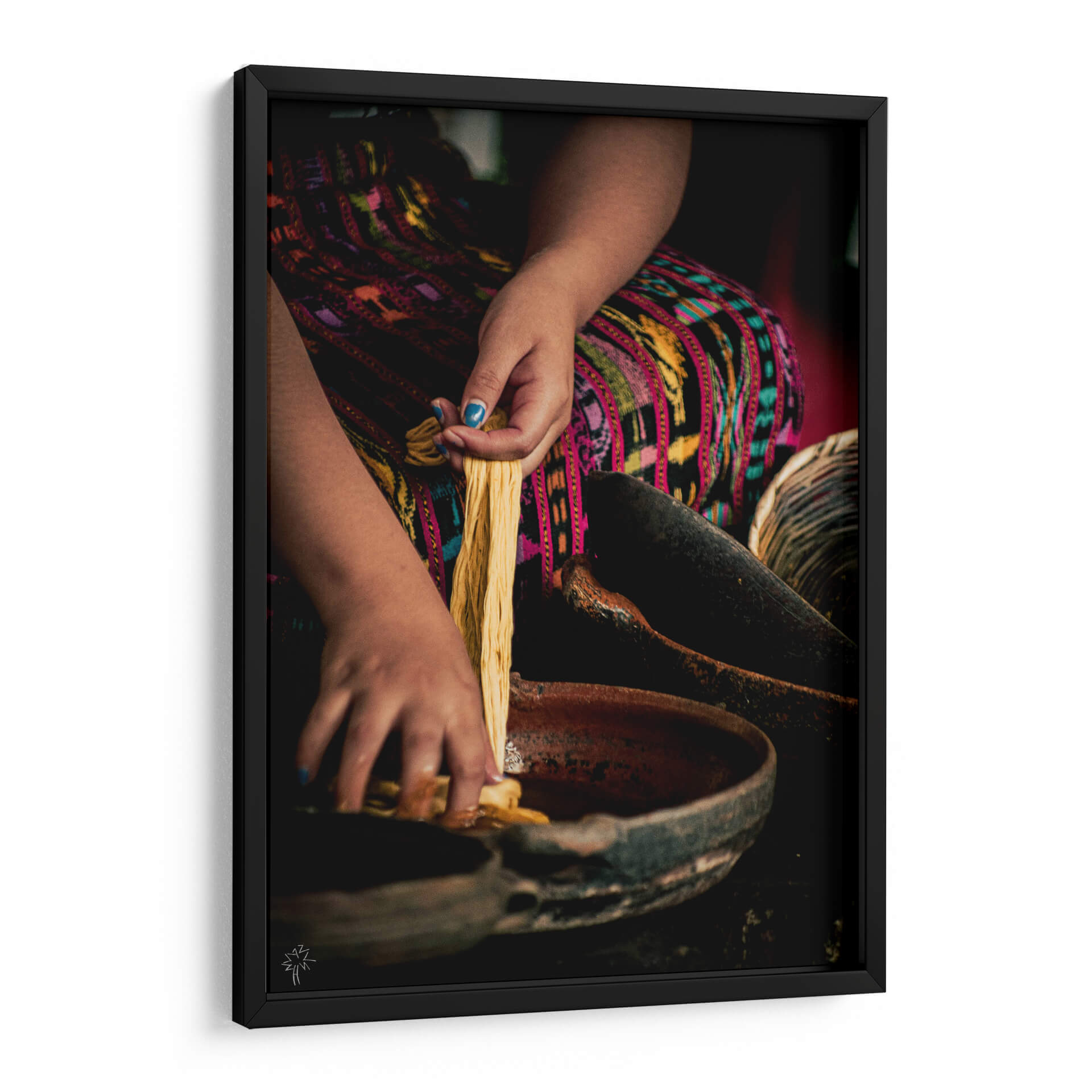 Sumérgete en la esencia de la tradición y la artesanía con "La Alquimia del Hilo" de Zuriel Halal. Esta obra maestra captura un momento íntimo y poderoso, donde las manos hábiles de una mujer trabajan con hilos en un cuenco de barro, rodeada de herramientas ancestrales. La vibrante vestimenta, adornada con patrones geométricos en tonos fucsia, amarillo, turquesa y negro, contrasta con la calidez terrosa del barro y la sutileza de la acción manual. La iluminación, cuidadosamente dispuesta, resalta la textura de los materiales y la delicadeza del proceso, creando una atmósfera de concentración y respeto por el oficio. "La Alquimia del Hilo" no es solo una imagen, es una narrativa visual que honra la conexión entre el ser humano y el arte de crear. Ideal para espacios que buscan un toque de autenticidad cultural y calidez humana, este cuadro decorativo aportará profundidad y carácter a tu hogar u oficina, invitando a la contemplación de la belleza en los oficios tradicionales. Descubre la magia de la transformación y la dedicación en cada detalle de esta pieza única.