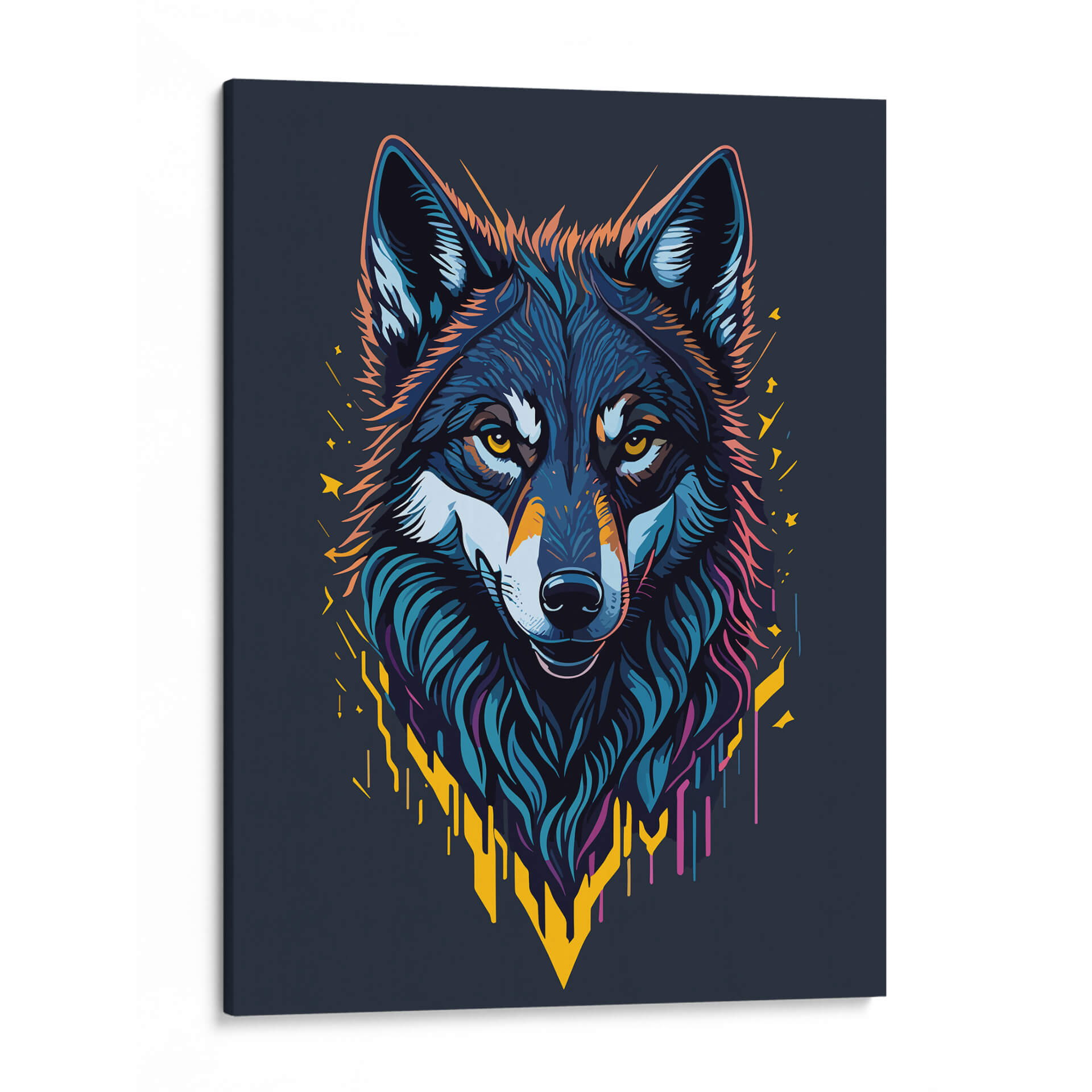 Captura la esencia salvaje y majestuosa del 'Lobo Alfa' con este impactante cuadro decorativo. La obra presenta un retrato estilizado de un lobo, con una mirada intensa y penetrante que evoca fuerza y misterio. La paleta de colores vibrantes, dominada por azules profundos, naranjas ardientes y toques de rosa y amarillo, crea un contraste dinámico que atrae la atención. Los detalles intrincados del pelaje y las formas geométricas abstractas que rodean la cabeza del lobo añaden una dimensión moderna y audaz a la pieza. Este cuadro decorativo es ideal para aquellos que buscan infundir a sus espacios un sentido de poder, independencia y conexión con la naturaleza. Su estilo contemporáneo y la energía que emana lo convierten en un punto focal perfecto para salas de estar, estudios o cualquier ambiente que requiera un toque de carácter y sofisticación. Imagina cómo este lobo alfa observará tu habitación, añadiendo una atmósfera de intriga y admiración. Una elección perfecta para amantes de los animales y el arte moderno que desean expresar su lado más salvaje y decidido en su decoración.