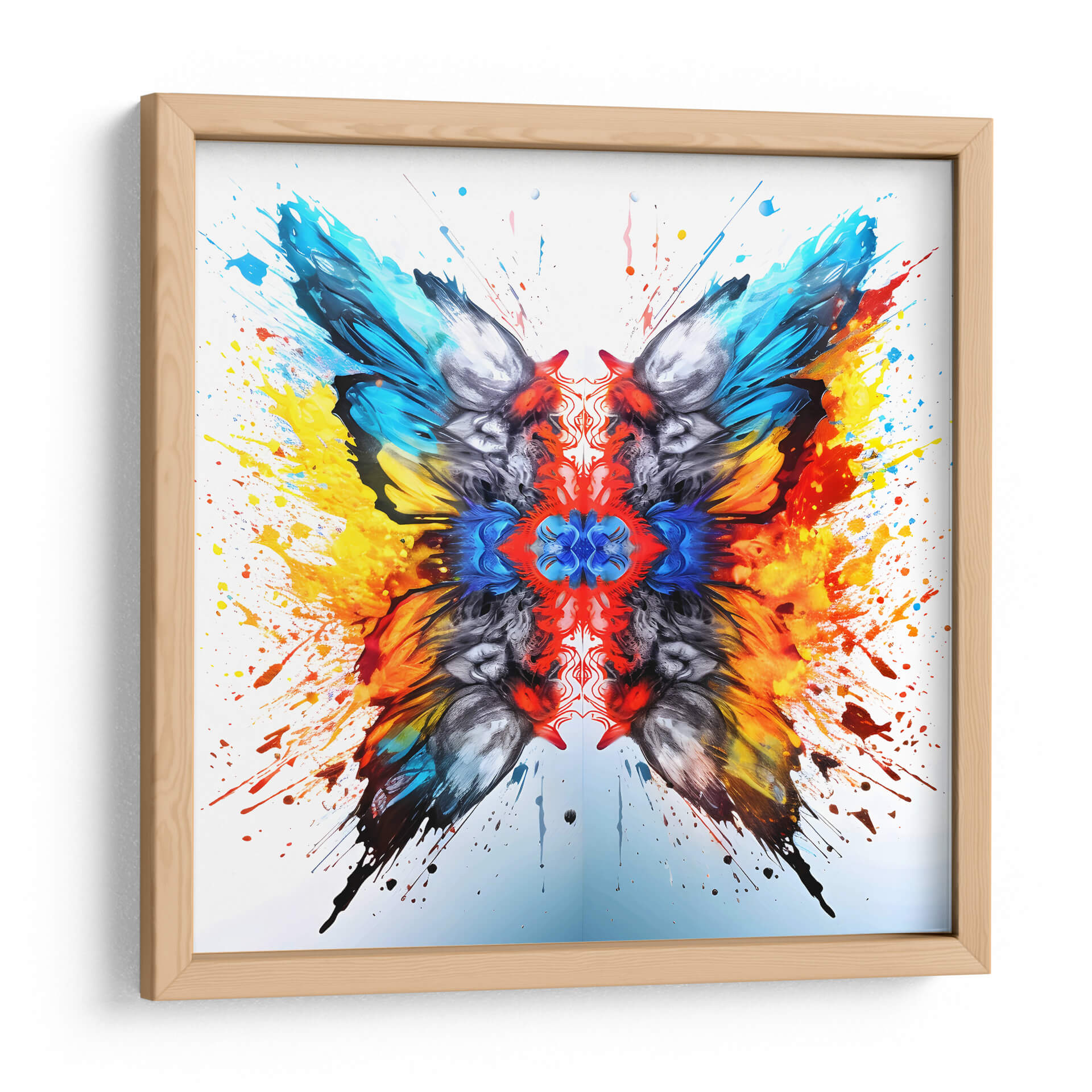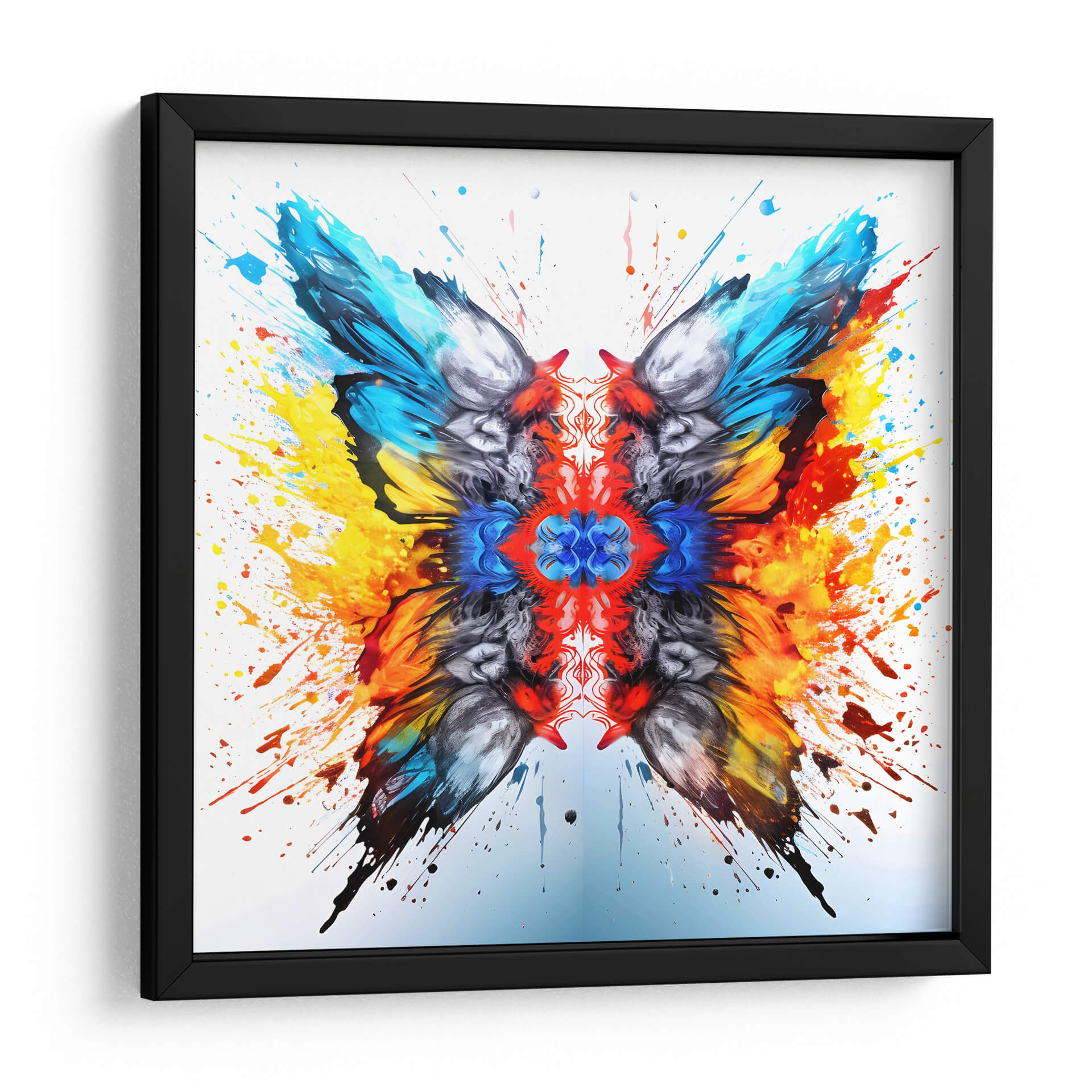 Este cautivador cuadro decorativo, titulado "Mariposa1" por dangarlop, es una explosión de color y dinamismo que captura la esencia efímera de la naturaleza con un toque contemporáneo. La obra presenta una mariposa estilizada, cuya simetría evoca una sensación de equilibrio y transformación, pero es la técnica de salpicaduras y goteos de pintura lo que le confiere una energía vibrante y moderna. Predominan los tonos azules intensos, naranjas ardientes y amarillos vibrantes, contrastando con grises profundos y toques de rojo, creando una paleta de colores audaz y cautivadora. La composición, aunque simétrica en su forma central, se expande en un torbellino de acción pictórica que sugiere movimiento y libertad. Es la pieza perfecta para infundir vida y un toque de arte abstracto a cualquier espacio, ya sea un salón moderno, una oficina creativa o un dormitorio que busque un punto focal inspirador. "Mariposa1" no es solo una decoración, es una declaración de estilo que celebra la belleza en constante cambio del mundo natural y la expresividad del arte contemporáneo.