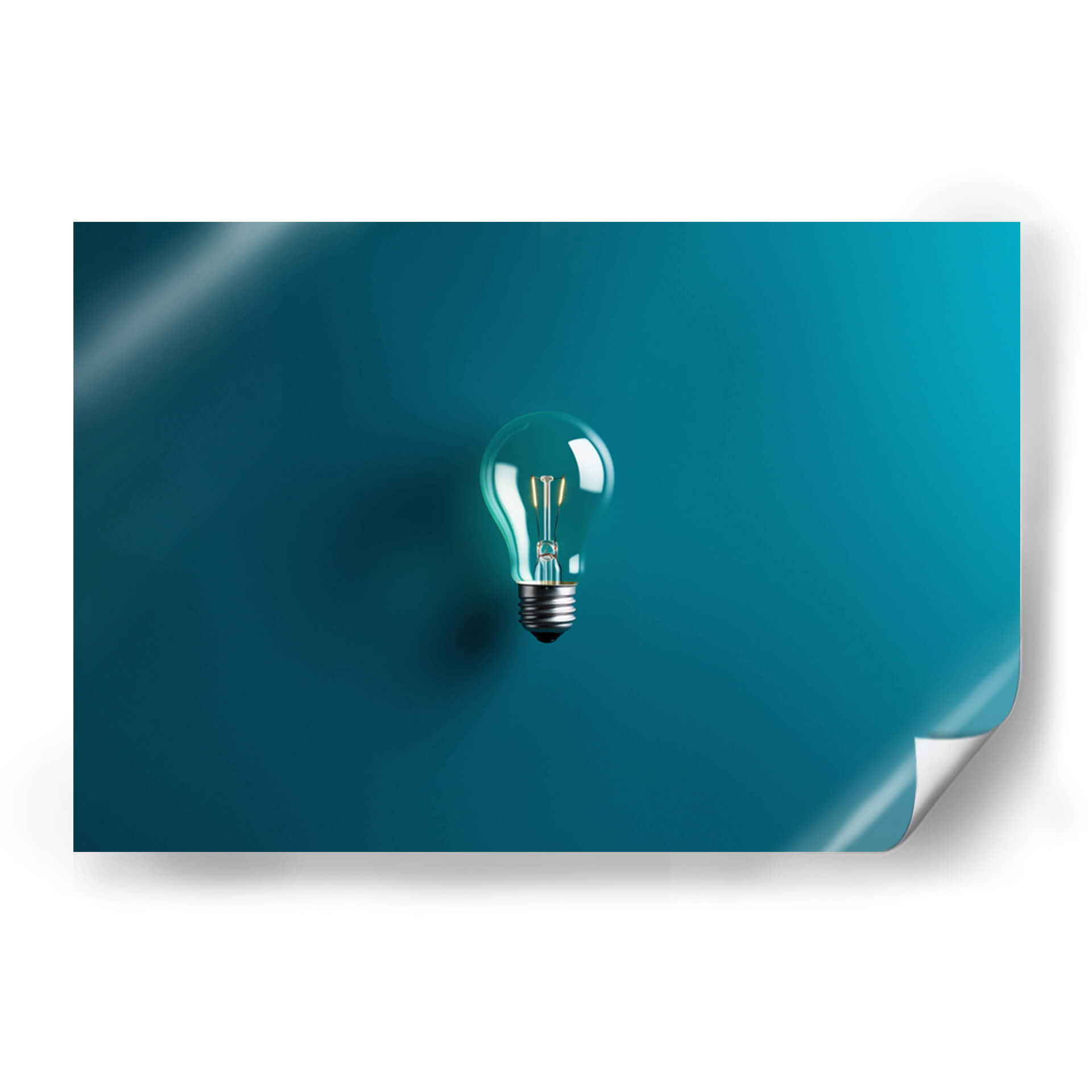 Captura la esencia de la innovación y la creatividad con "Mi Idea - 21", una obra de arte digital que ilumina cualquier espacio. Esta pieza presenta una bombilla incandescente clásica, suspendida sobre un fondo de un profundo y cautivador tono azul verdoso que se desvanece suavemente, creando una atmósfera de calma y contemplación. La luz que emana de la bombilla, representada con un brillo etéreo y un toque de color turquesa, simboliza la chispa de la genialidad y la inspiración. La composición es minimalista y elegante, centrando toda la atención en el objeto principal y su aura luminosa. Es una pieza ideal para aquellos que buscan un recordatorio visual del poder de las nuevas ideas y la originalidad. Este cuadro decorativo es perfecto para oficinas, estudios creativos, o cualquier rincón del hogar donde se desee fomentar el pensamiento innovador. Su estilo moderno y su mensaje universal la convierten en una adición versátil y significativa a tu decoración, aportando un toque de luz y reflexión a tu ambiente.