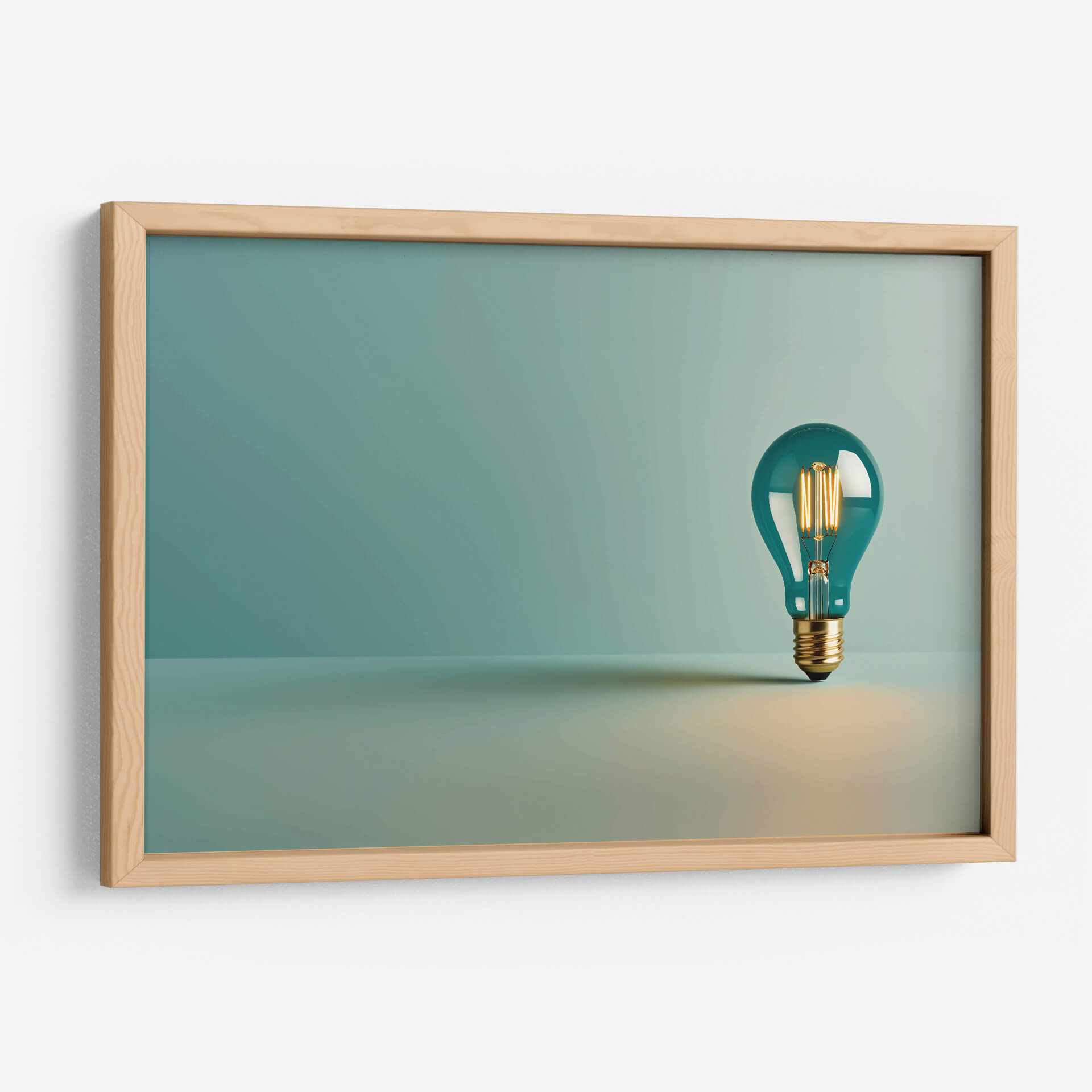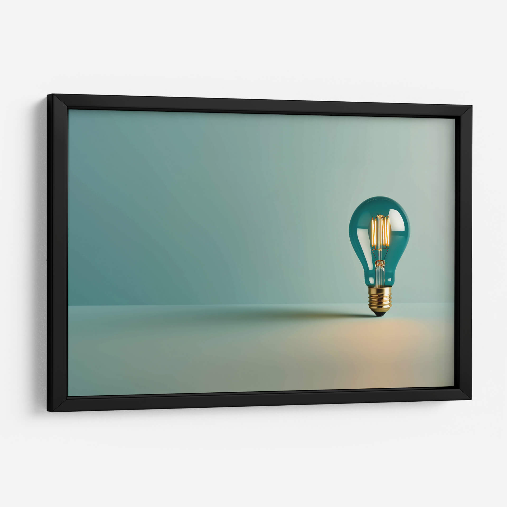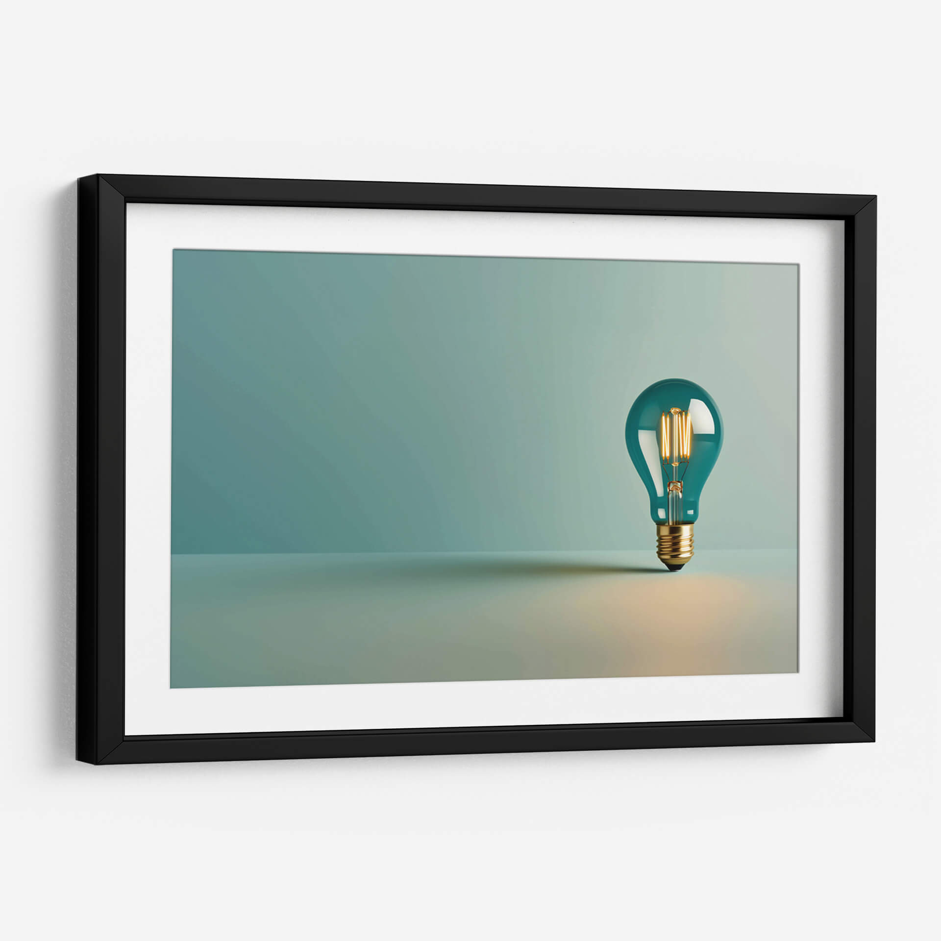 Ilumina tu espacio con 'Mi Idea - 23', una obra de arte digital que captura la esencia de la inspiración y la innovación. Este cuadro decorativo presenta una bombilla de estilo vintage con un distintivo tono turquesa, destacando su filamento dorado que emite una cálida luz. La composición minimalista, con un fondo degradado en sutiles tonos de azul verdoso y una base luminosa que proyecta una suave sombra, crea una atmósfera de serenidad y enfoque. La pieza evoca la chispa creativa, el momento 'eureka' que puede surgir en cualquier instante. Ideal para despachos, estudios o cualquier rincón que necesite un toque de originalidad y reflexión. Su paleta de colores tranquilizantes y su diseño conceptual la convierten en un punto focal sofisticado para salas de estar modernas, oficinas o espacios de coworking. Añade un toque de inteligencia visual y elegancia contemporánea a tu decoración con esta pieza única que simboliza el poder de una buena idea. Perfecta para quienes buscan arte que inspire y motive.