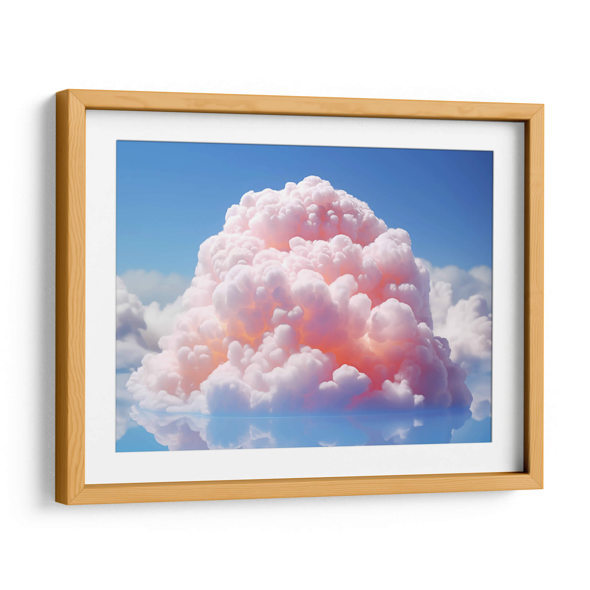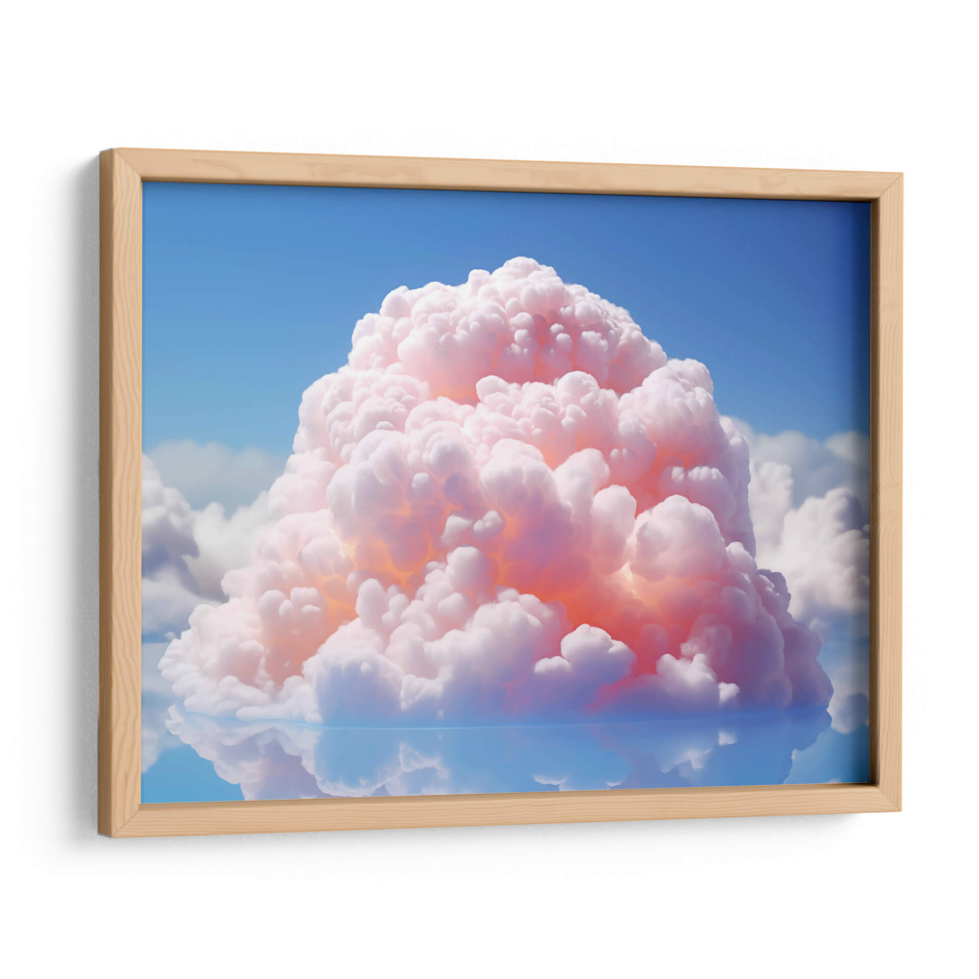 Embárcate en un viaje celestial con "Mi Nube - 8", una obra de arte digital que captura la etérea belleza de las nubes en un momento de ensueño. La pieza presenta una nube central voluminosa y texturizada, bañada en tonos rosados y anaranjados cálidos que contrastan con un cielo azul profundo y sereno. El reflejo perfecto en una superficie acuática crea una sensación de simetría y calma, duplicando la magia del cielo. Este cuadro decorativo es una invitación a la contemplación, evocando sentimientos de paz, asombro y tranquilidad. Su estilo abstracto y su paleta de colores vibrantes pero suaves lo convierten en una adición versátil para cualquier espacio. Imagina este cuadro aportando un toque de serenidad a tu dormitorio, un punto focal inspirador en tu oficina o una dosis de ensueño en tu sala de estar. "Mi Nube - 8" no es solo una imagen, es una ventana a un mundo de fantasía y serenidad, perfecto para quienes buscan infundir sus ambientes con arte contemporáneo que inspire y relaje. Añade esta pieza única a tu colección y transforma tu hogar en un oasis de tranquilidad.