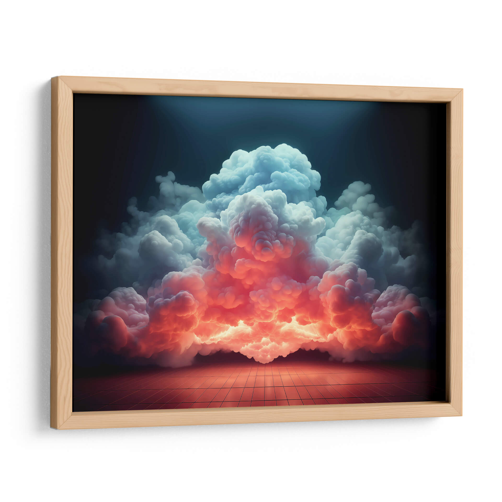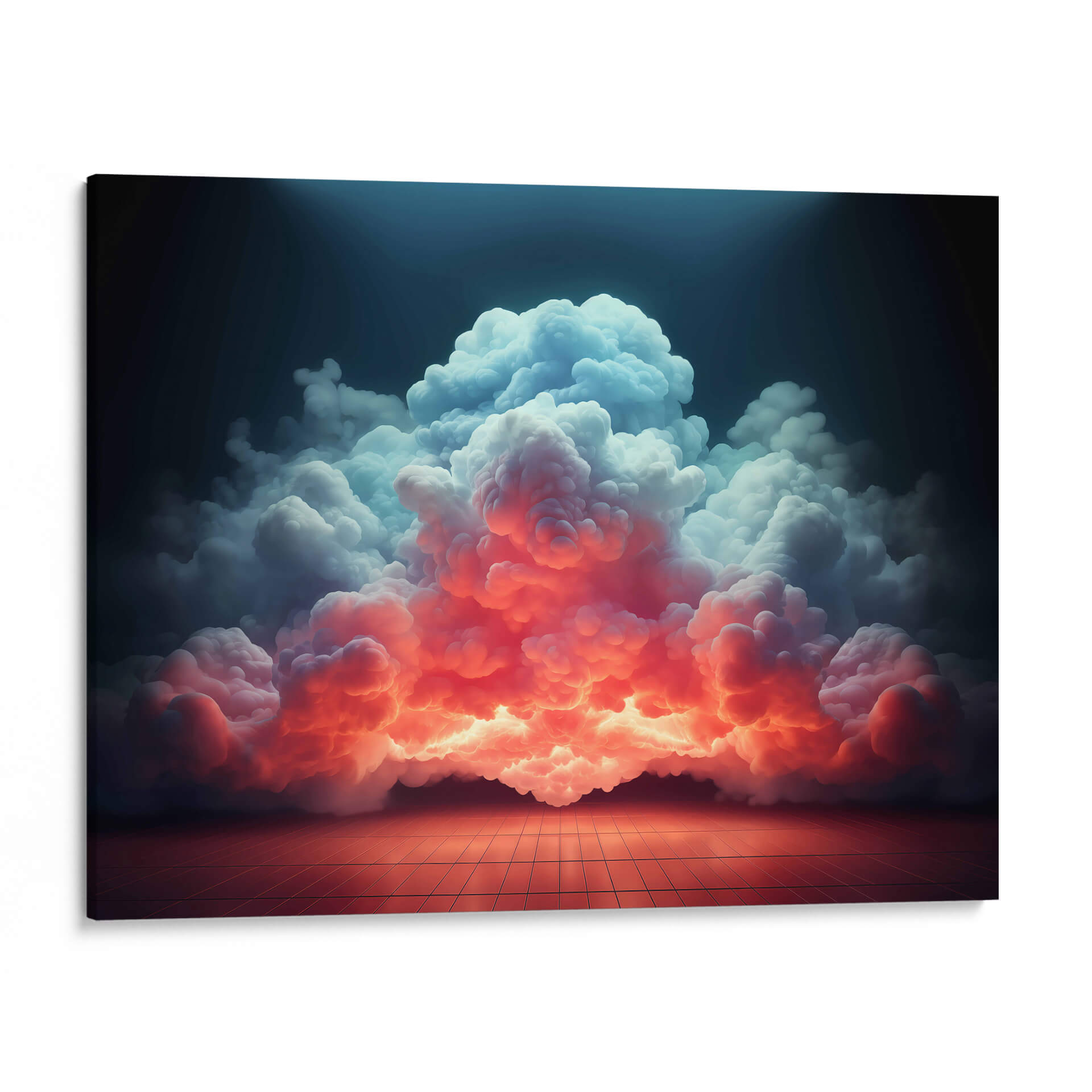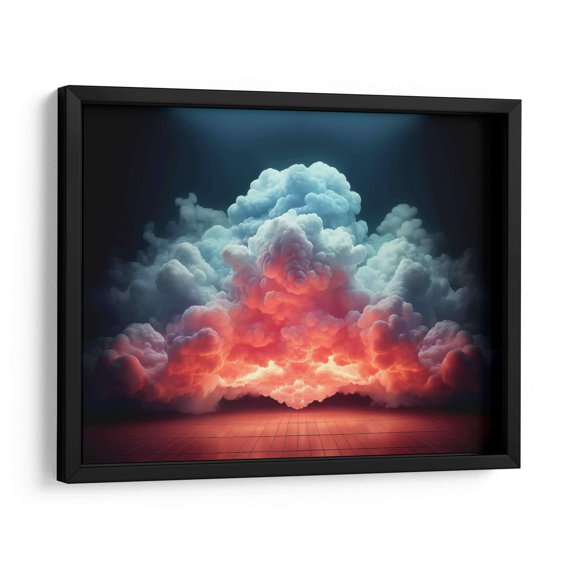 Sumérgete en la majestuosidad de "Mi Nube - 9", una obra de arte digital que captura la esencia efímera y poderosa de las formaciones celestiales. Esta pieza visualmente impactante presenta un torbellino de nubes que desciende desde una oscuridad profunda, iluminado por una transición dramática de cálidos tonos anaranjados y rosados en la base a fríos azules y blancos en la cima. La composición evoca una sensación de asombro y la inmensidad de la naturaleza, con un suelo cuadriculado que añade un toque de realidad tangible a la escena etérea. El juego de luces y sombras crea un ambiente de misterio y belleza, transformando un elemento cotidiano como las nubes en un espectáculo cautivador. Ideal para espacios que buscan un toque de drama y serenidad, como salas de estar modernas, estudios o incluso dormitorios principales, este cuadro decorativo es una invitación a la contemplación y a la conexión con las fuerzas naturales. Su estilo contemporáneo y su paleta de colores vibrante pero armoniosa lo convierten en una adición perfecta para elevar cualquier decoración interior. Deja que "Mi Nube - 9" sea el punto focal que inspire conversaciones y transporte tu imaginación a paisajes insospechados, añadiendo profundidad y carácter a tu hogar u oficina. Una pieza que no solo decora, sino que también evoca emociones y crea atmósferas únicas.