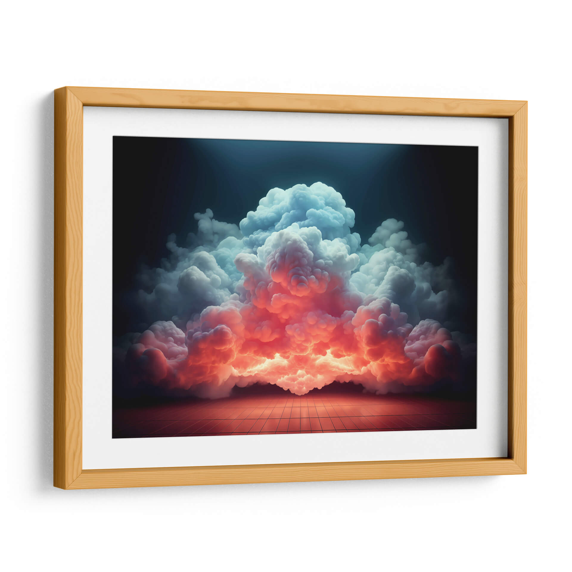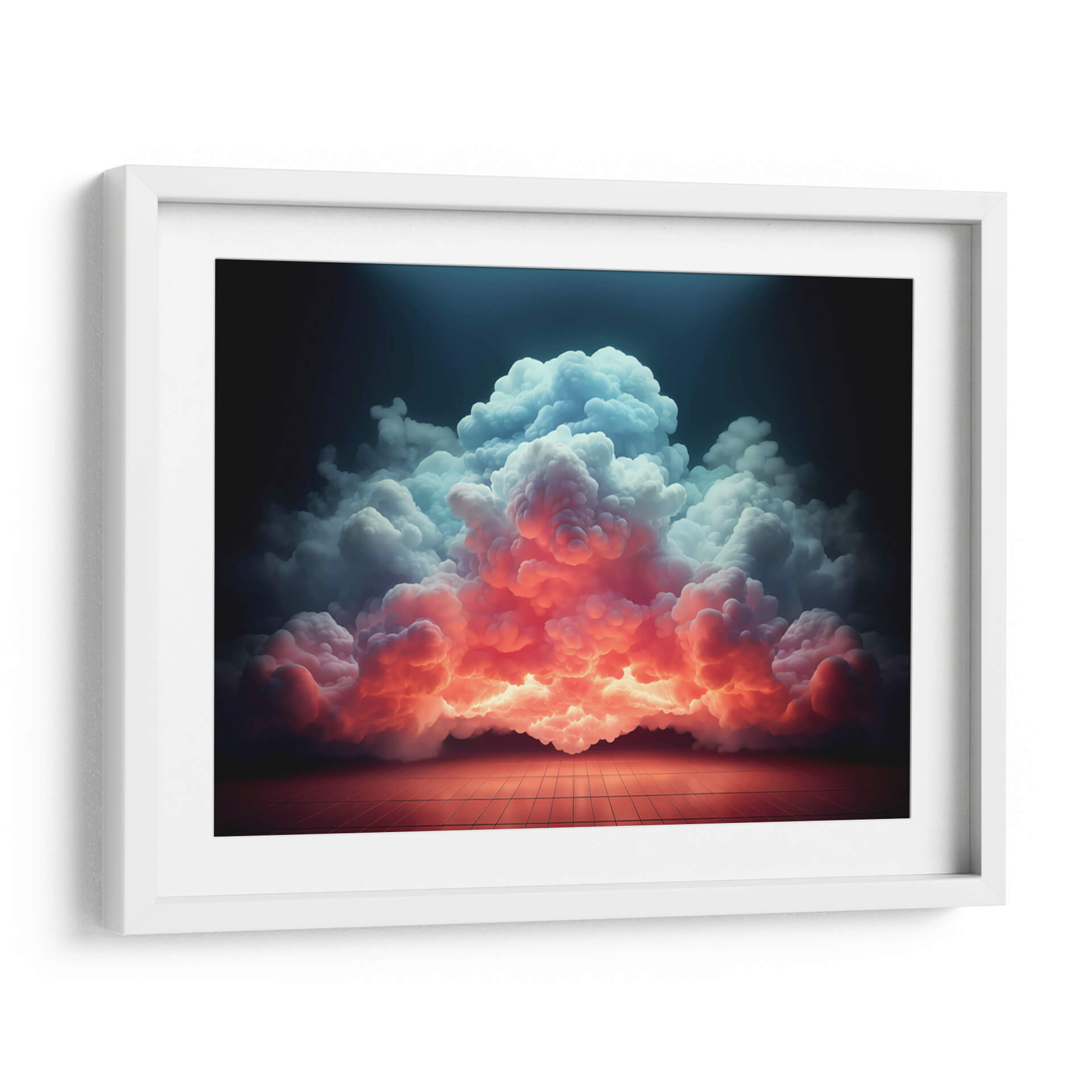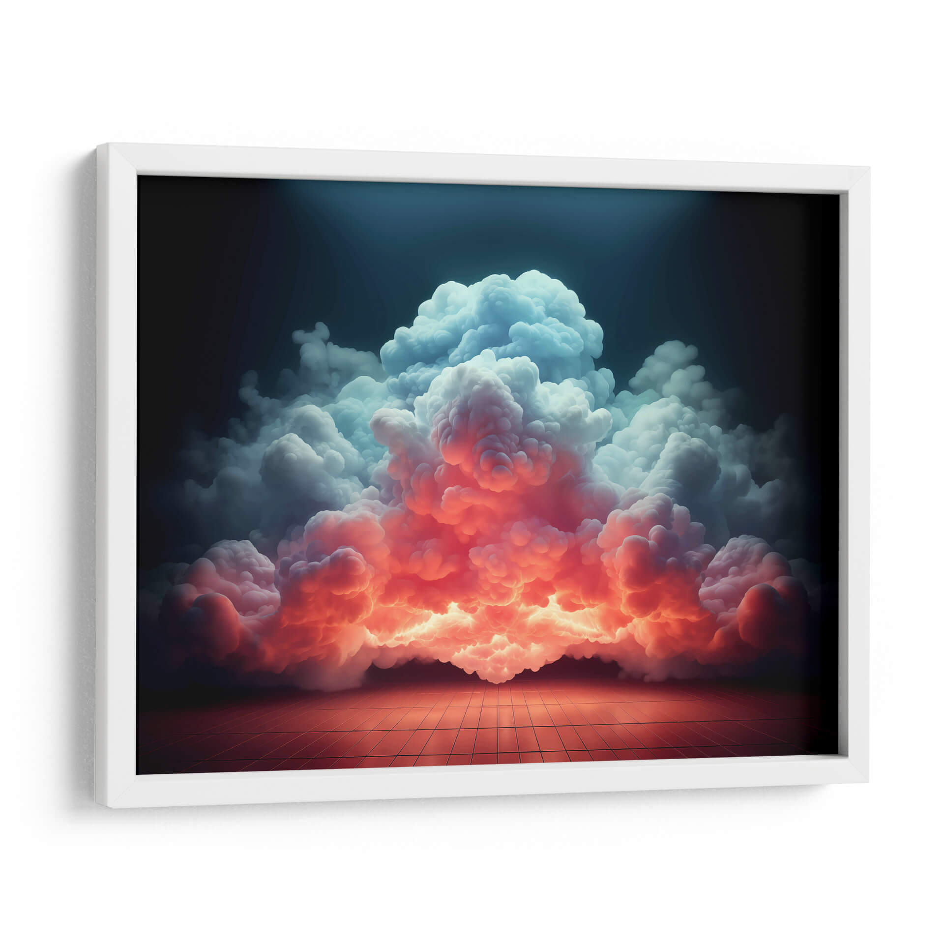 Sumérgete en la majestuosidad de "Mi Nube - 9", una obra de arte digital que captura la esencia efímera y poderosa de las formaciones celestiales. Esta pieza visualmente impactante presenta un torbellino de nubes que desciende desde una oscuridad profunda, iluminado por una transición dramática de cálidos tonos anaranjados y rosados en la base a fríos azules y blancos en la cima. La composición evoca una sensación de asombro y la inmensidad de la naturaleza, con un suelo cuadriculado que añade un toque de realidad tangible a la escena etérea. El juego de luces y sombras crea un ambiente de misterio y belleza, transformando un elemento cotidiano como las nubes en un espectáculo cautivador. Ideal para espacios que buscan un toque de drama y serenidad, como salas de estar modernas, estudios o incluso dormitorios principales, este cuadro decorativo es una invitación a la contemplación y a la conexión con las fuerzas naturales. Su estilo contemporáneo y su paleta de colores vibrante pero armoniosa lo convierten en una adición perfecta para elevar cualquier decoración interior. Deja que "Mi Nube - 9" sea el punto focal que inspire conversaciones y transporte tu imaginación a paisajes insospechados, añadiendo profundidad y carácter a tu hogar u oficina. Una pieza que no solo decora, sino que también evoca emociones y crea atmósferas únicas.