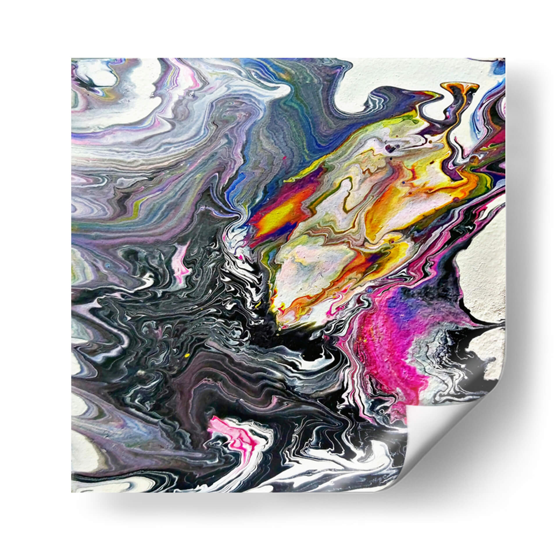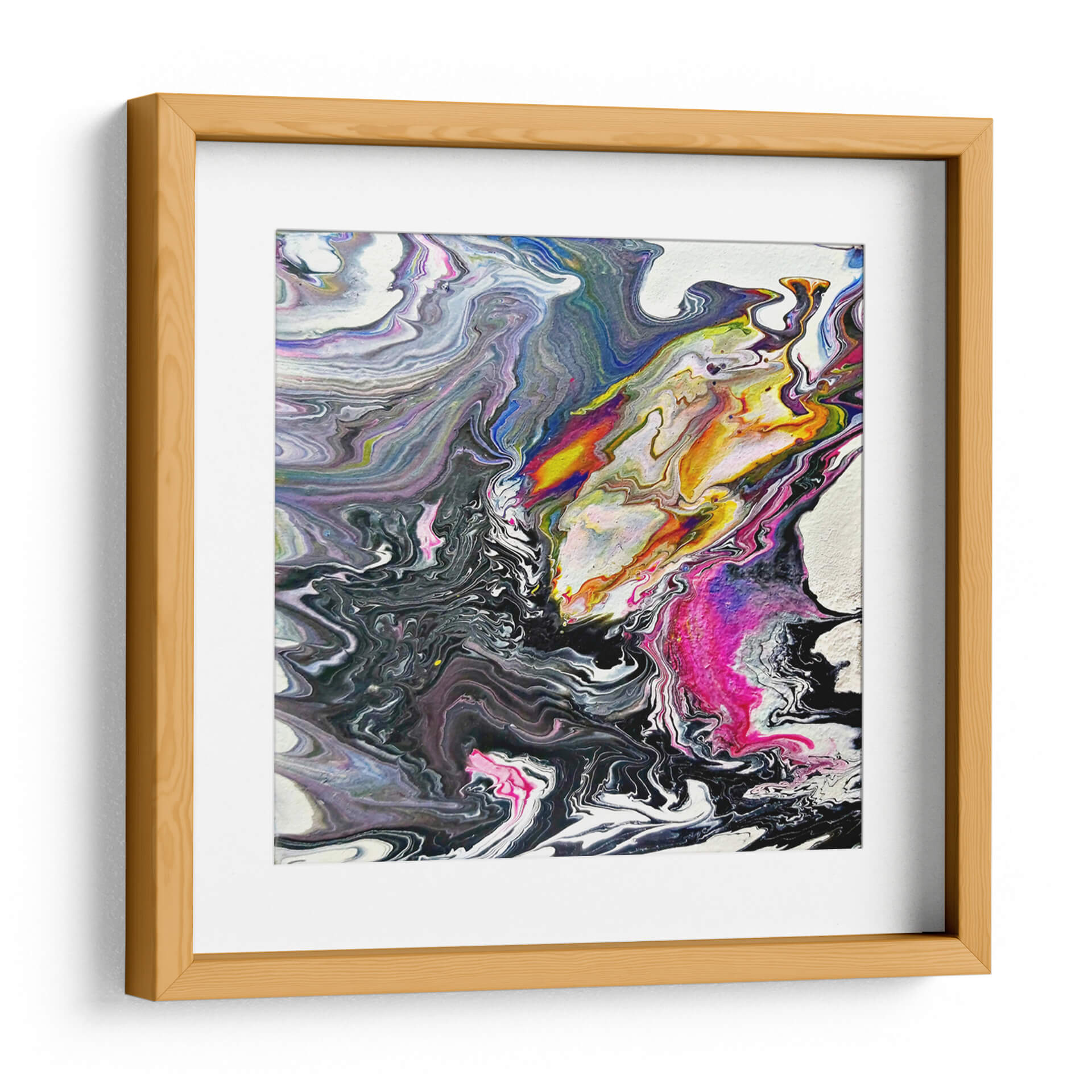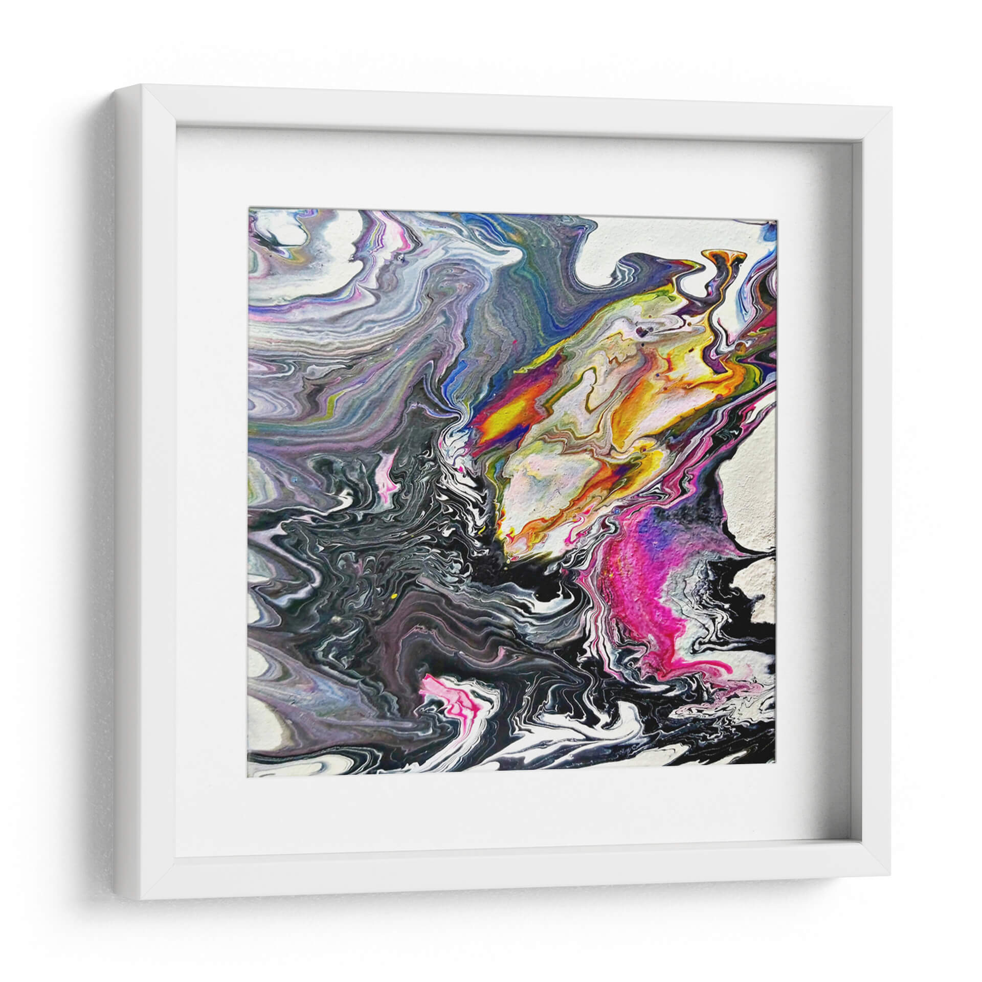 Sumérgete en la hipnótica obra de arte "Minerales" de Rodrigo Barrera, una explosión de color y movimiento que captura la esencia del arte abstracto contemporáneo. Esta pieza evoca la fluidez y la complejidad de las formaciones geológicas, con remolinos de pintura que fluyen y se entrelazan en una danza visual cautivadora. La paleta de colores, que transita desde profundos negros y grises hasta vibrantes toques de amarillo, naranja, fucsia y azul eléctrico, crea un contraste dinámico que atrae la mirada y estimula la imaginación. La técnica de vertido (pour painting) empleada por Barrera da lugar a texturas orgánicas y patrones únicos, haciendo que cada detalle de este cuadro decorativo sea una nueva revelación. "Minerales" es más que una simple obra de arte; es una expresión de energía y caos controlado, perfecta para añadir un toque de sofisticación moderna a cualquier espacio. Ideal para salones, oficinas o cualquier lugar donde se desee un punto focal vibrante y lleno de carácter. Deja que esta obra maestra abstracta inspire conversaciones y eleve la estética de tu hogar u oficina.