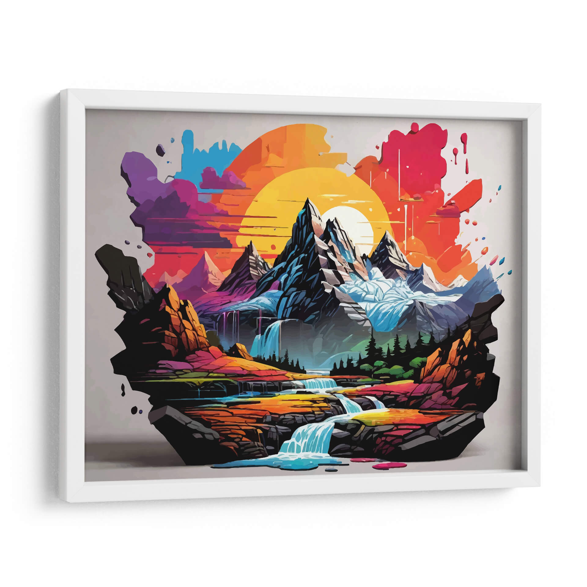 Sumérgete en la fantasía y la aventura con nuestro cuadro decorativo 'Montaña Mágica'. Esta obra de arte vibrante captura un paisaje de montaña épico al amanecer o atardecer, donde la naturaleza se desborda en una explosión de color. Los picos nevados se elevan majestuosamente, flanqueados por cascadas que descienden hacia un río serpenteante, todo ello enmarcado por formaciones rocosas audaces y un follaje exuberante. La paleta de colores es audaz y expresiva, con tonos cálidos de naranja y amarillo del sol poniente que contrastan con el azul profundo de las sombras y los toques vibrantes de púrpura, rojo y turquesa que salpican el cielo y la tierra. Este estilo pictórico, que fusiona elementos realistas con una estética casi surrealista y toques de arte pop, evoca una sensación de asombro y vitalidad. "Montaña Mágica" es perfecta para añadir un toque de energía y misticismo a cualquier salón moderno, oficina o dormitorio, transformando tu espacio en un refugio de inspiración y belleza natural reimaginada. Deja que esta pieza te transporte a un mundo donde la realidad se encuentra con la fantasía, creando un punto focal inolvidable en tu decoración.