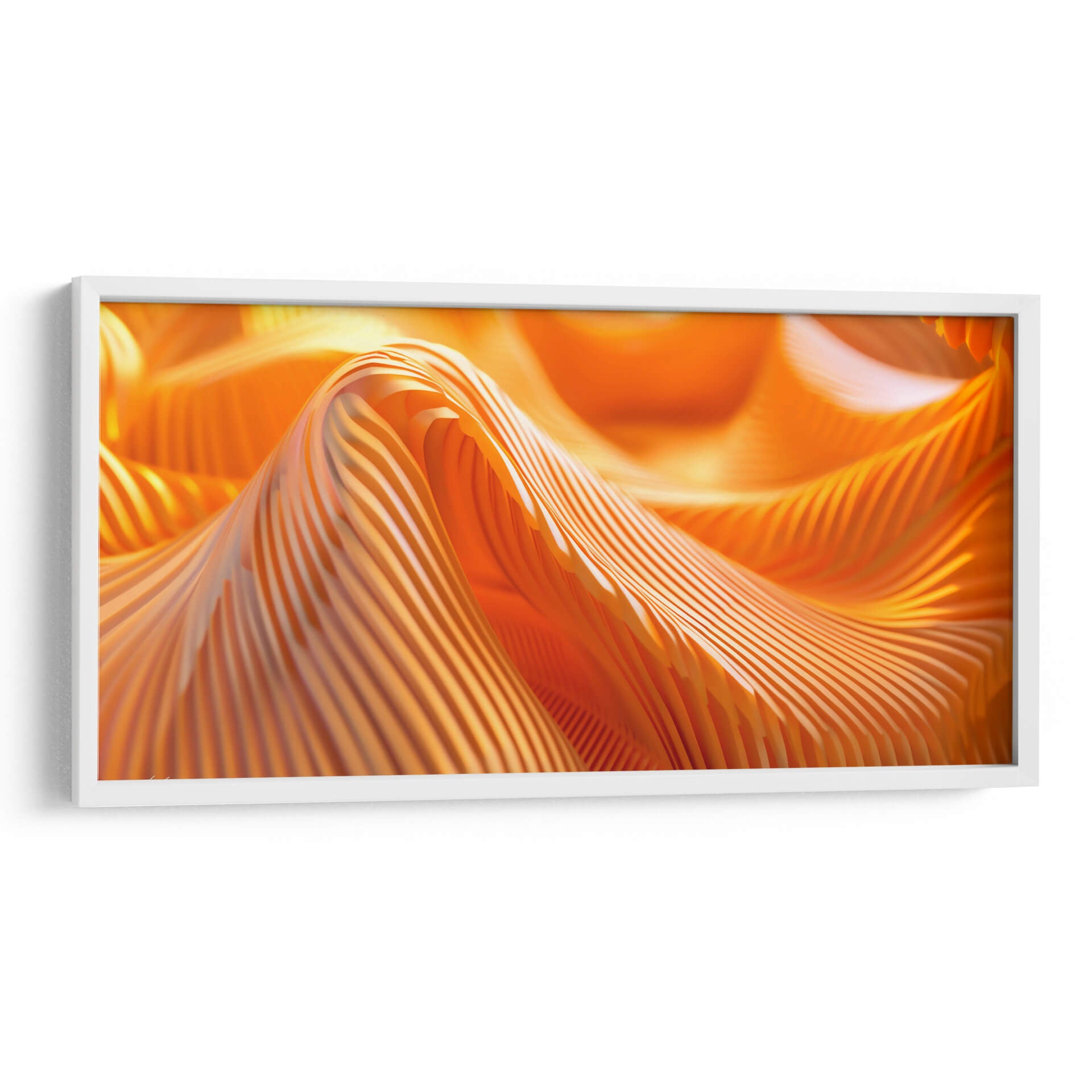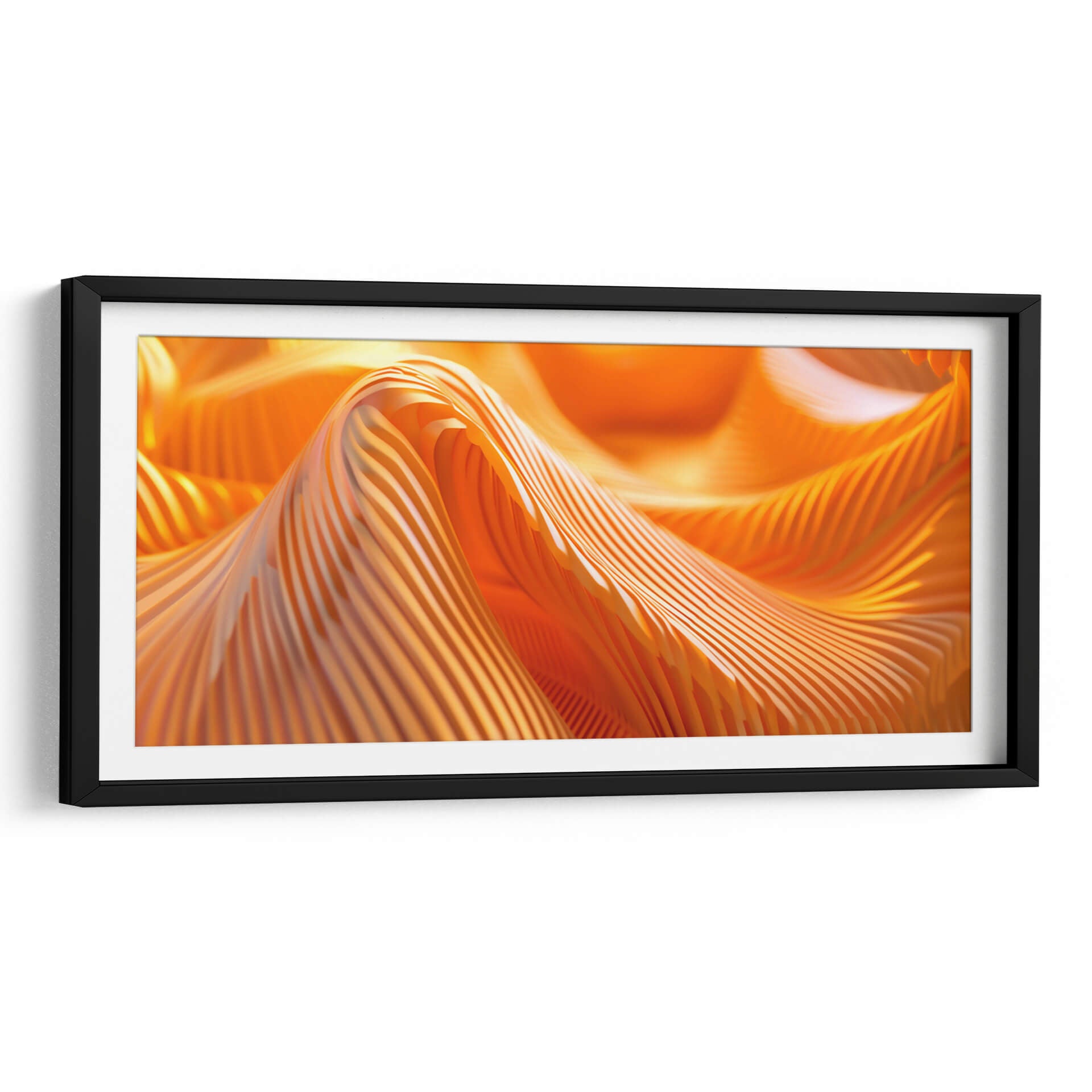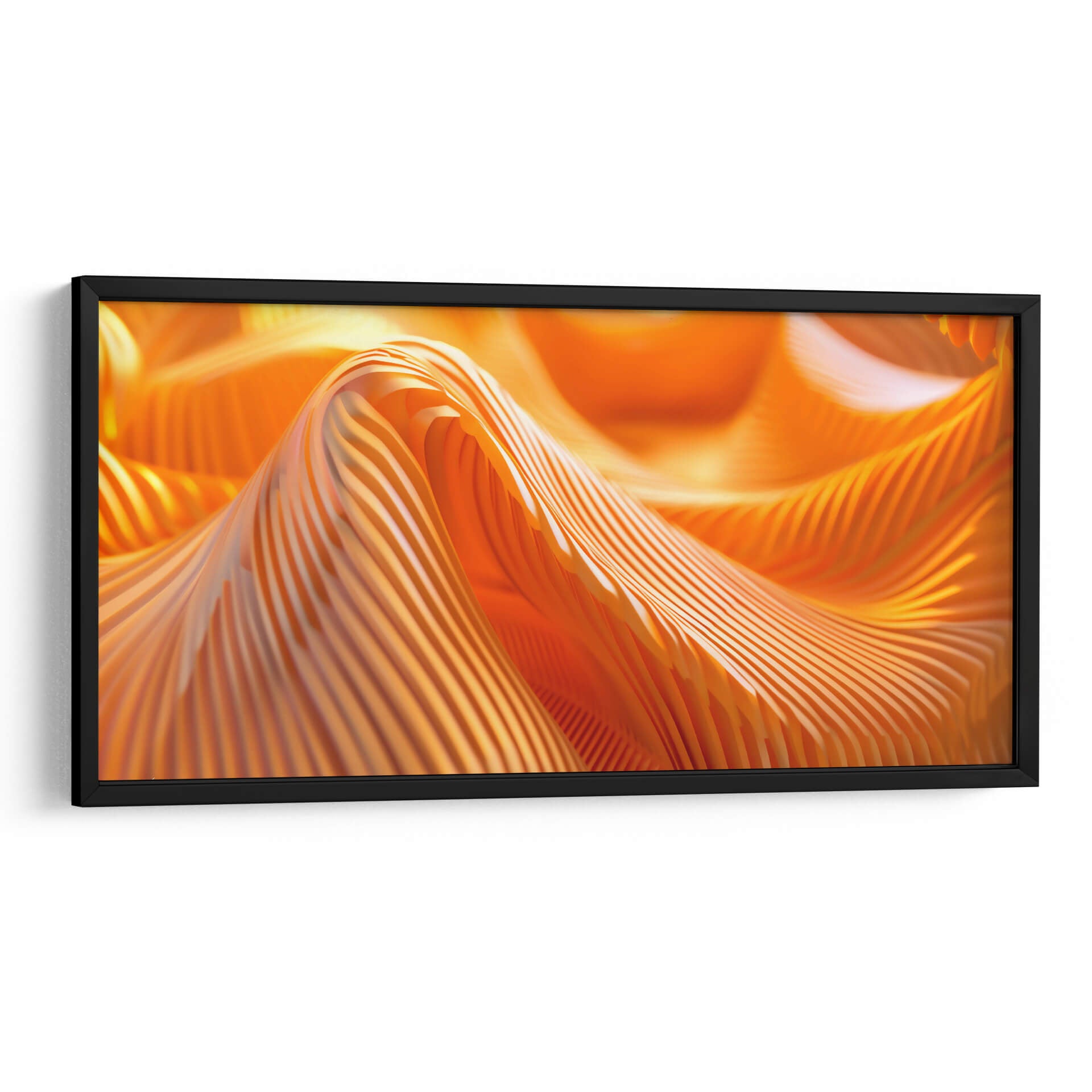 Sumérgete en la vibrante energía de "Movimiento - Anaranjado - 3", una obra de arte abstracto que captura la esencia dinámica del color y la forma. Este cuadro decorativo presenta una composición cautivadora de pliegues y ondas en un intenso tono anaranjado, evocando una sensación de calor, vitalidad y fluidez. Las líneas paralelas crean un efecto visual fascinante que juega con la luz y la sombra, añadiendo profundidad y textura a la pieza. El estilo abstracto de la obra permite una interpretación personal, invitando a cada espectador a encontrar su propio significado y conexión emocional. Ideal para espacios que buscan un toque de audacia y sofisticación, este cuadro es perfecto para salas de estar modernas, oficinas creativas o cualquier lugar donde se desee infundir un ambiente de dinamismo y optimismo. Añade un punto focal impactante y contemporáneo a tu decoración con esta pieza única.