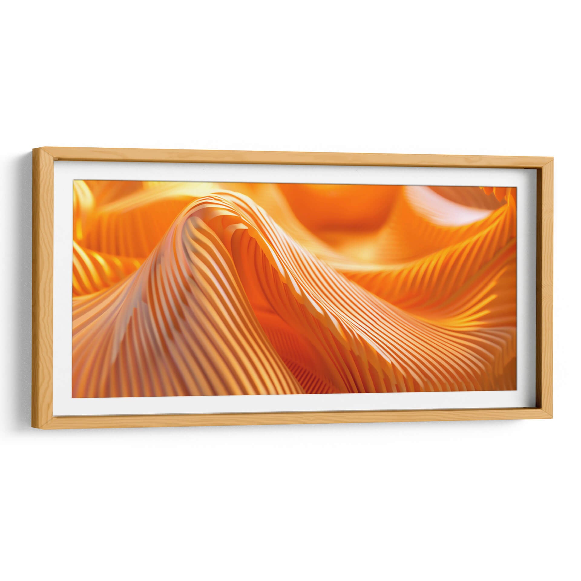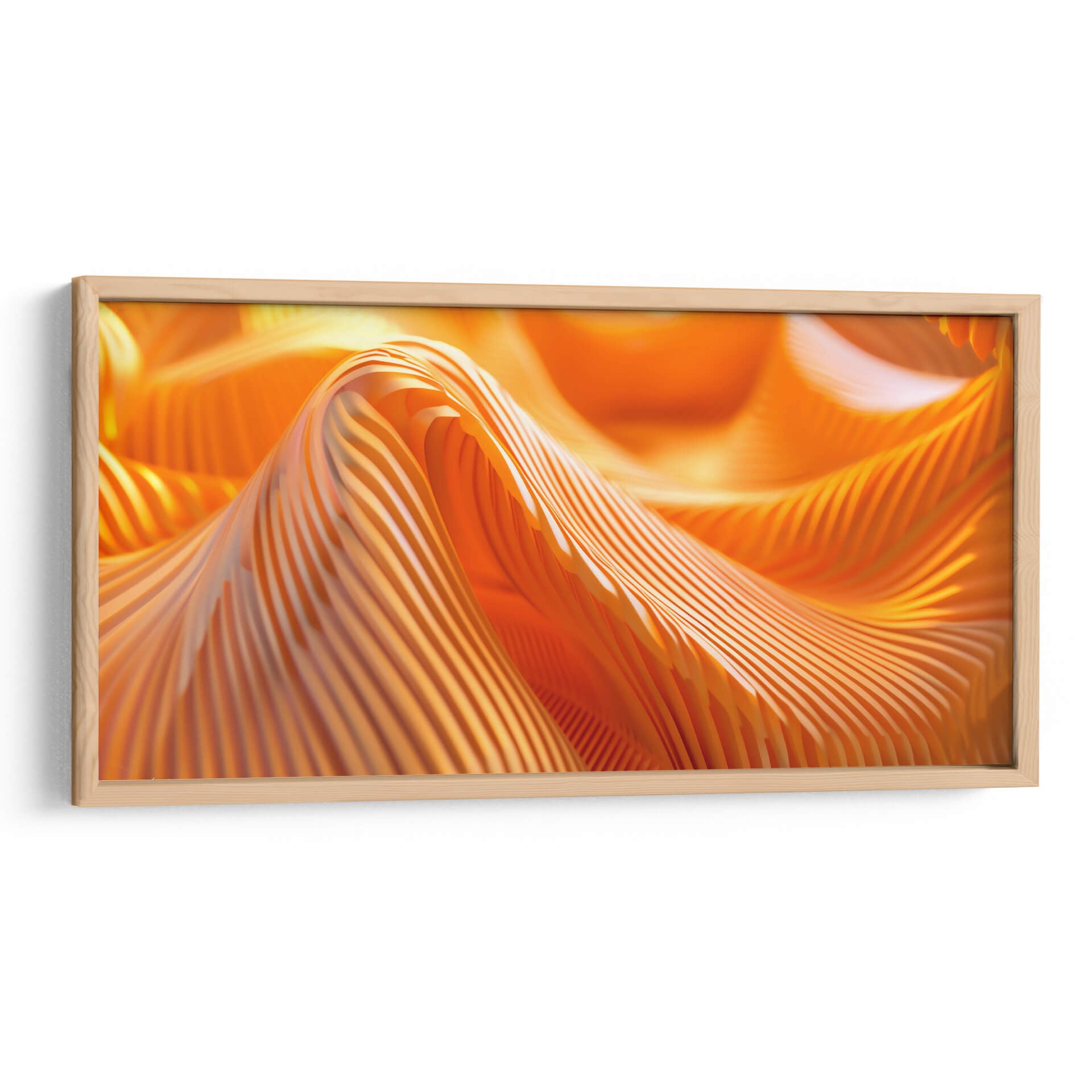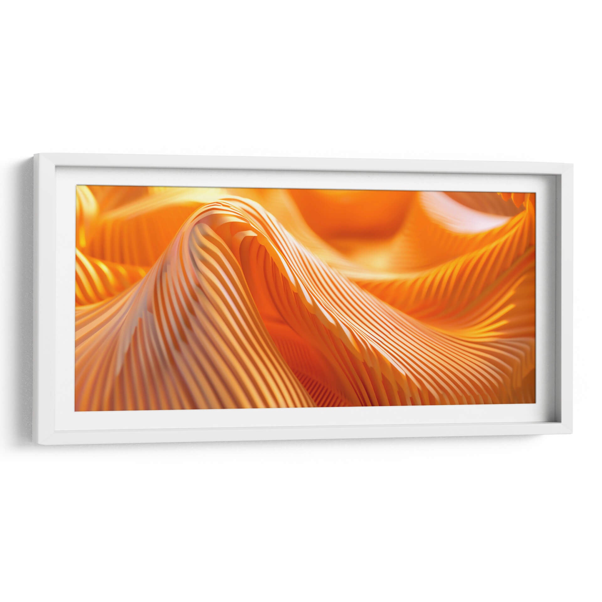 Sumérgete en la vibrante energía de "Movimiento - Anaranjado - 3", una obra de arte abstracto que captura la esencia dinámica del color y la forma. Este cuadro decorativo presenta una composición cautivadora de pliegues y ondas en un intenso tono anaranjado, evocando una sensación de calor, vitalidad y fluidez. Las líneas paralelas crean un efecto visual fascinante que juega con la luz y la sombra, añadiendo profundidad y textura a la pieza. El estilo abstracto de la obra permite una interpretación personal, invitando a cada espectador a encontrar su propio significado y conexión emocional. Ideal para espacios que buscan un toque de audacia y sofisticación, este cuadro es perfecto para salas de estar modernas, oficinas creativas o cualquier lugar donde se desee infundir un ambiente de dinamismo y optimismo. Añade un punto focal impactante y contemporáneo a tu decoración con esta pieza única.
