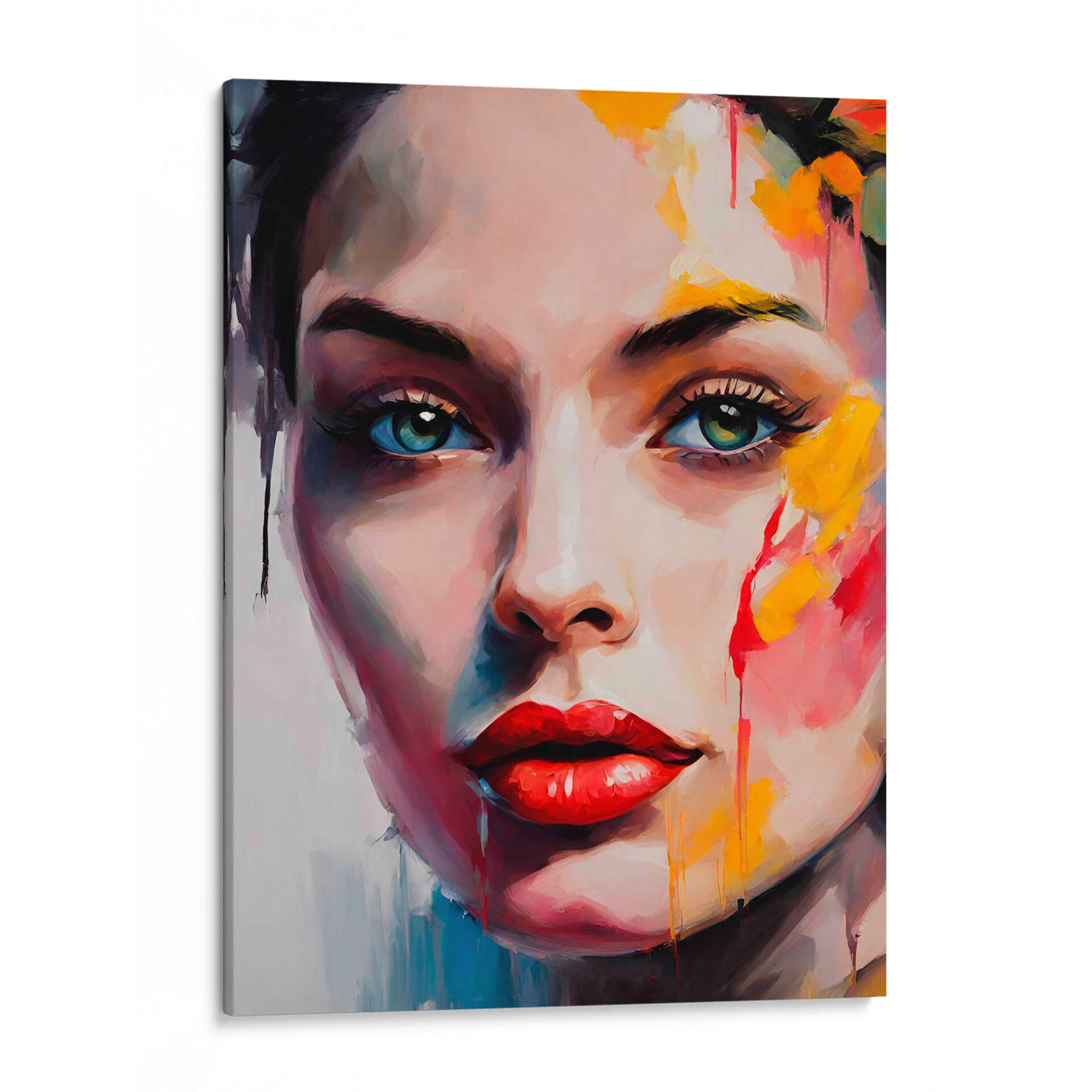 Sumérgete en la cautivadora obra de arte "Mujer", una pieza que irradia fuerza y misterio. Este cuadro decorativo presenta un primer plano de un rostro femenino, donde la mirada penetrante y los labios carnosos en rojo vibrante capturan la atención de inmediato. La artista Lofty&Me utiliza una técnica expresionista con pinceladas audaces y texturas ricas, creando un juego de luces y sombras que aporta profundidad y dramatismo. La paleta de colores, dominada por tonos piel suaves contrastados con explosiones de rojo, amarillo y toques de azul, genera una atmósfera intensa y enigmática. Las salpicaduras de color que parecen escurrirse añaden un toque moderno y dinámico, sugiriendo emoción y vitalidad. "Mujer" es ideal para espacios que buscan un punto focal audaz, como salas de estar contemporáneas, vestíbulos o estudios de arte, aportando un aire de sofisticación y carácter. Este cuadro decorativo es una invitación a contemplar la complejidad de la figura femenina y la expresión artística pura. Una adición perfecta para coleccionistas de arte moderno y amantes de retratos que buscan piezas con personalidad y un fuerte impacto visual.
