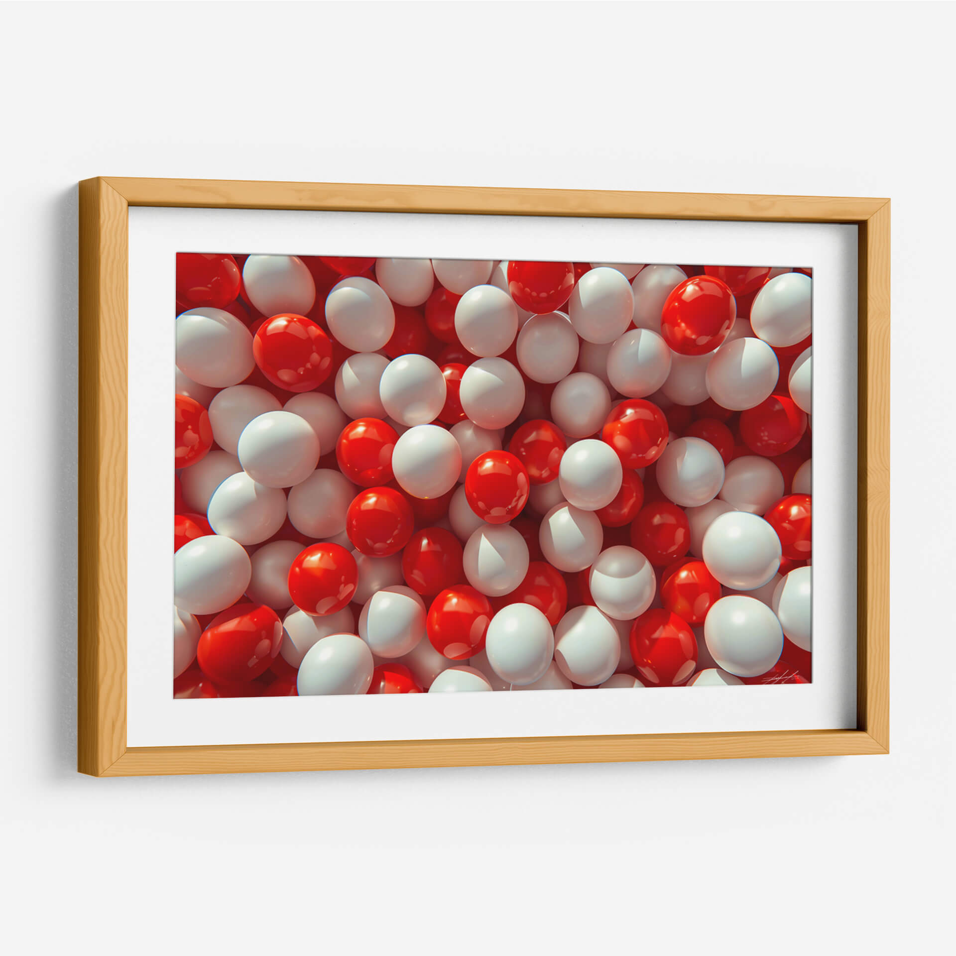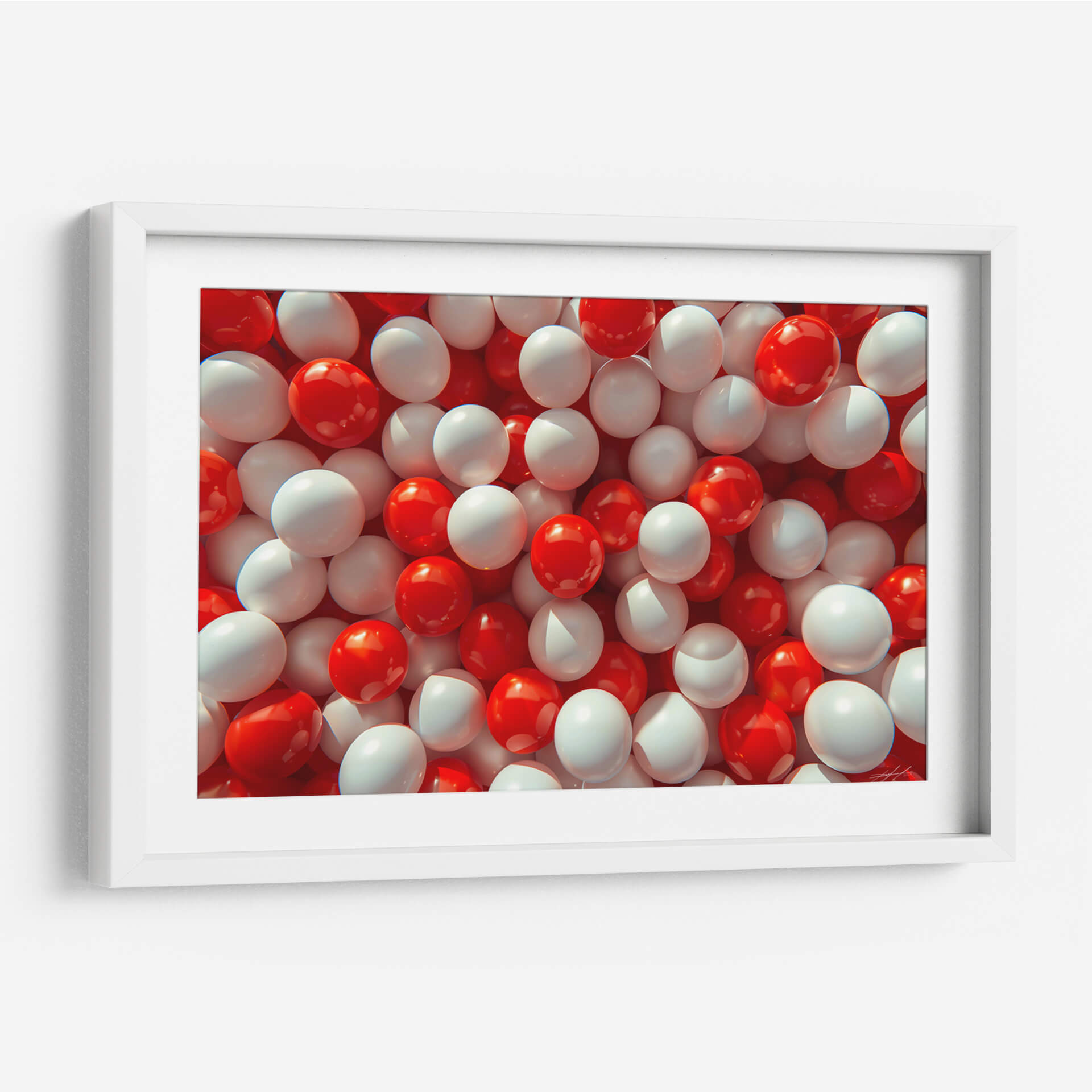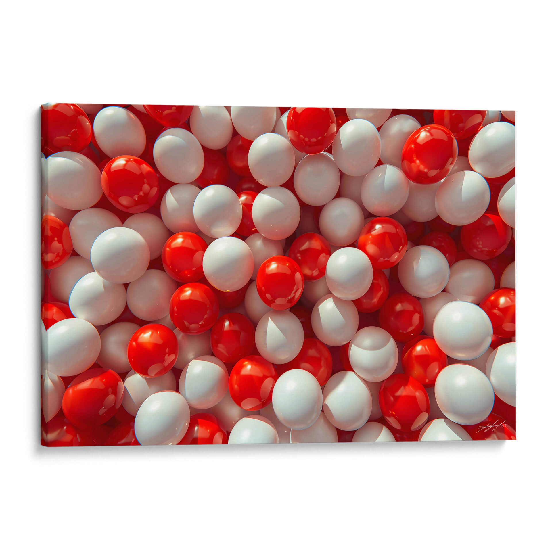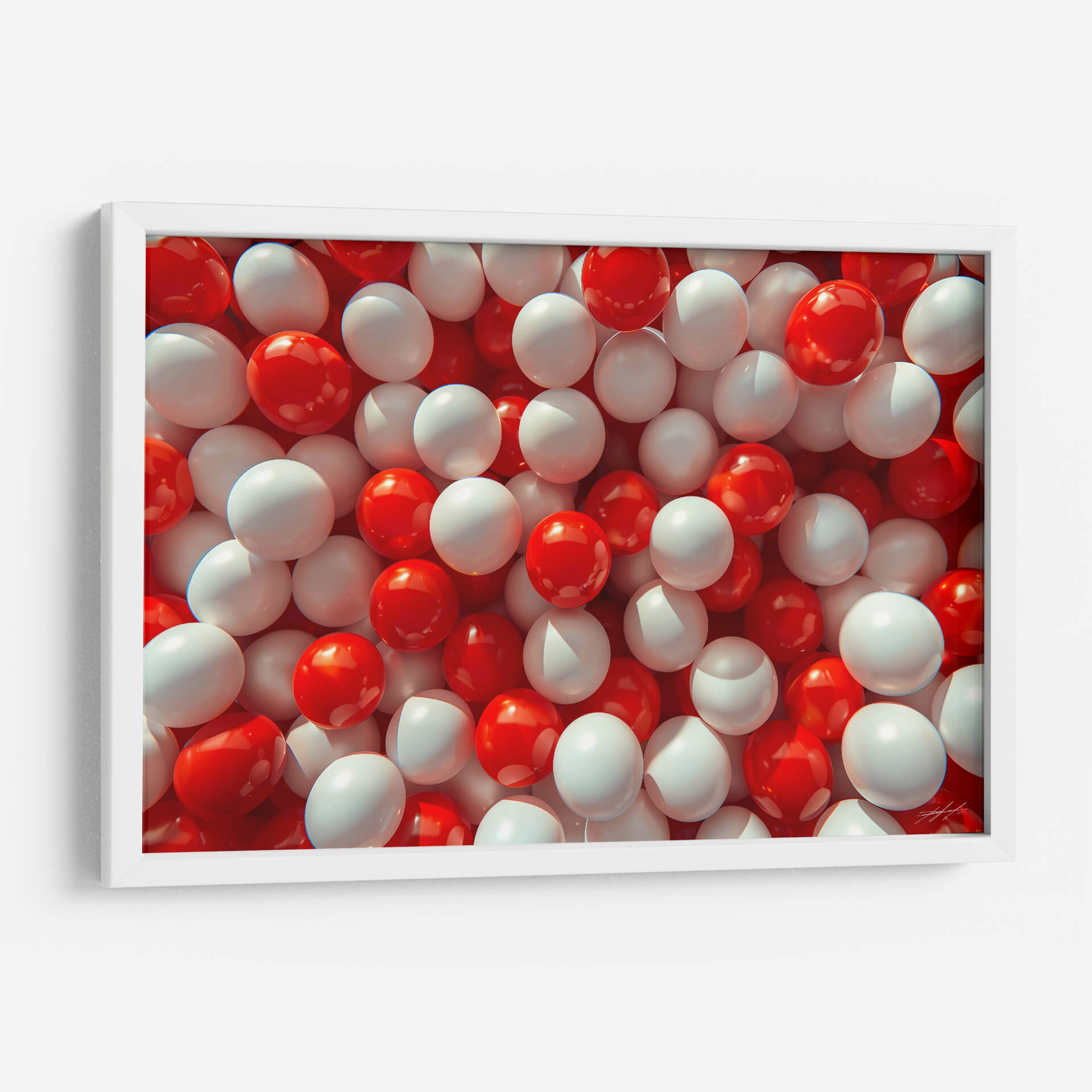 Sumérgete en un universo de formas y colores con "Orbes", una obra de arte contemporáneo que redefine la abstracción visual. Este cuadro decorativo presenta una cautivadora acumulación de esferas en vibrantes tonos de rojo y blanco puro, creando un efecto dinámico y casi tridimensional. La luz se refleja magistralmente en las superficies pulidas de los orbes, aportando profundidad y un brillo sutil que invita a la contemplación. Su composición, densa pero organizada, genera un patrón hipnótico que atrae la mirada y estimula la imaginación. "Orbes" es una pieza versátil, perfecta para añadir un toque de modernidad y energía a cualquier espacio, ya sea una sala de estar, una oficina o un dormitorio. Su paleta de colores audaz pero equilibrada la convierte en un punto focal ideal para interiores contemporáneos, minimalistas o incluso eclécticos, aportando un aire de sofisticación lúdica y una sensación de movimiento constante. Descubre cómo este cuadro decorativo puede transformar tu entorno, infundiendo vitalidad y un estilo único en tu decoración.
