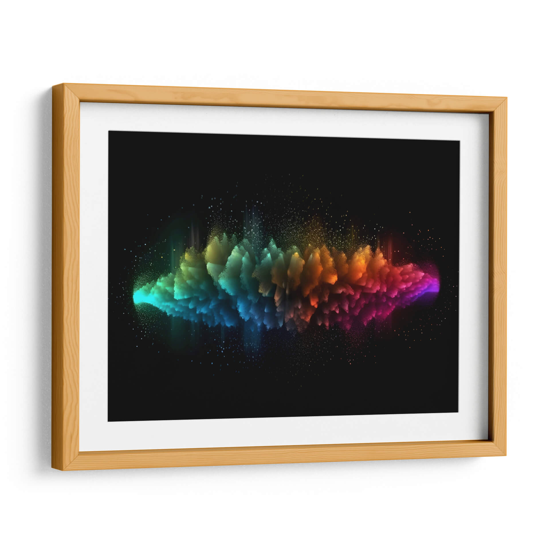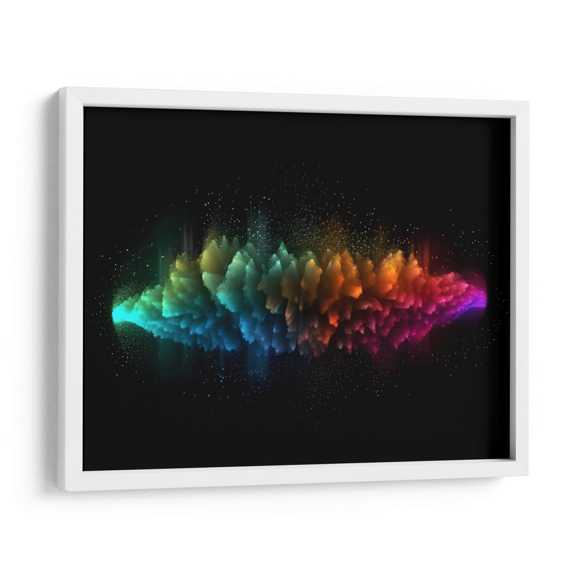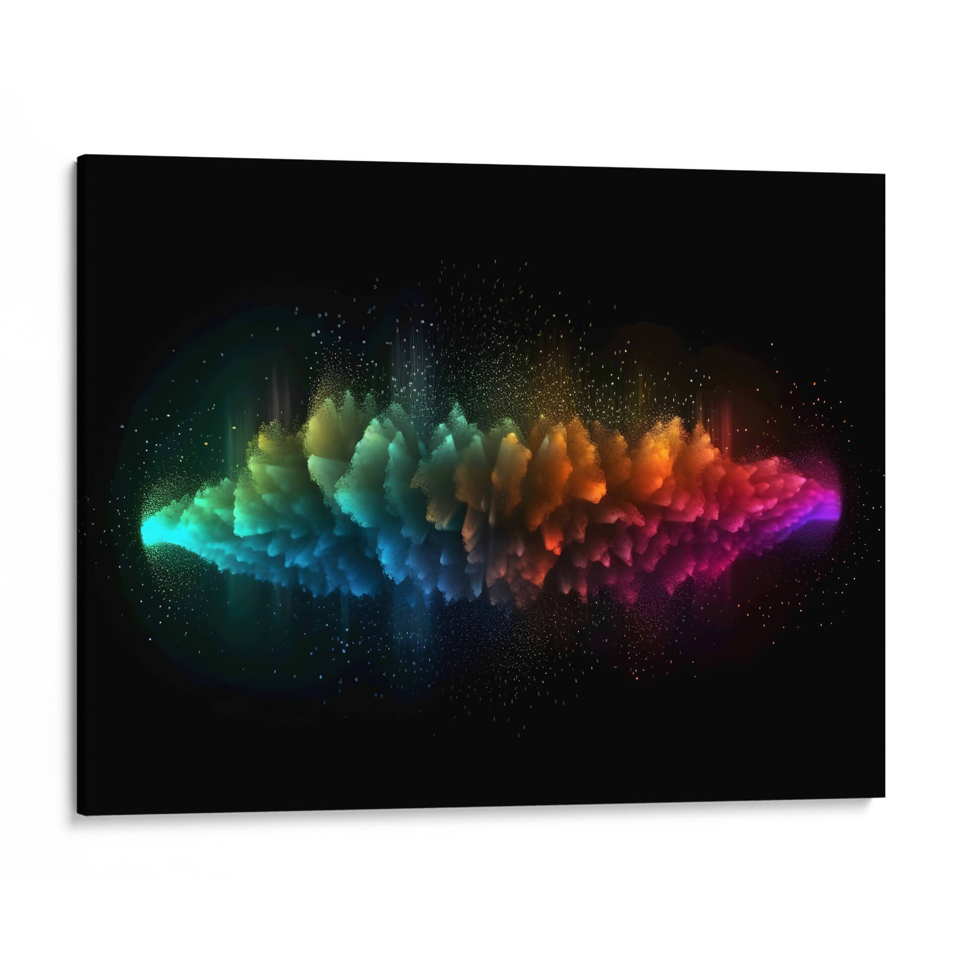 Sumérgete en la explosión de color y energía de "Partículas 2", una obra de arte digital que desafía la percepción y cautiva la imaginación. Este cuadro decorativo abstracto presenta una formación dinámica que se despliega en un degradado vibrante, transitando desde el turquesa y azul eléctrico en un extremo, hasta cálidos tonos naranjas y púrpuras intensos en el otro. Pequeñas partículas luminosas flotan alrededor, añadiendo una sensación de movimiento y profundidad etérea, contrastando maravillosamente con el fondo negro profundo. La composición central crea un punto focal poderoso, invitando a la contemplación de la fuerza y la belleza inherentes a la desintegración y la creación. "Partículas 2" es ideal para infundir vida y un toque de misterio cósmico a cualquier espacio moderno, ya sea una sala de estar, un estudio u oficina. Su estilo abstracto contemporáneo lo convierte en una pieza versátil, capaz de dialogar tanto con decoraciones minimalistas como con ambientes más audaces. Descubre cómo este cuadro decorativo abstracto puede transformar tu entorno, añadiendo un elemento de arte contemporáneo que inspira y fascina, convirtiéndose en un verdadero punto de conversación y admiración. Adquiere esta pieza única para tu hogar u oficina y deja que la vibración del color y la forma definan tu espacio.