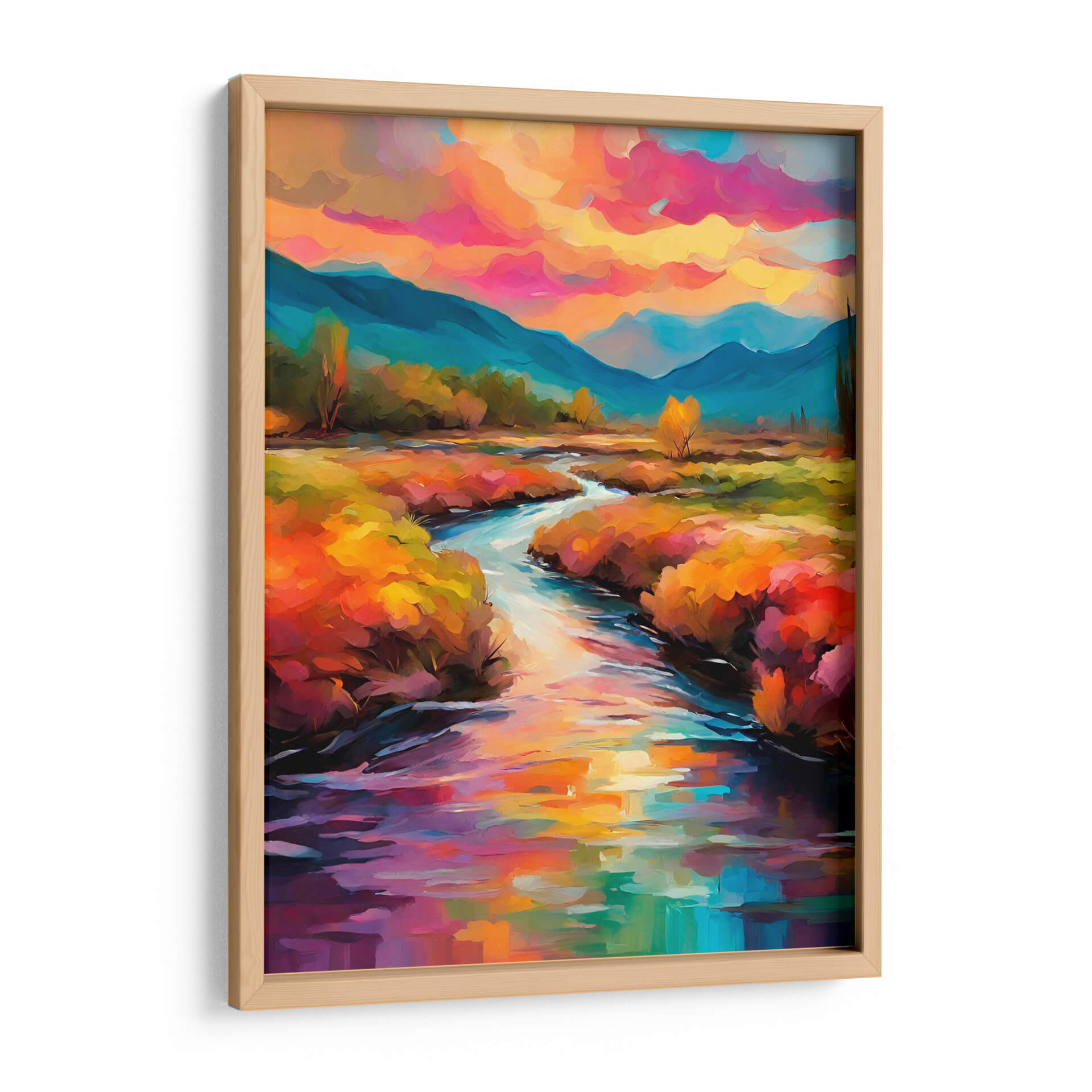 Sumérgete en la vibrante energía de "Río", una obra de arte contemporáneo que captura la esencia de un paisaje fluvial con una explosión de color y textura. Los pinceladas audaces y expresivas dan vida a las aguas fluidas y a la vegetación exuberante, creando una atmósfera de movimiento y vitalidad. La paleta de colores, dominada por tonos cálidos como naranjas, rosas y amarillos en las orillas y el cielo, se contrasta maravillosamente con los azules profundos de las montañas y el río, generando un equilibrio visual dinámico y cautivador. "Río" es ideal para añadir un punto focal de color y alegría a cualquier espacio, desde una sala de estar moderna hasta un comedor acogedor. Este cuadro decorativo evoca una sensación de aventura y conexión con la naturaleza, invitando a la contemplación y al disfrute de la belleza escénica. Su estilo abstracto y contemporáneo lo convierte en una pieza versátil que complementará una amplia gama de decoraciones interiores, aportando un toque artístico único y lleno de personalidad. Transforma tu hogar u oficina con esta pieza inspiradora que celebra la fuerza y la belleza del mundo natural a través de una interpretación artística llena de emoción y vida. Una adición perfecta para quienes buscan arte de pared que sea a la vez moderno y profundamente evocador, añadiendo calidez y carácter a tu entorno.