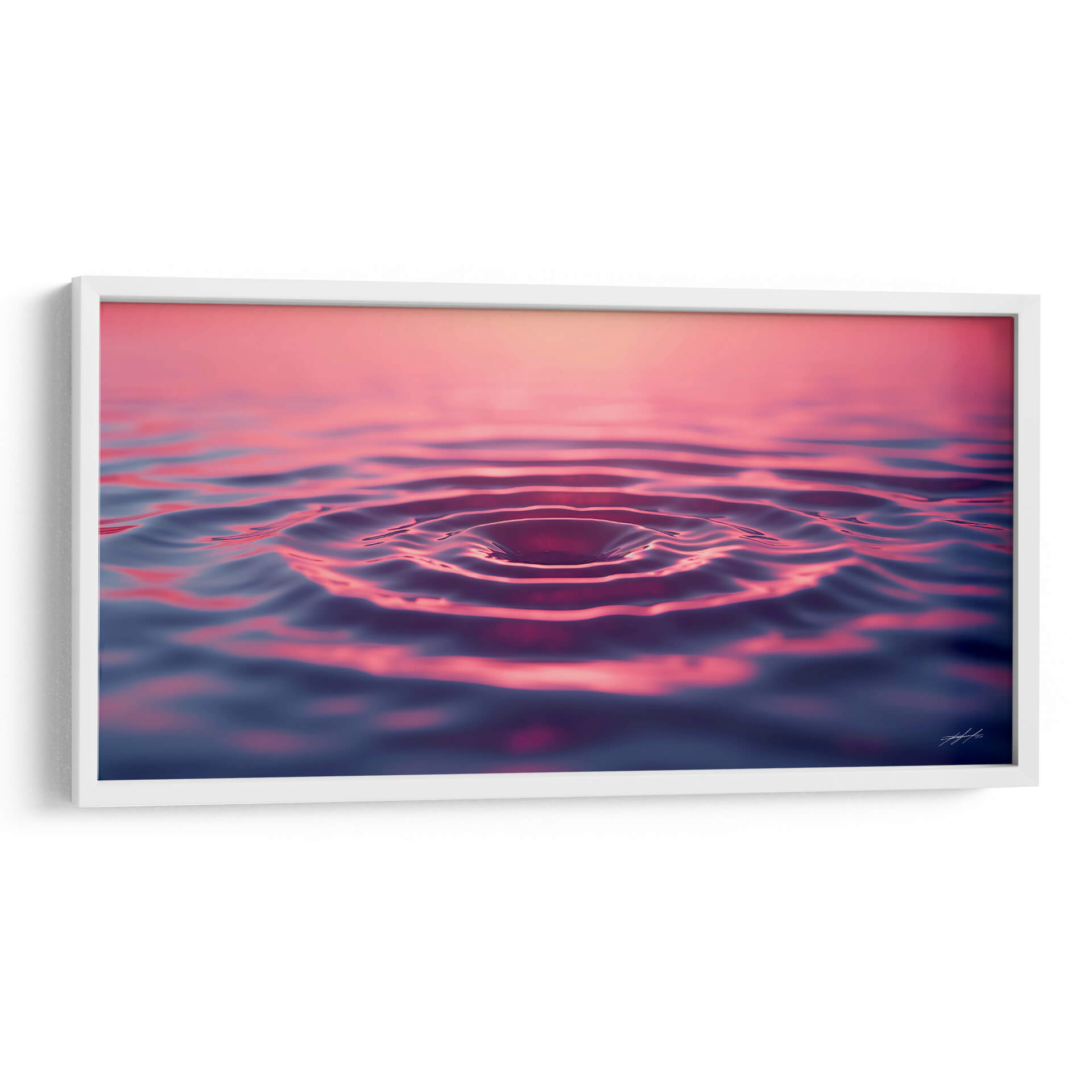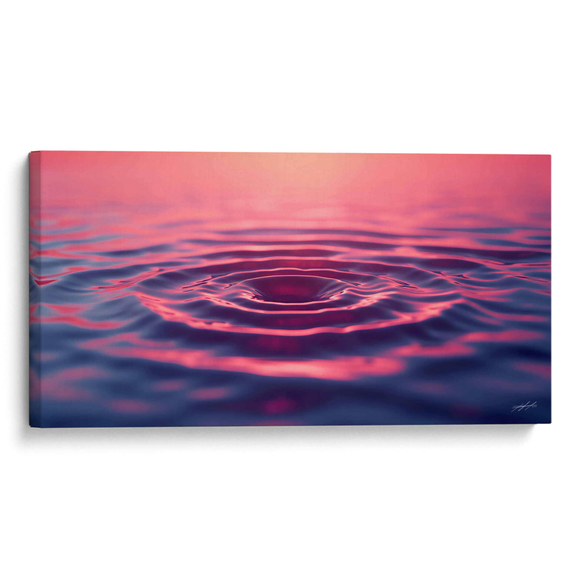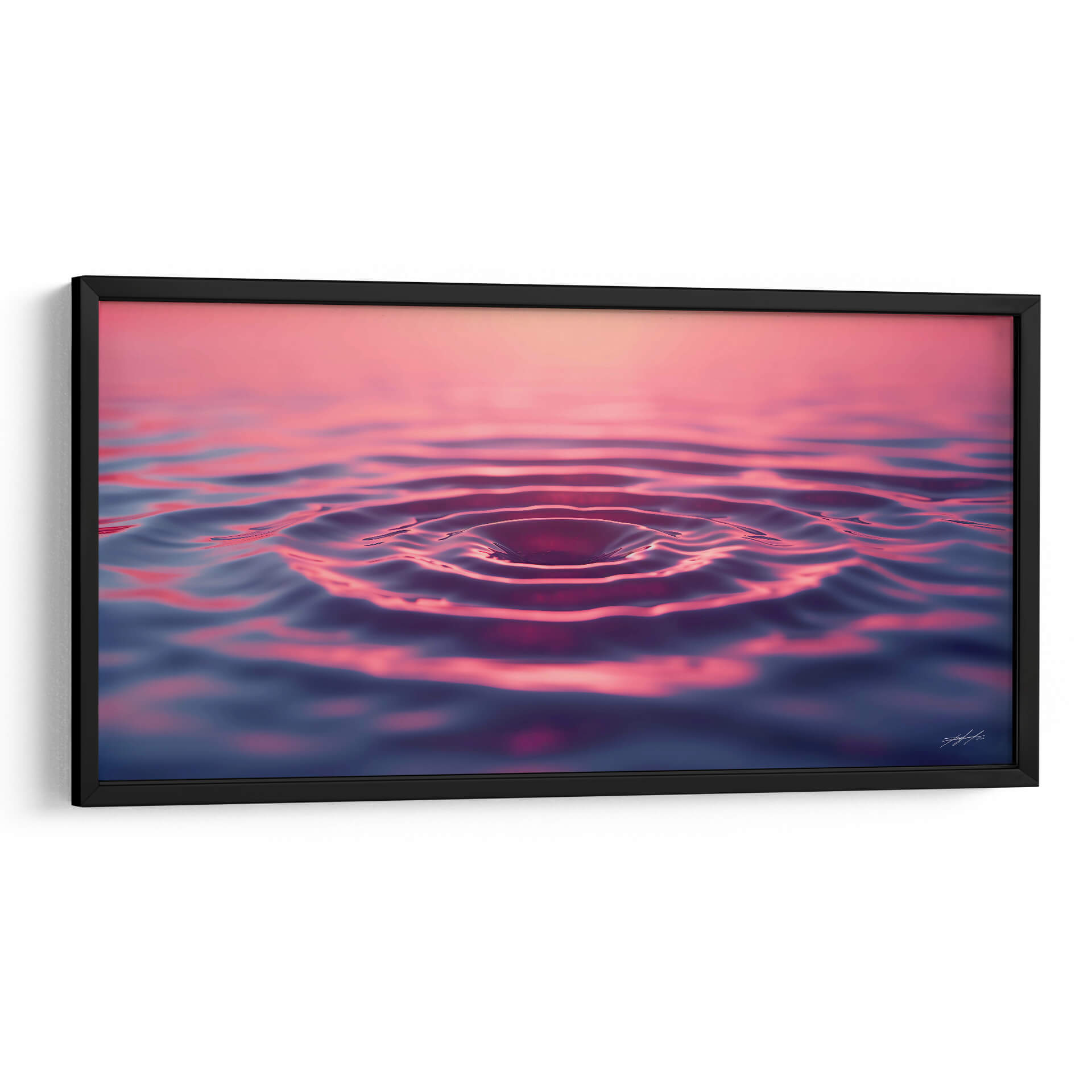 Sumérgete en la tranquilidad serena de "SERENO - 6", una obra de arte visualmente cautivadora que captura la belleza efímera de las ondas en el agua. Esta pieza presenta un primer plano hipnótico de la superficie de un cuerpo de agua, donde una gota crea concéntricas ondas que se expanden suavemente. La paleta de colores es un estudio fascinante de contrastes, con profundos tonos índigo y azul cobalto que se fusionan con vibrantes acentos de rosa intenso y magenta, evocando la atmósfera de un atardecer o amanecer sobre el mar. La iluminación juega un papel crucial, resaltando el brillo y la textura del agua, creando un juego de luces y sombras que aporta profundidad y realismo a la escena. El estilo, una fusión entre fotografía macro y abstracción acuática, invita a la contemplación y a la introspección. "SERENO - 6" es ideal para aquellos que buscan infundir calma y elegancia en sus espacios, ya sea una sala de estar minimalista, un dormitorio que invita al descanso o una oficina que necesita un toque de inspiración zen. Este cuadro decorativo es una invitación a pausar, respirar y encontrar la paz en los detalles más sutiles de la naturaleza, transformando cualquier pared en un oasis de serenidad y estilo contemporáneo.