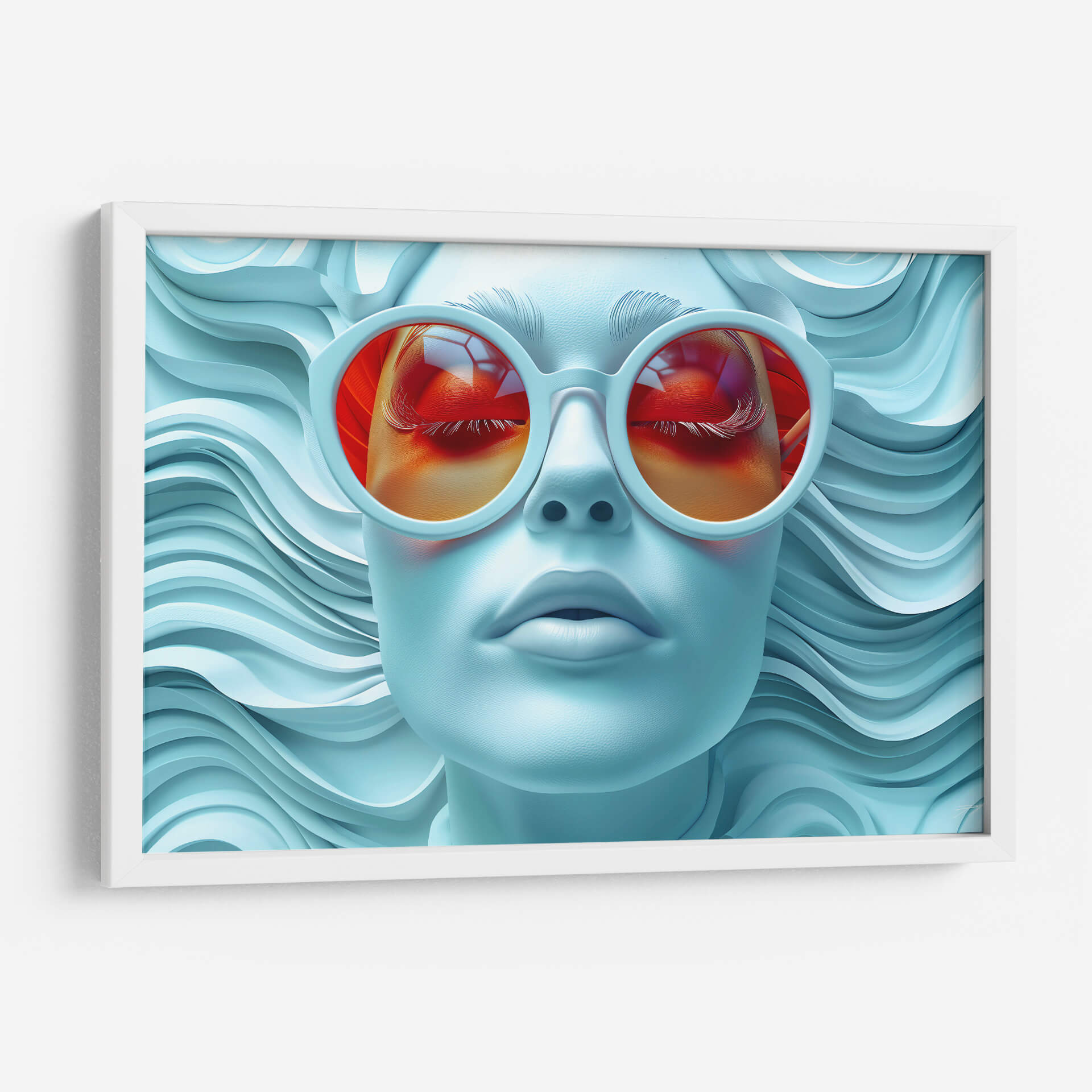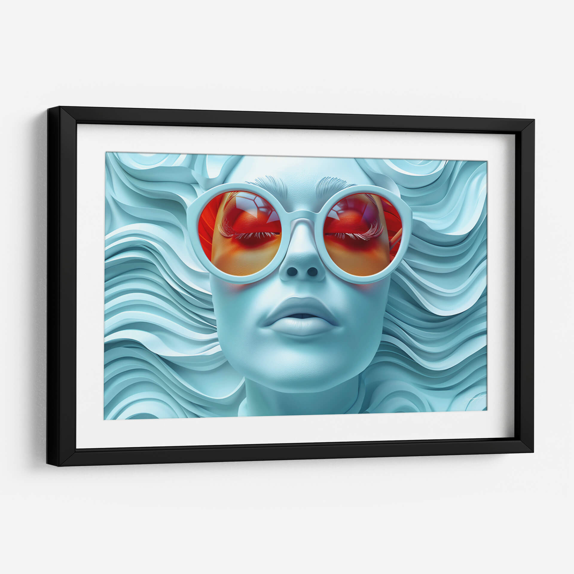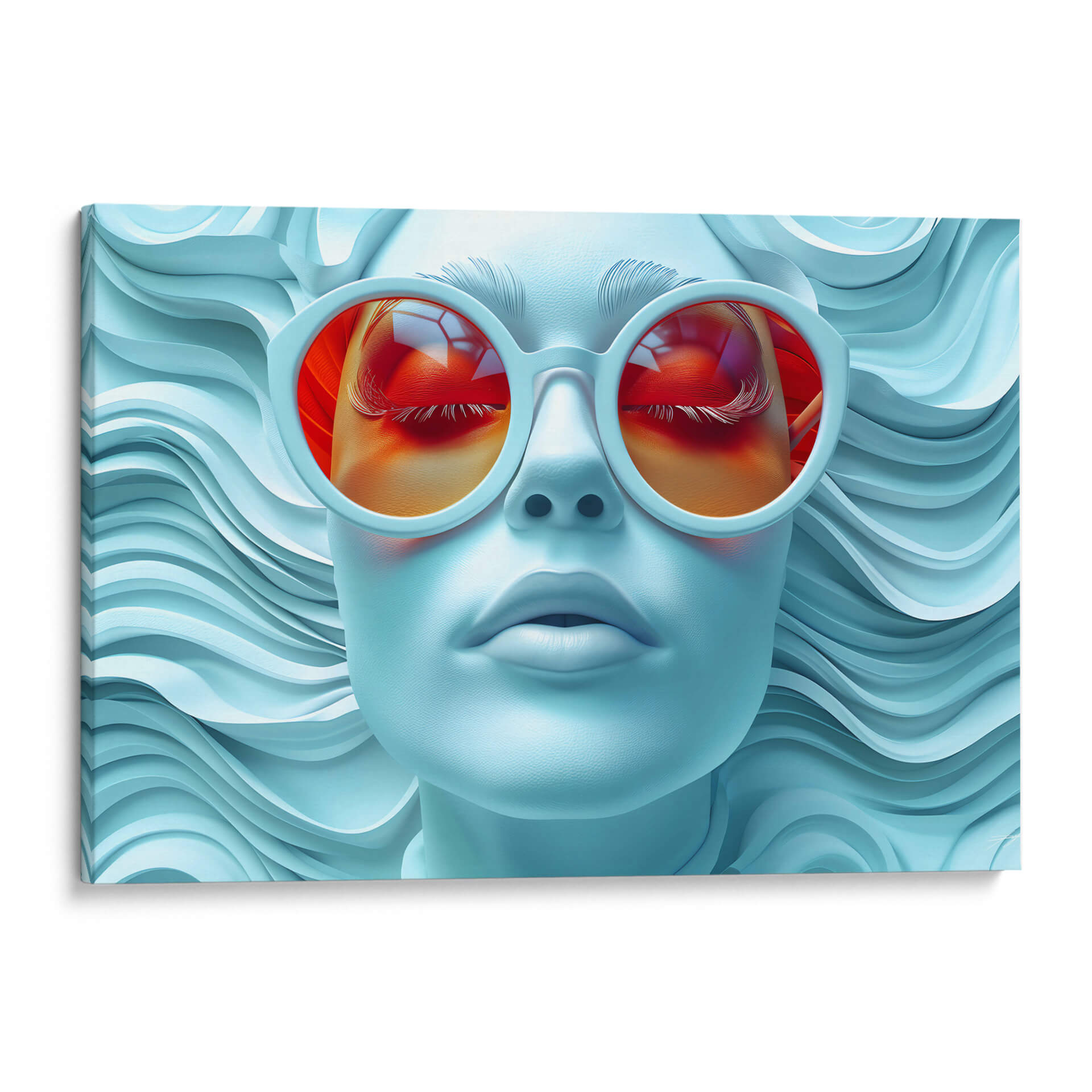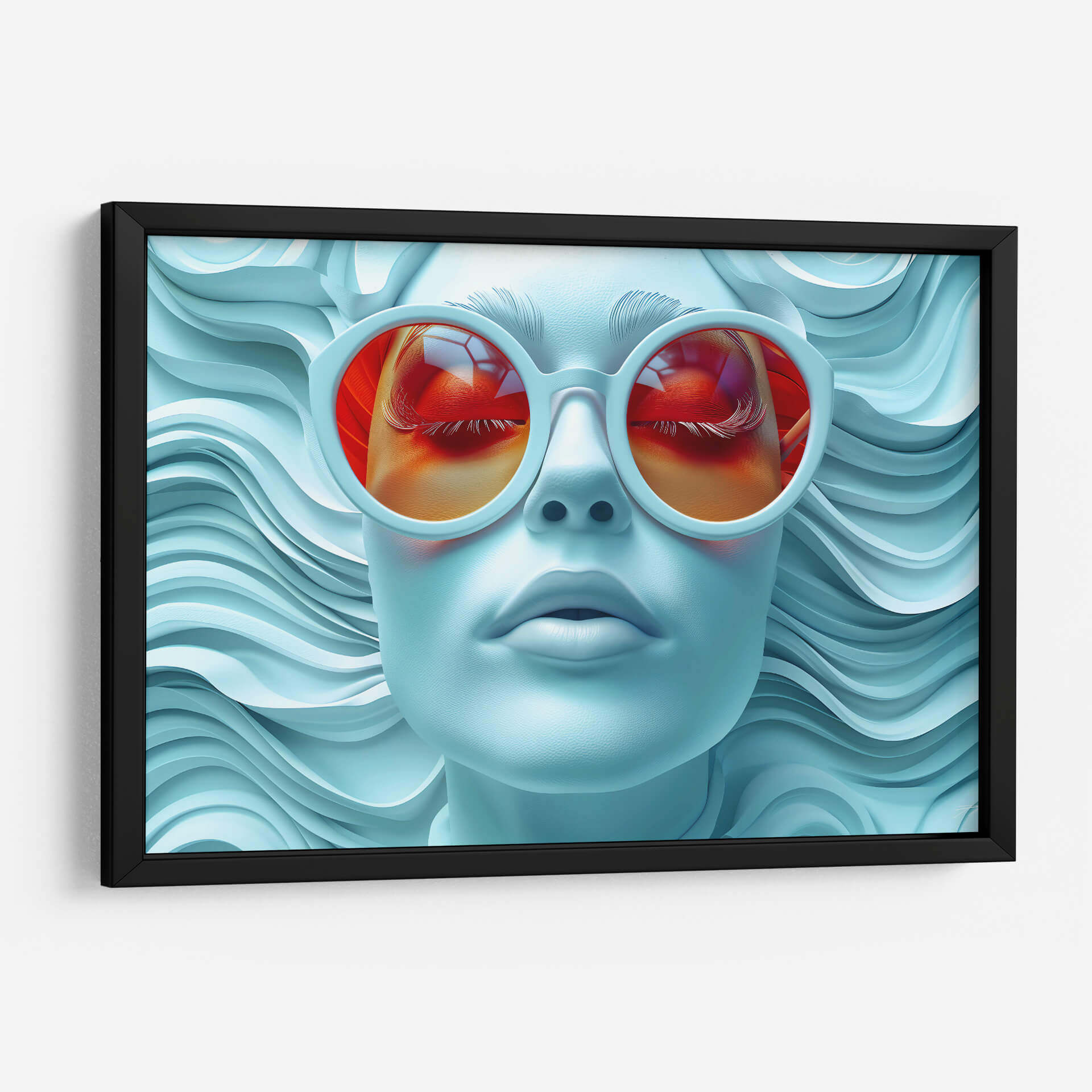 Sumérgete en la enigmática belleza de "Sueño de Verano - 1", una obra de arte contemporáneo que captura la esencia de la introspección y el misterio. Esta pieza presenta un retrato estilizado de un rostro, envuelto en texturas ondulantes de tonos fríos azulados que evocan calma y serenidad. Sin embargo, la verdadera chispa de la obra reside en los detalles: unas gafas de sol con lentes naranjas vibrantes que reflejan un fuego interior, un contraste audaz que añade profundidad y dramatismo a la composición. Las pestañas largas y definidas sobre los ojos cerrados intensifican la sensación de un mundo interior o un momento de reflexión profunda. El estilo de la obra, con sus líneas suaves y su modelado tridimensional, le confiere una cualidad casi escultórica, invitando al espectador a explorar sus matices. Ideal para espacios que buscan un toque de sofisticación moderna y un punto focal intrigante, este cuadro decorativo es perfecto para salones, estudios o dormitorios, aportando una atmósfera de ensueño y un aire de misterio chic. "Sueño de Verano - 1" es más que una imagen; es una invitación a contemplar la dualidad entre la calma exterior y la pasión interior, un diálogo visual que enriquecerá cualquier ambiente.