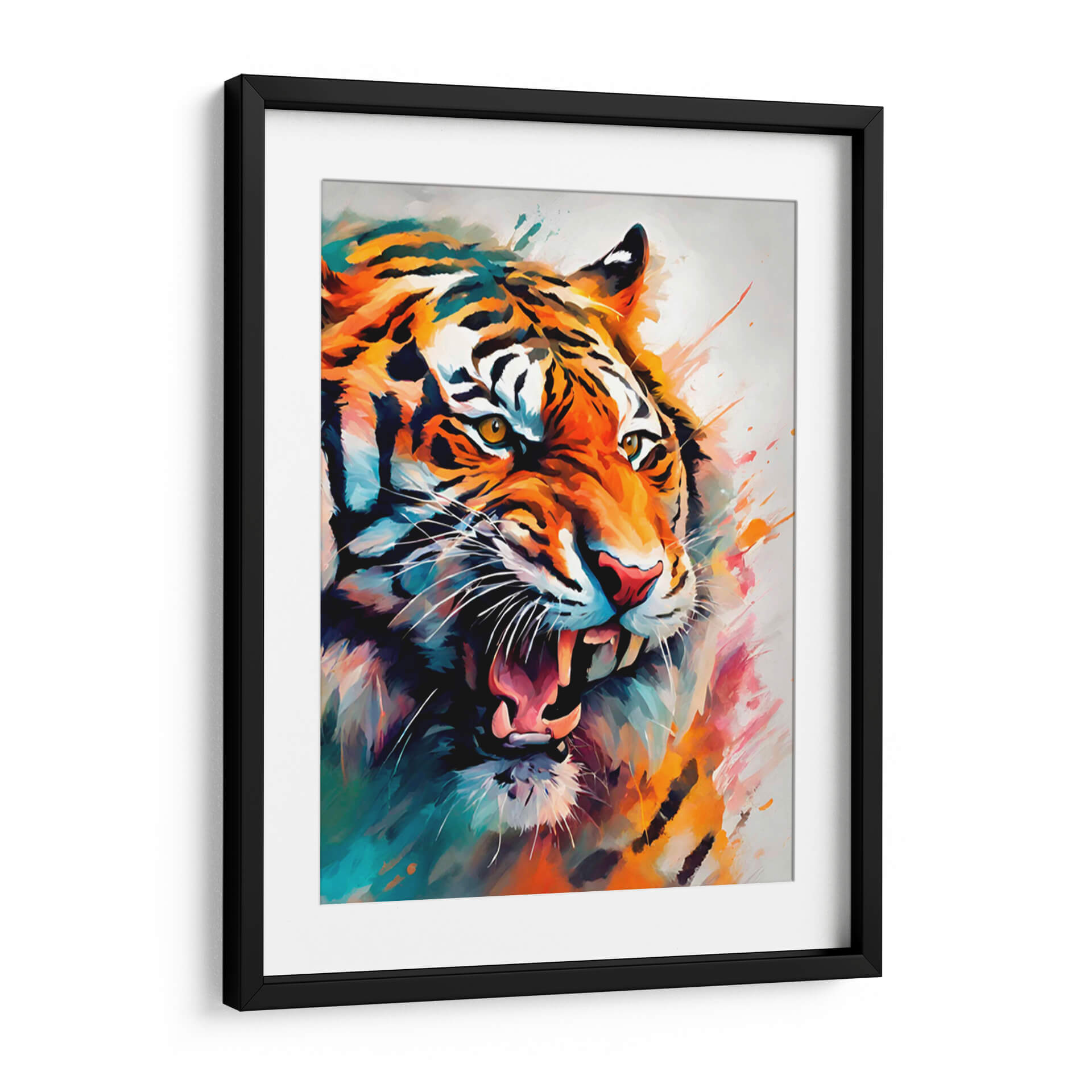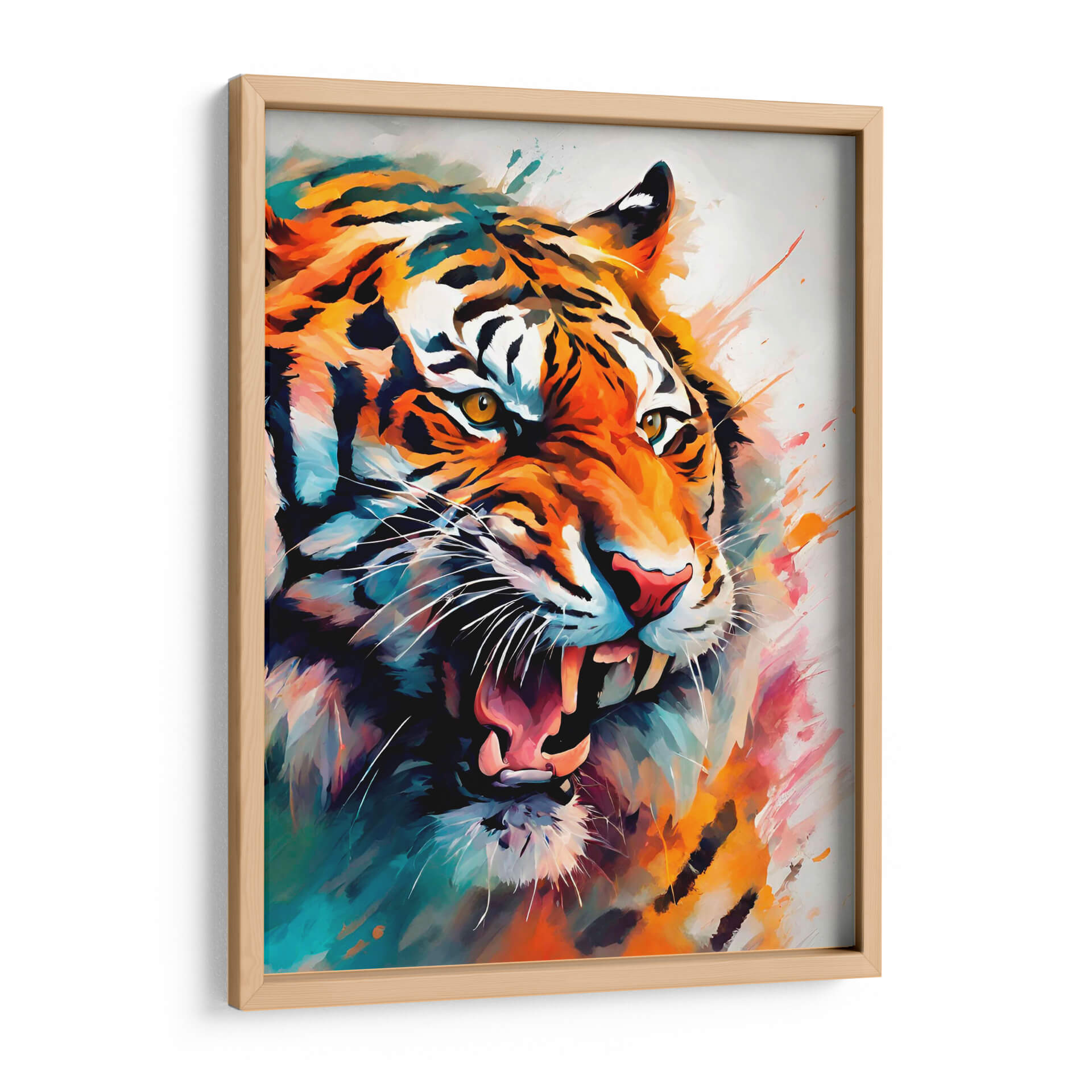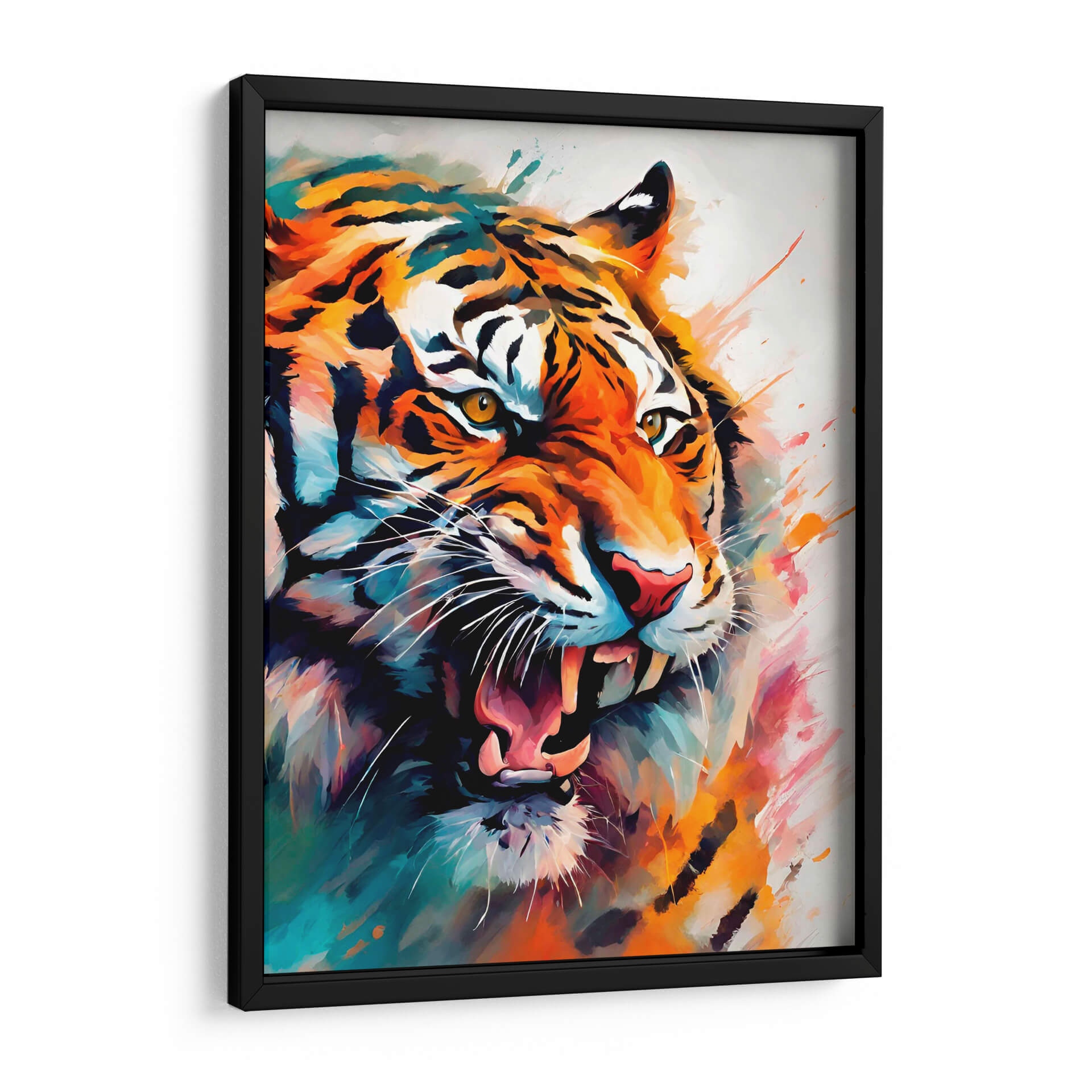 Captura la fuerza indómita y la belleza salvaje con este impactante cuadro decorativo 'Tigre Roar' del artista Lofty&Me. La obra presenta un primer plano dramático de un tigre rugiendo, con pinceladas audaces y expresivas que transmiten una energía vibrante y visceral. La paleta de colores es una explosión de naranjas intensos, azules profundos y toques de blanco y negro, creando un contraste dinámico que atrae la mirada y evoca la fiereza del animal. La técnica, que combina trazos sueltos con detalles nítidos en los ojos y colmillos, aporta una profundidad y un realismo estilizado a la pieza. Este cuadro decorativo es perfecto para añadir un toque de audacia y personalidad a cualquier espacio, ya sea una sala de estar moderna, un estudio o una oficina. Su composición centrada y la intensidad de la mirada del tigre lo convierten en un punto focal magnético, ideal para aquellos que buscan arte que inspire poder y admiración por la naturaleza. Descubre la potencia del arte contemporáneo y transforma tu decoración con esta pieza única que evoca la majestuosidad del rey de la selva con un estilo artístico contemporáneo y lleno de vida, listo para rugir en tus paredes.