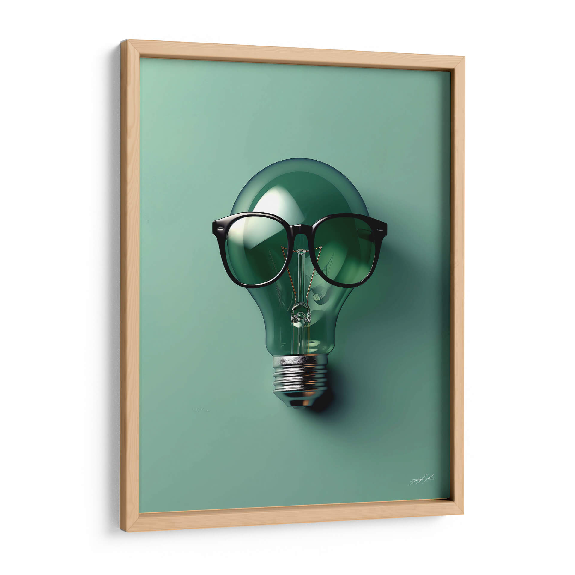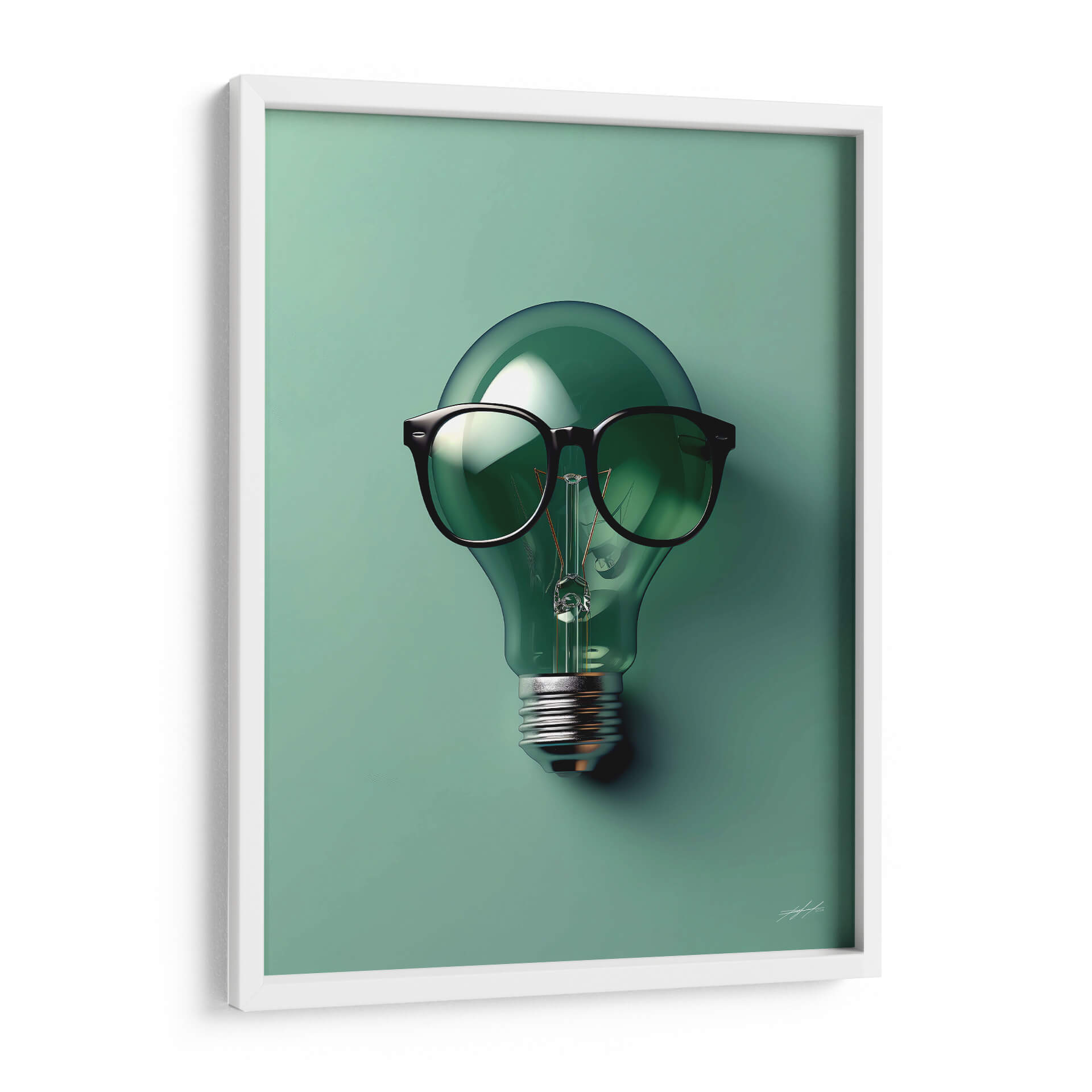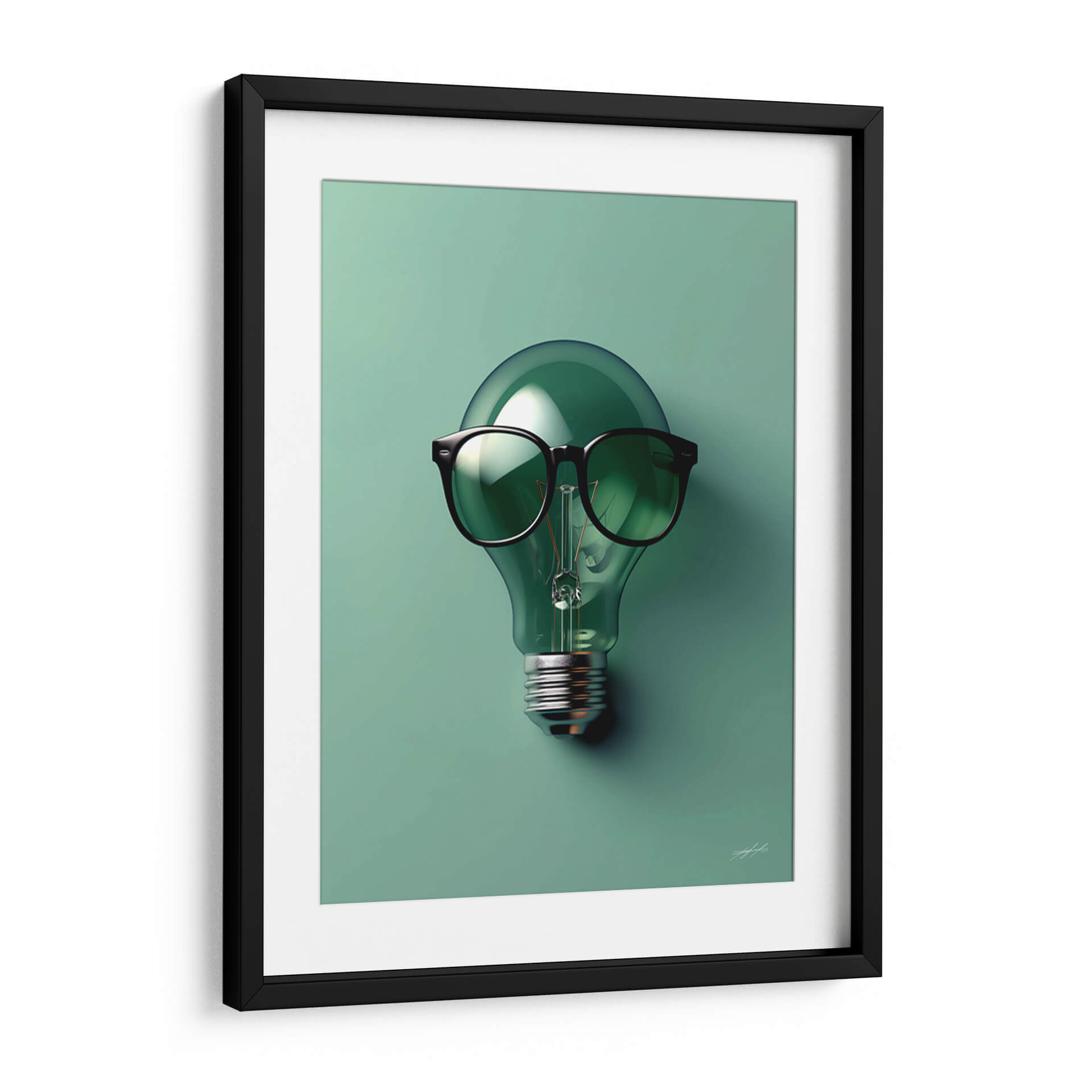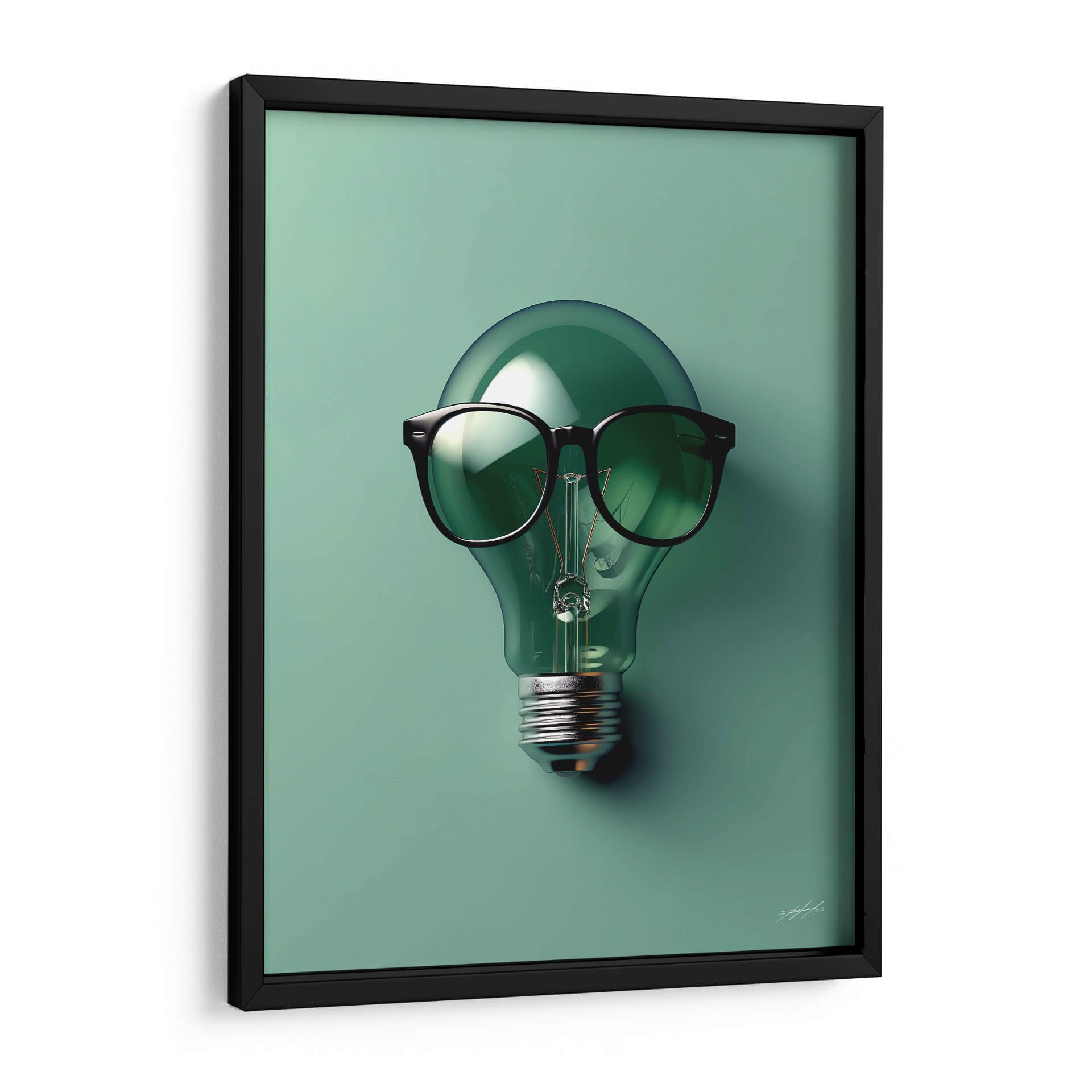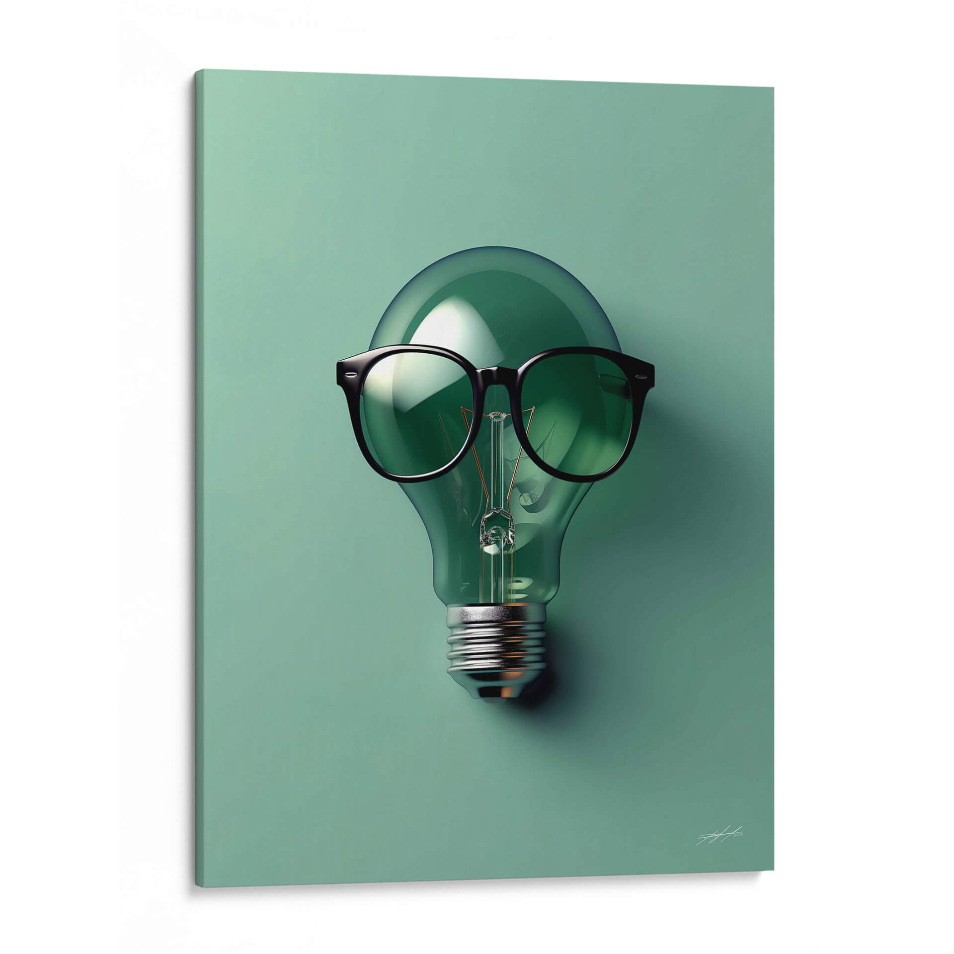Descubre 'Una Nueva Idea - 13', una obra de arte contemporáneo que captura la chispa de la inspiración con una estética moderna y audaz. Este cuadro decorativo presenta una bombilla de cristal de un llamativo color verde esmeralda, adornada con unas gafas de sol de montura negra que le otorgan un aire intrigante y cool. El fondo, de un suave tono verdoso empolvado, crea un contraste sutil pero efectivo, realzando la figura central. La composición minimalista, centrada en la bombilla, evoca el momento de una idea brillante a punto de manifestarse, un símbolo universal de creatividad e innovación. Es una pieza perfecta para despachos, estudios creativos o cualquier espacio que busque un toque de originalidad y pensamiento vanguardista. Añade un acento de color y un concepto poderoso a tu decoración con este cuadro que invita a la reflexión y estimula la imaginación.