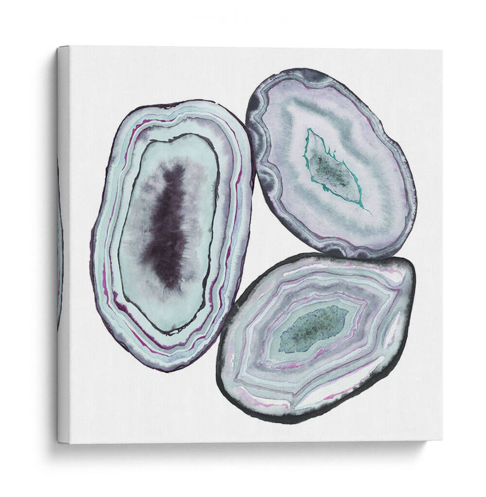 Transforma tu espacio con la belleza etérea de 'Geode Gems II', una cautivadora obra de arte de la artista Grace Popp. Este cuadro decorativo presenta una exploración fascinante de las formaciones geológicas, capturando la esencia de las gemas en cortes transversales con una delicadeza acuarela. La paleta de colores, dominada por serenos tonos de gris, lavanda y turquesa, evoca una sensación de calma y profundidad, mientras que las sutiles pinceladas añaden textura y dimensión. Las formas orgánicas y concéntricas de las geodas se disponen armoniosamente sobre un fondo blanco limpio, creando un punto focal sofisticado y contemporáneo. Ideal para quienes buscan añadir un toque de naturaleza refinada y serenidad a su hogar u oficina, este lienzo es perfecto para salas de estar, dormitorios o cualquier rincón que necesite una dosis de elegancia terrenal. 'Geode Gems II' no es solo una pieza decorativa, sino una invitación a la contemplación, aportando una atmósfera de tranquilidad y conexión con la Tierra.