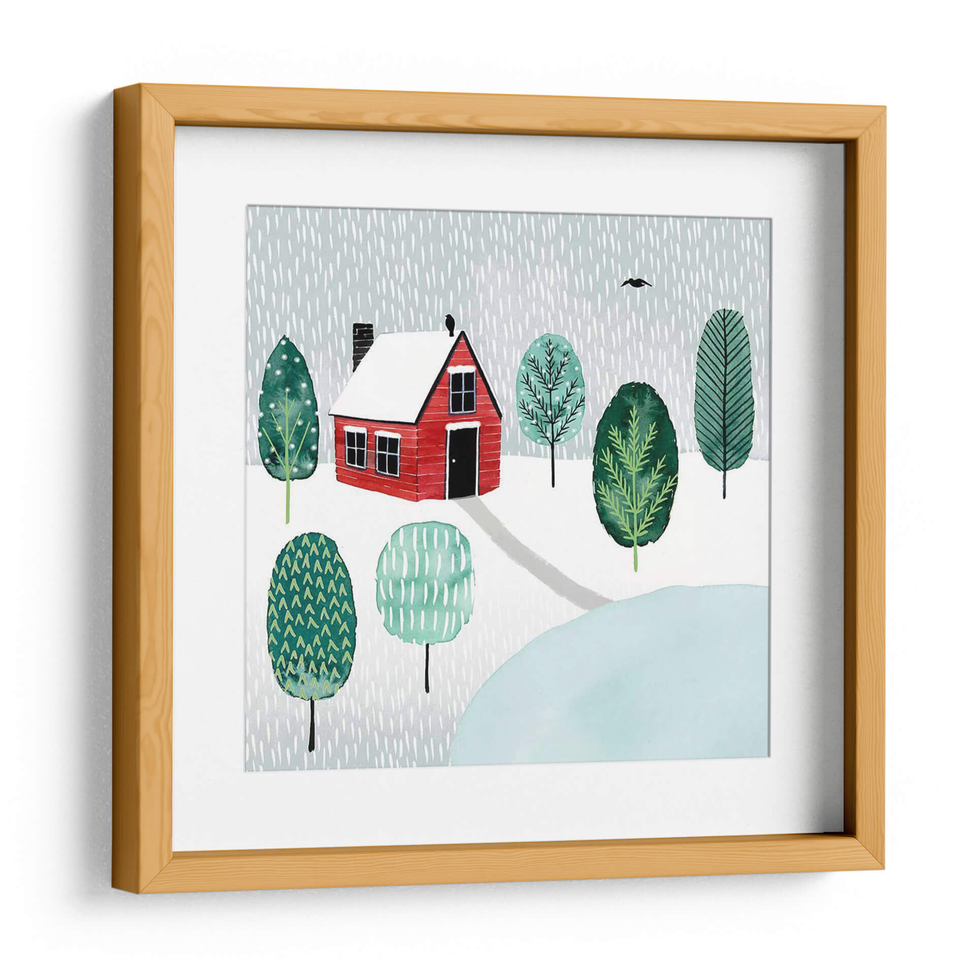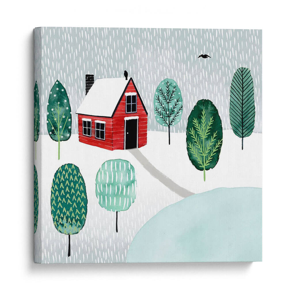 Sumérgete en la calidez invernal con "Christmostown I", una encantadora obra de arte de Grace Popp que captura la esencia de un refugio acogedor en medio de la nieve. Esta pieza presenta una pintoresca casa roja con un techo blanco cubierto de nieve, rodeada de árboles estilizados en vibrantes tonos verdes y menta. El fondo, con un patrón de guirnaldas blancas sobre un suave gris, evoca una sensación de calma y quietud invernal. La composición simple pero efectiva, junto con la paleta de colores contrastantes, hace que esta obra sea un punto focal atractivo para cualquier espacio. Ideal para quienes buscan añadir un toque de nostalgia y serenidad a su hogar, "Christmostown I" es perfecta para decorar salas de estar, dormitorios o incluso oficinas, creando una atmósfera acogedora y un recordatorio de la belleza tranquila del invierno. Su estilo artístico distintivo la convierte en una adición única a cualquier colección de arte decorativo de pared, aportando carácter y una narrativa visual sutil pero cautivadora. Descubre la magia de este cuadro decorativo y transforma tu ambiente.