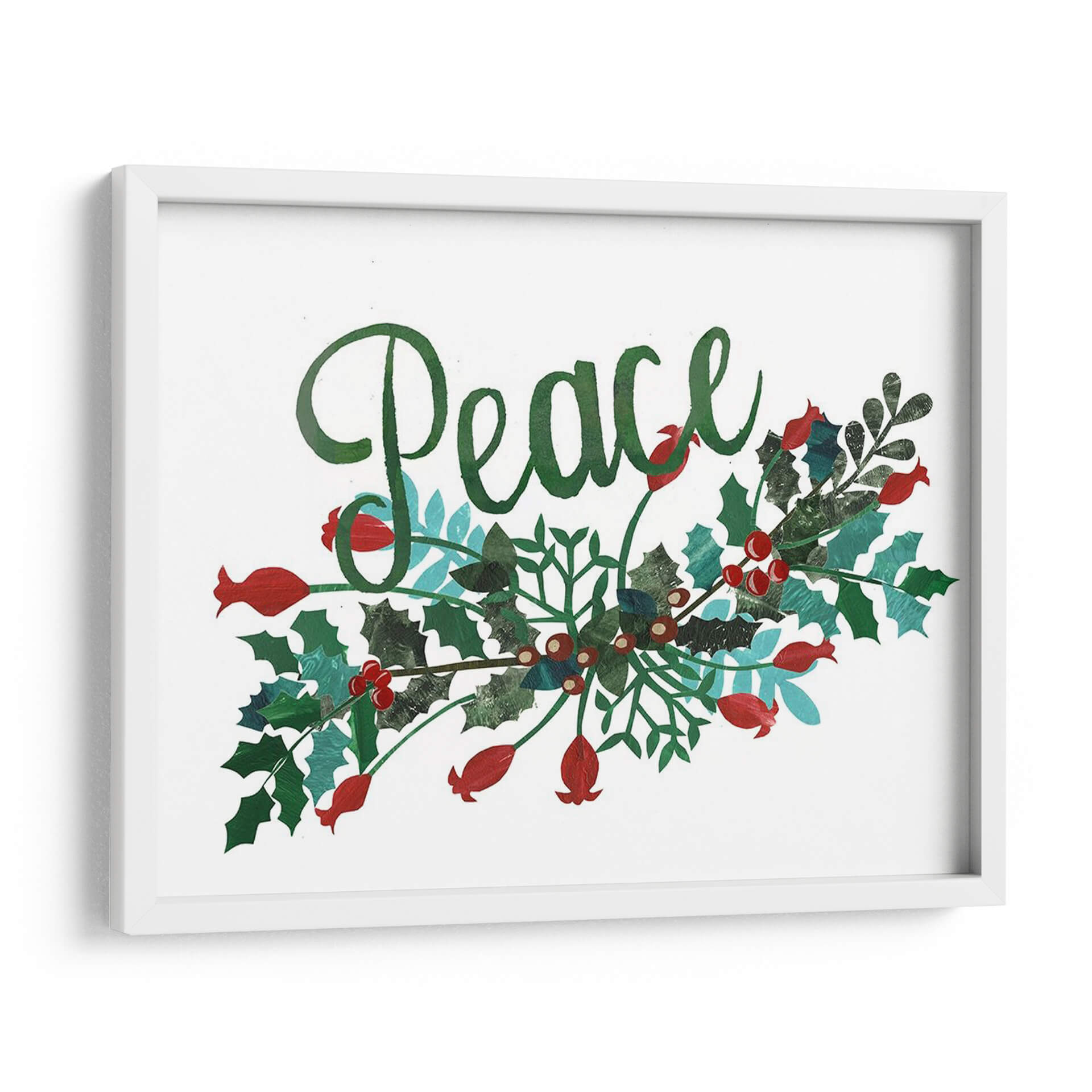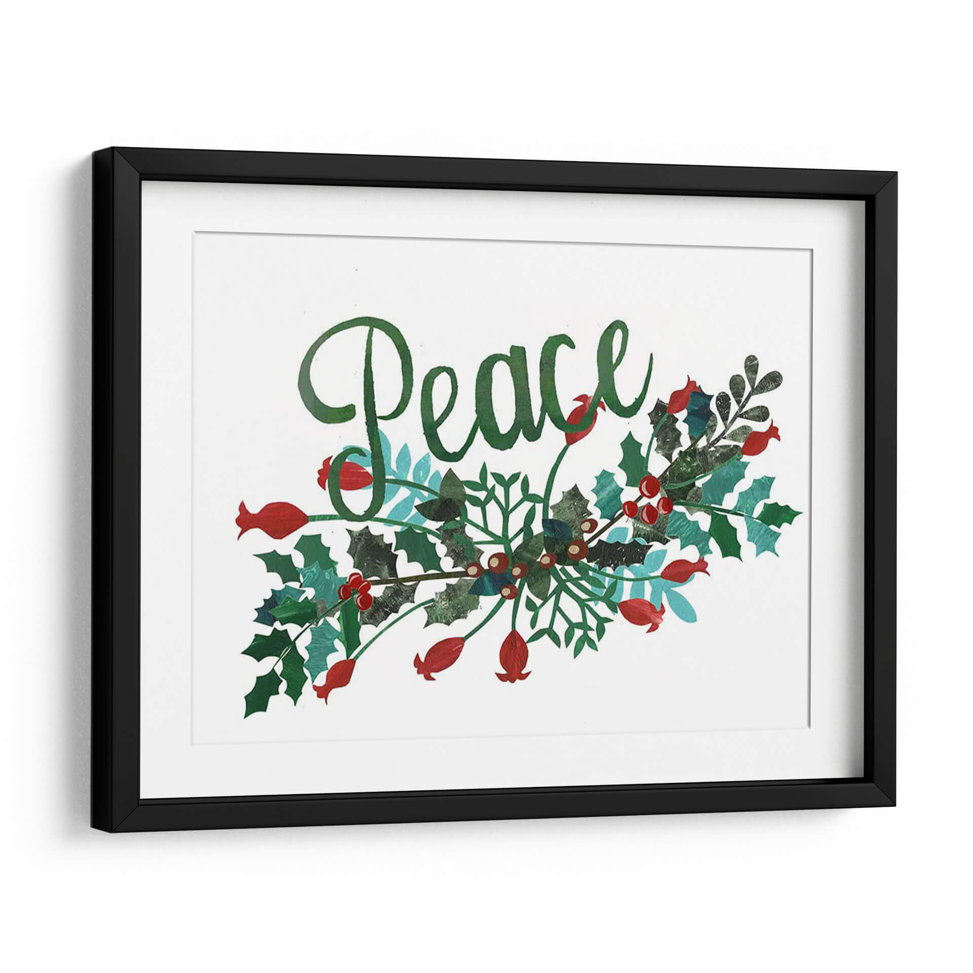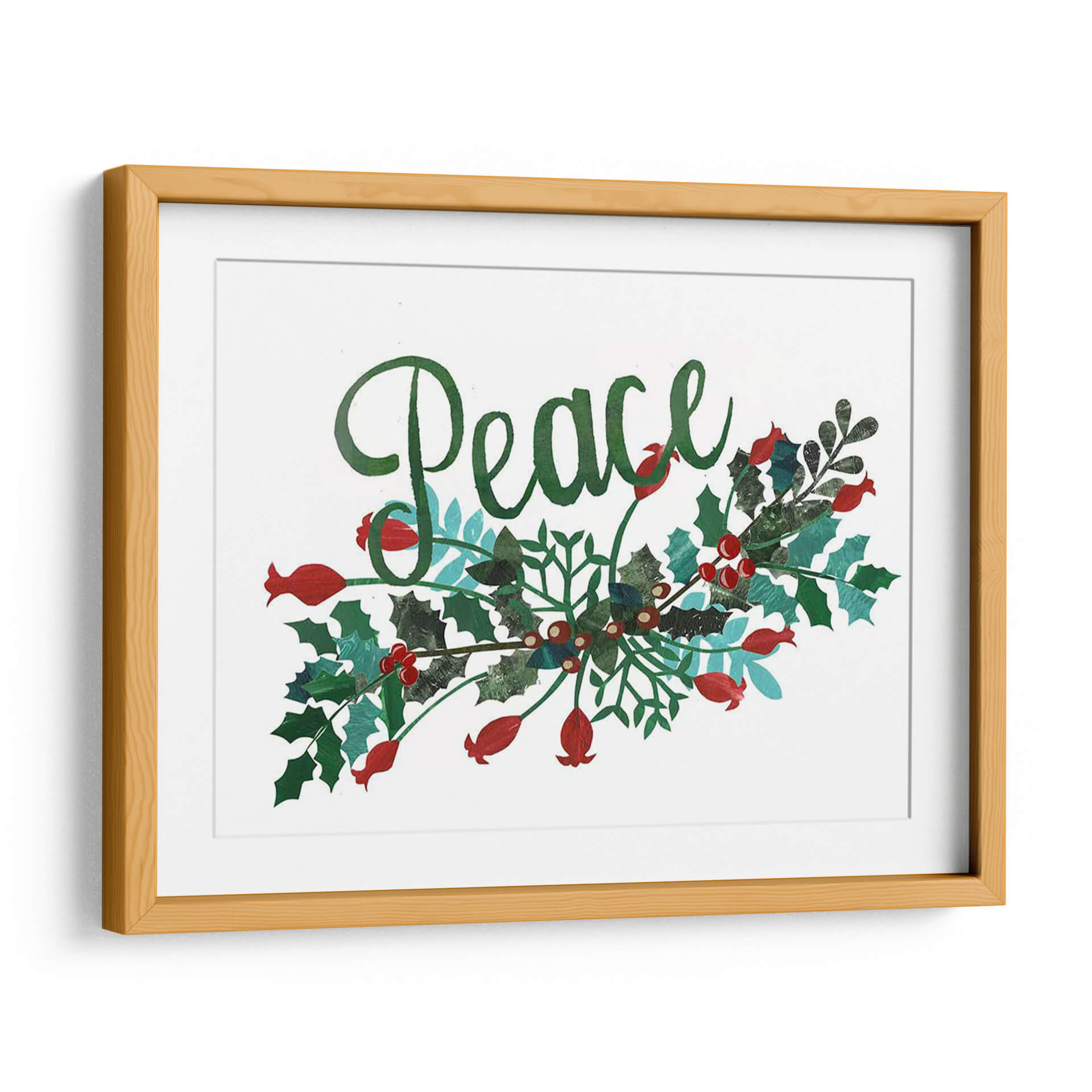 Aporta un toque de serenidad y celebración festiva a tu hogar con este encantador cuadro decorativo "Corta Corona De Navidad II", una obra de la talentosa artista Regina Moore. La pieza presenta la palabra "Peace" escrita en una elegante tipografía verde, rodeada por una exuberante guirnalda de elementos navideños. Las hojas de acebo de un verde intenso se entrelazan con vibrantes bayas rojas y delicadas flores o brotes en tonos carmesí y turquesa, creando una composición armoniosa y alegre. La paleta de colores, dominada por verdes profundos, rojos vivos y toques de azul claro sobre un fondo blanco nítido, evoca la frescura del invierno y la calidez de las fiestas. El estilo, que combina elementos de caligrafía y collage, le confiere una textura visual atractiva y un aire contemporáneo. Este cuadro es ideal para dar la bienvenida a la temporada navideña en tu sala de estar, comedor o entrada, o para añadir un mensaje positivo y decorativo a cualquier espacio durante todo el año. Su diseño versátil lo hace perfecto para hogares con un estilo rústico, moderno o tradicional, convirtiéndose en un punto focal que inspira tranquilidad y espíritu festivo.