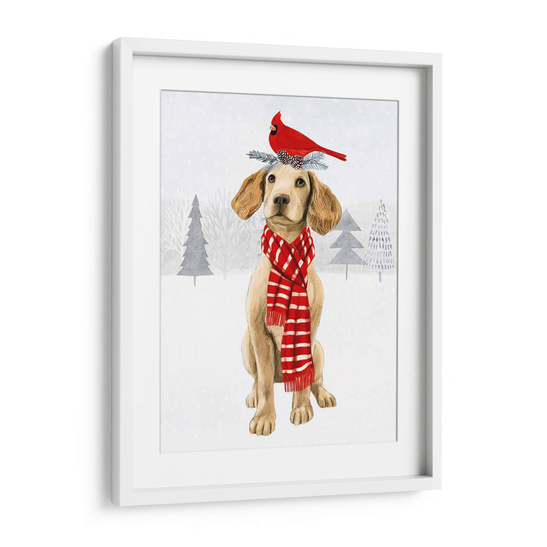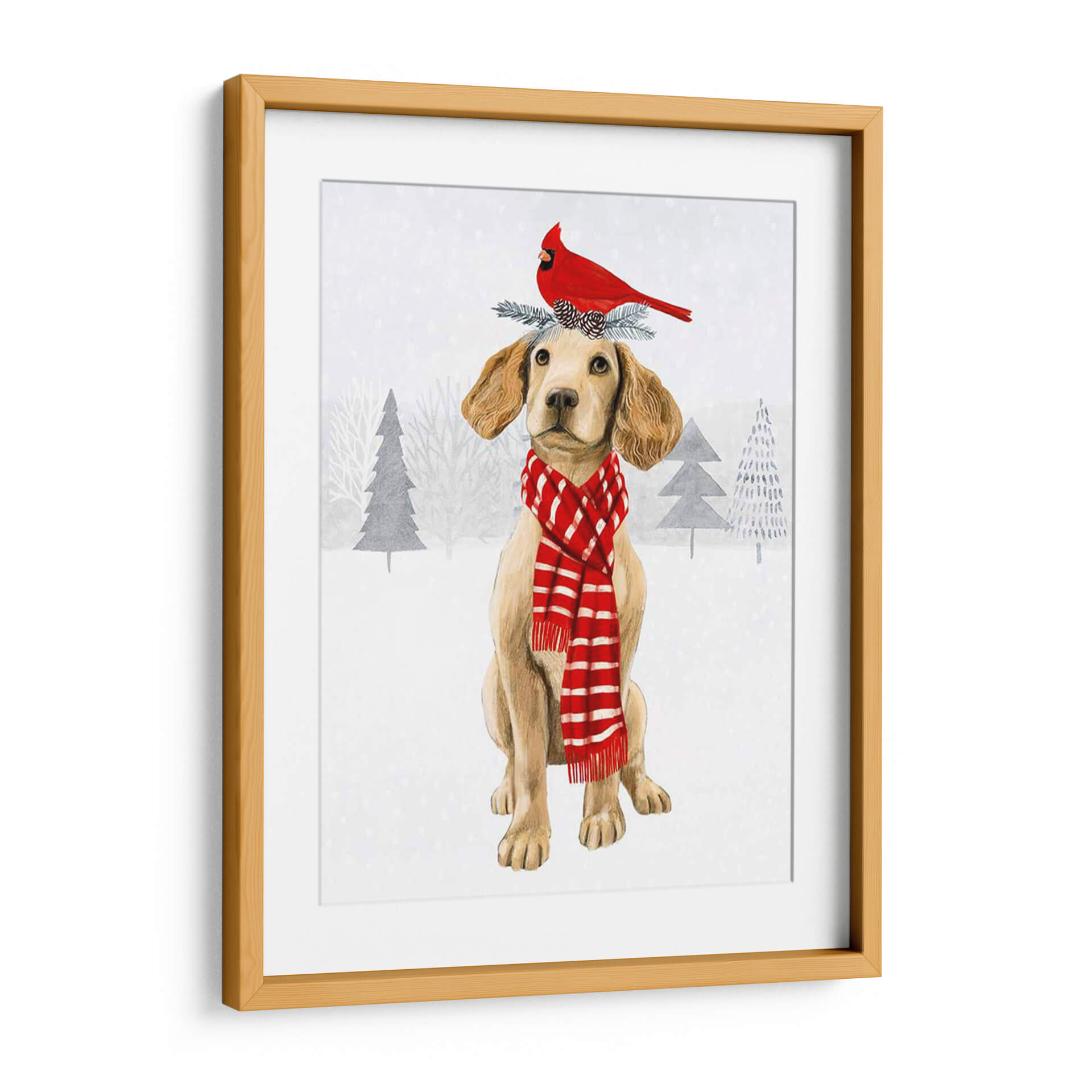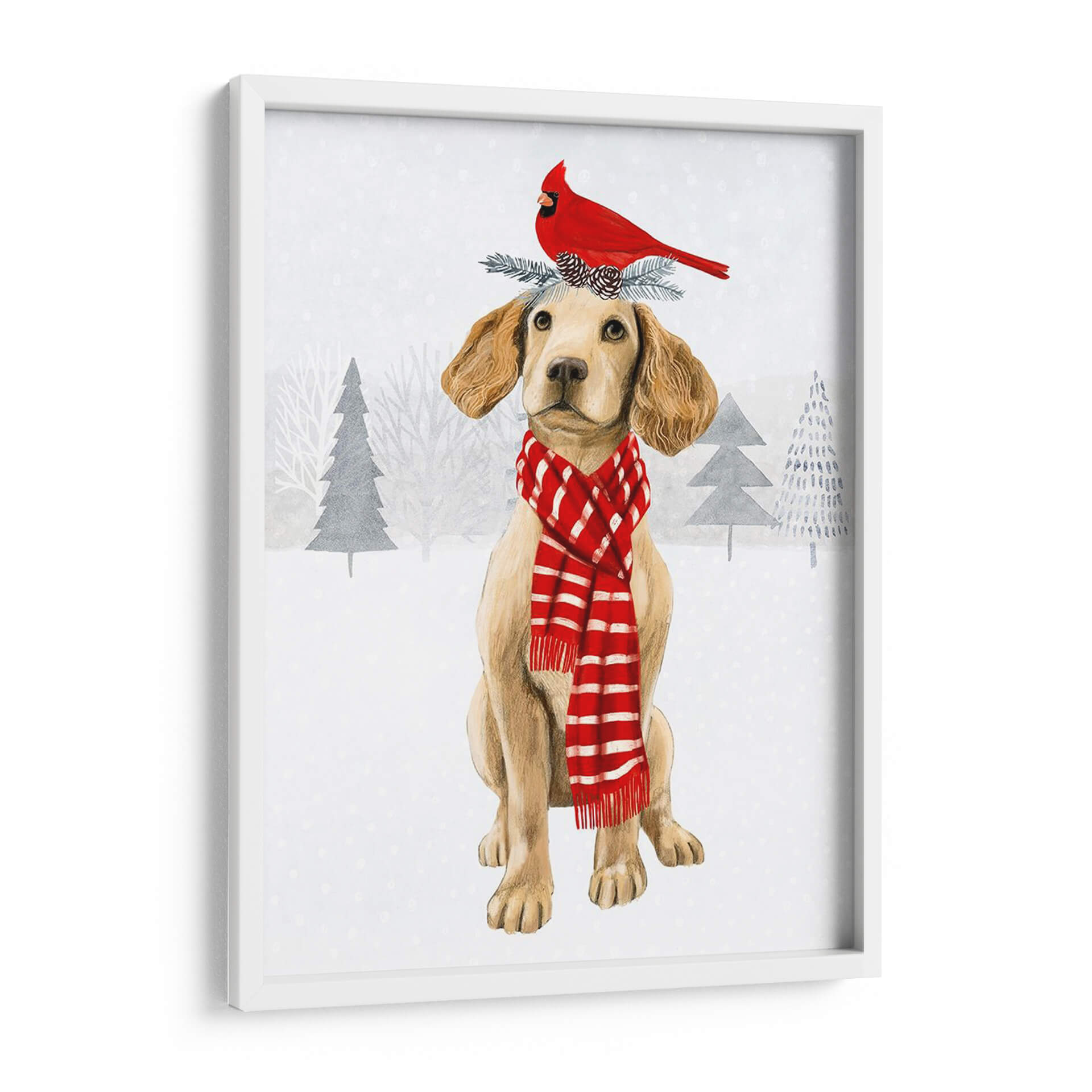Este encantador cuadro decorativo de Victoria Borges captura la dulzura de la temporada navideña con una adorable representación de un perro ataviado con una bufanda a rayas rojas y blancas y adornado con un petirrojo posado en una guirnalda de ramas y piñas sobre su cabeza. La escena se desarrolla en un entorno invernal sereno, con árboles estilizados en tonos grises y una sutil nevada que envuelve la composición, creando una atmósfera acogedora y festiva. La paleta de colores, dominada por el cálido tono del pelaje del perro, el vibrante rojo del petirrojo y los contrastantes tonos grises y blancos del paisaje, evoca sentimientos de alegría, calidez y nostalgia navideña. El estilo realista pero con un toque tierno de la obra la hace perfecta para añadir un toque de espíritu festivo a cualquier hogar u oficina. Este cuadro decorativo es ideal para salas de estar, dormitorios o incluso como un detalle especial en espacios de trabajo, aportando un aire de inocencia y celebración. Su diseño único lo convierte en una pieza central que sin duda atraerá miradas y generará conversaciones, celebrando la amistad entre animales y la magia de la Navidad.