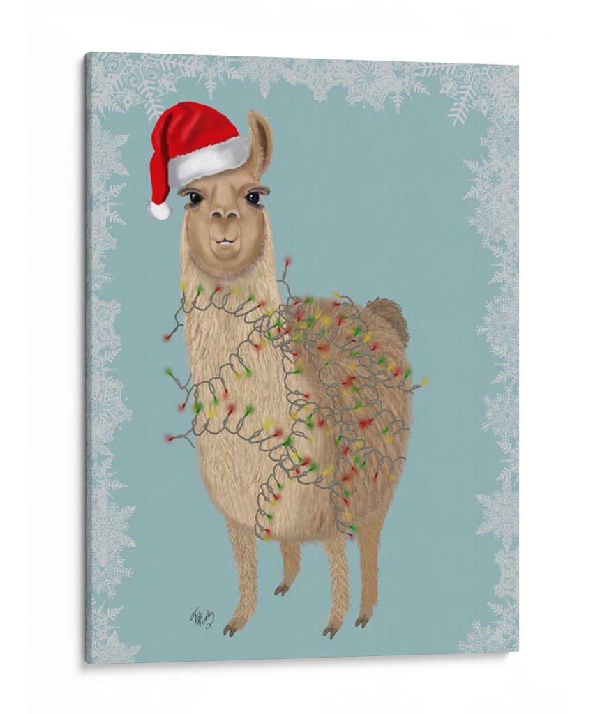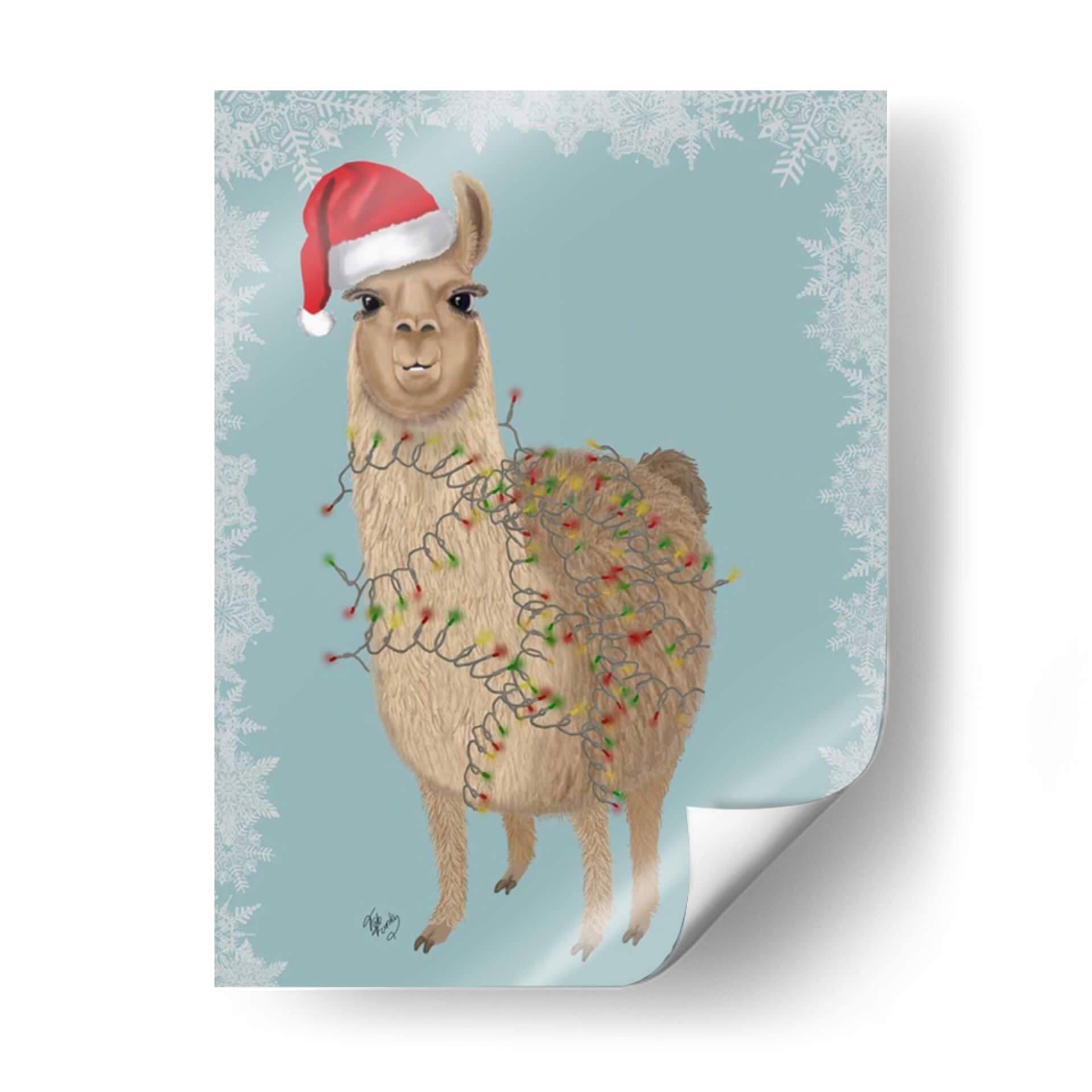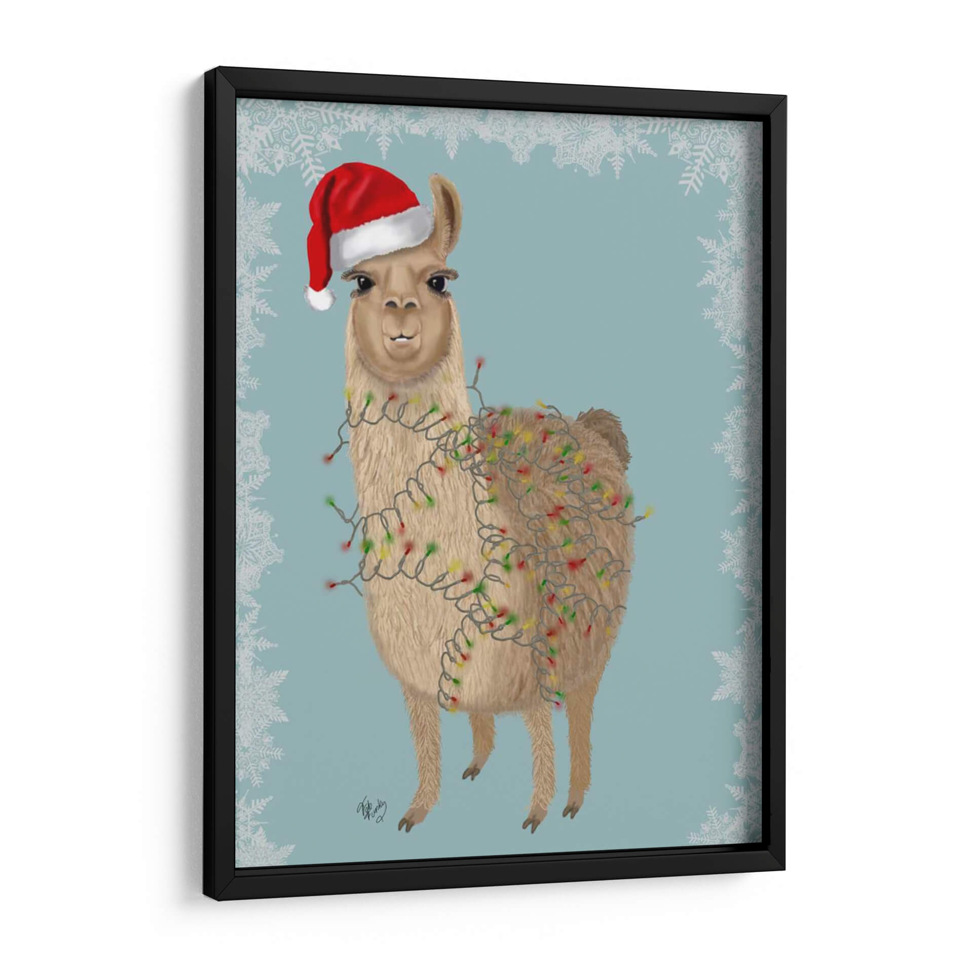 Celebra la temporada navideña con este encantador cuadro decorativo de una llama adornada con luces festivas. La obra, titulada "Llama, Luces De Navidad 2" del artista Fab Funky, captura la alegría y el espíritu juguetón de las fiestas a través de una representación adorable y colorida. La llama, con su característico gorro de Santa Claus y envuelta en una guirnalda de luces navideñas parpadeantes, se presenta sobre un fondo azul cielo sereno, enmarcado por delicados copos de nieve blancos que evocan la magia invernal. Los colores vibrantes de las luces contrastan maravillosamente con el pelaje cálido de la llama y el suave tono del fondo, creando una composición visualmente atractiva y llena de carácter. Este cuadro decorativo es perfecto para añadir un toque de humor y calidez a cualquier espacio durante la temporada decembrina. Ideal para salones, dormitorios o incluso oficinas, esta pieza infunde una atmósfera de celebración y optimismo. Su estilo único y el tema festivo lo convierten en una adición memorable a tu decoración navideña o como un regalo original para los amantes de las llamas y las fiestas.