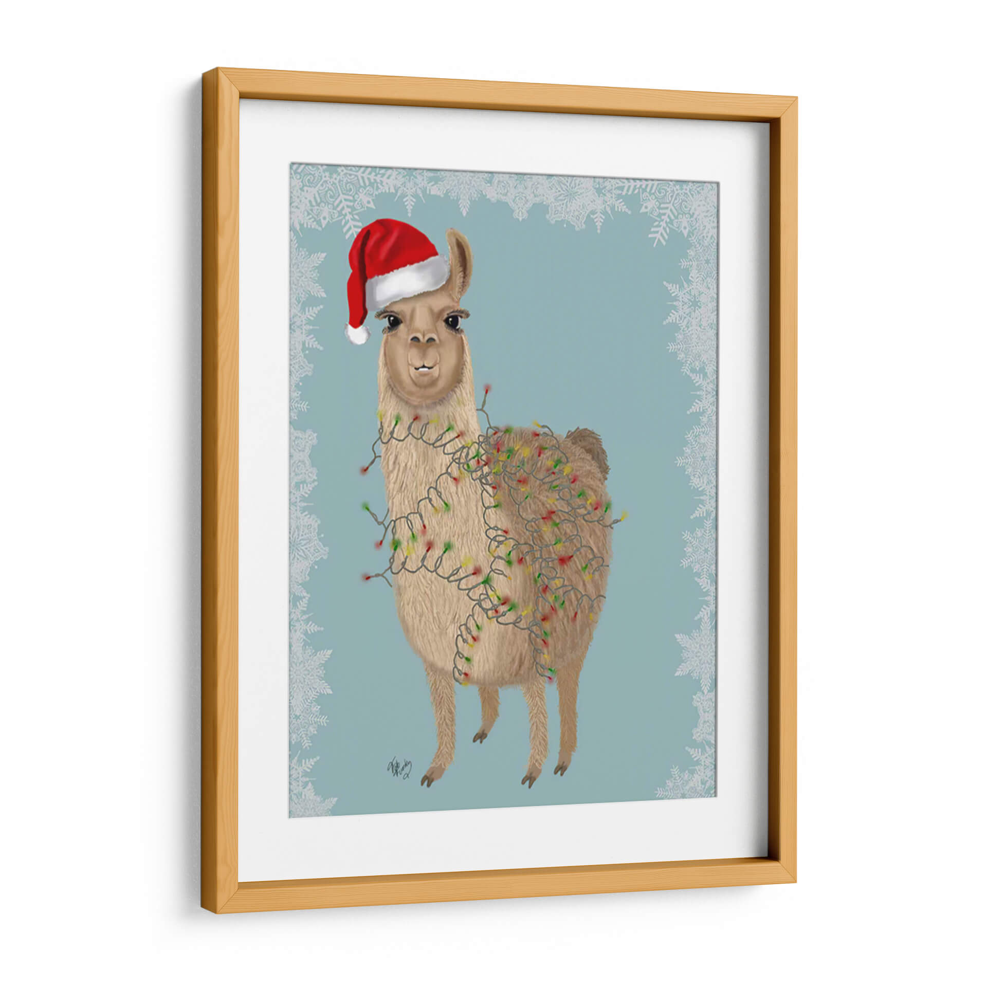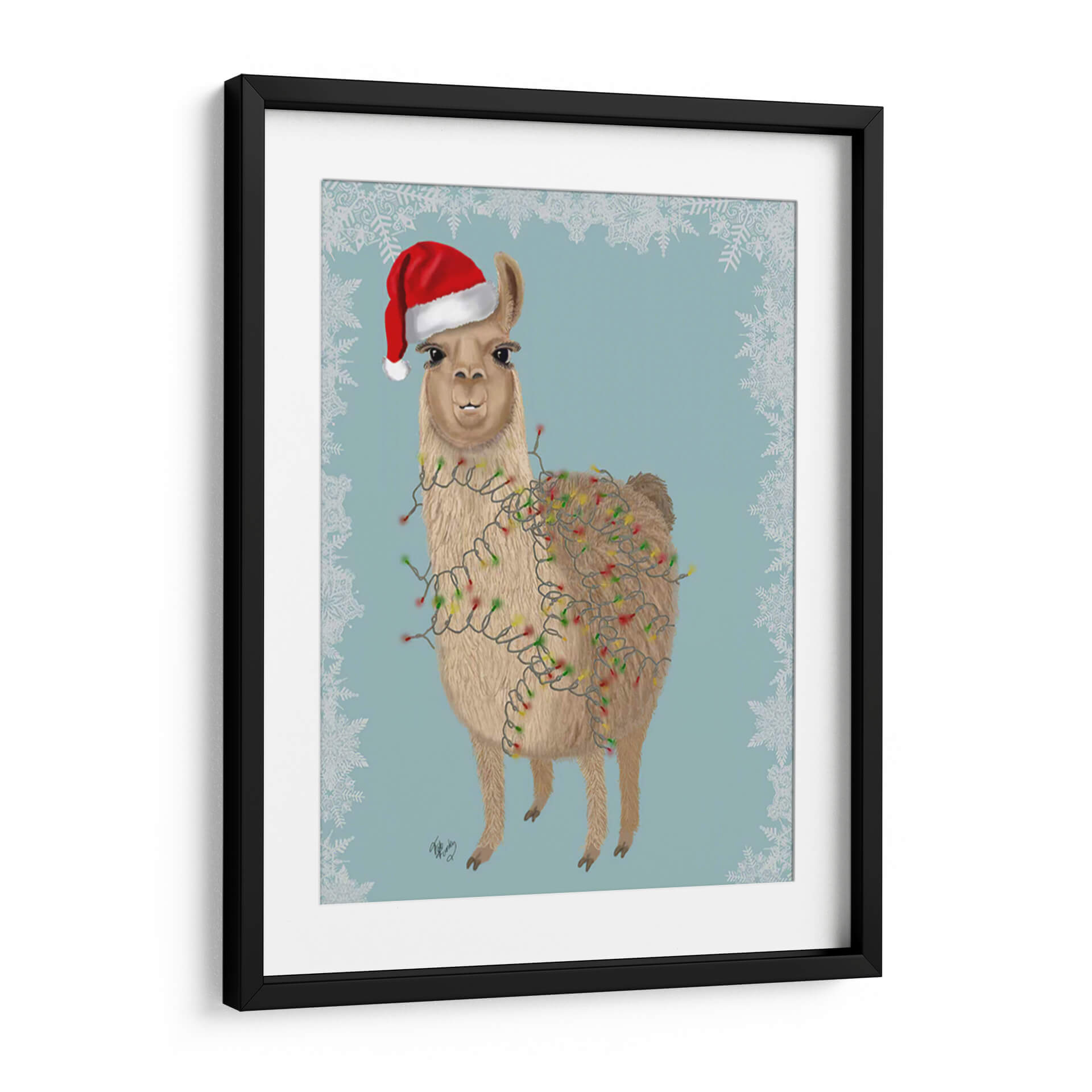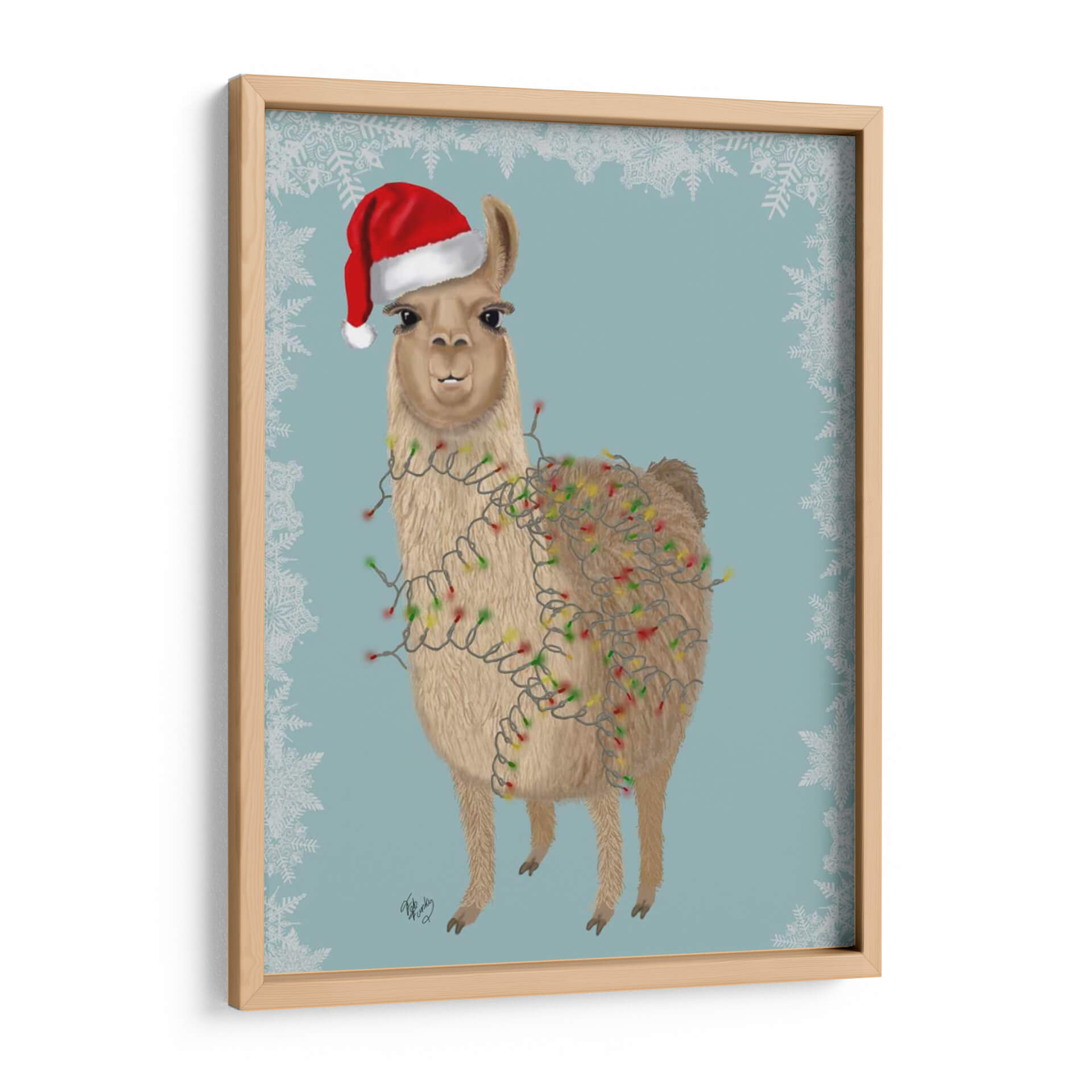 Celebra la temporada navideña con este encantador cuadro decorativo de una llama adornada con luces festivas. La obra, titulada "Llama, Luces De Navidad 2" del artista Fab Funky, captura la alegría y el espíritu juguetón de las fiestas a través de una representación adorable y colorida. La llama, con su característico gorro de Santa Claus y envuelta en una guirnalda de luces navideñas parpadeantes, se presenta sobre un fondo azul cielo sereno, enmarcado por delicados copos de nieve blancos que evocan la magia invernal. Los colores vibrantes de las luces contrastan maravillosamente con el pelaje cálido de la llama y el suave tono del fondo, creando una composición visualmente atractiva y llena de carácter. Este cuadro decorativo es perfecto para añadir un toque de humor y calidez a cualquier espacio durante la temporada decembrina. Ideal para salones, dormitorios o incluso oficinas, esta pieza infunde una atmósfera de celebración y optimismo. Su estilo único y el tema festivo lo convierten en una adición memorable a tu decoración navideña o como un regalo original para los amantes de las llamas y las fiestas.
