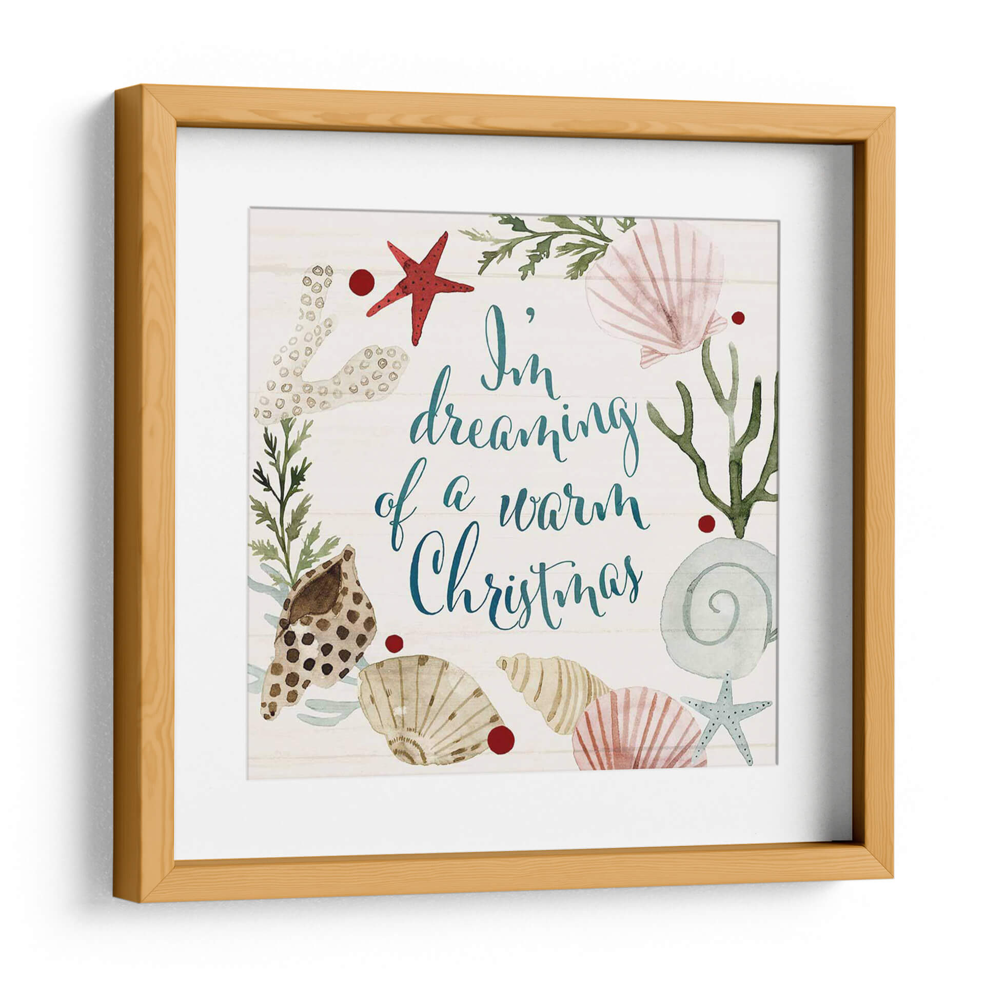 Celebra la temporada festiva con un toque costero y cálido gracias a nuestro cuadro decorativo "Navidad Besada Por El Sol Vi". Esta encantadora obra de arte, creada por Susan Savory, captura la esencia de unas vacaciones navideñas tropicales y soleadas. La composición presenta una delicada acuarela de elementos marinos como conchas, estrellas de mar y algas, enmarcadas sobre un fondo de tablones de madera clara que evoca la serenidad de la playa. La paleta de colores, con suaves tonos pastel de rosa, beige y azul verdoso, junto con vibrantes acentos rojos, crea una atmósfera acogedora y festiva, perfecta para quienes sueñan con una Navidad lejos del frío. La caligrafía artística en azul turquesa, que reza "I'm dreaming of a warm Christmas", añade un toque personal y emotivo. Este cuadro decorativo es ideal para añadir un aire de alegría y originalidad a cualquier estancia, desde una sala de estar moderna hasta un dormitorio o una cocina temática. Transforma tu hogar en un refugio de paz y celebración con esta pieza única que fusiona la magia navideña con la belleza del océano.