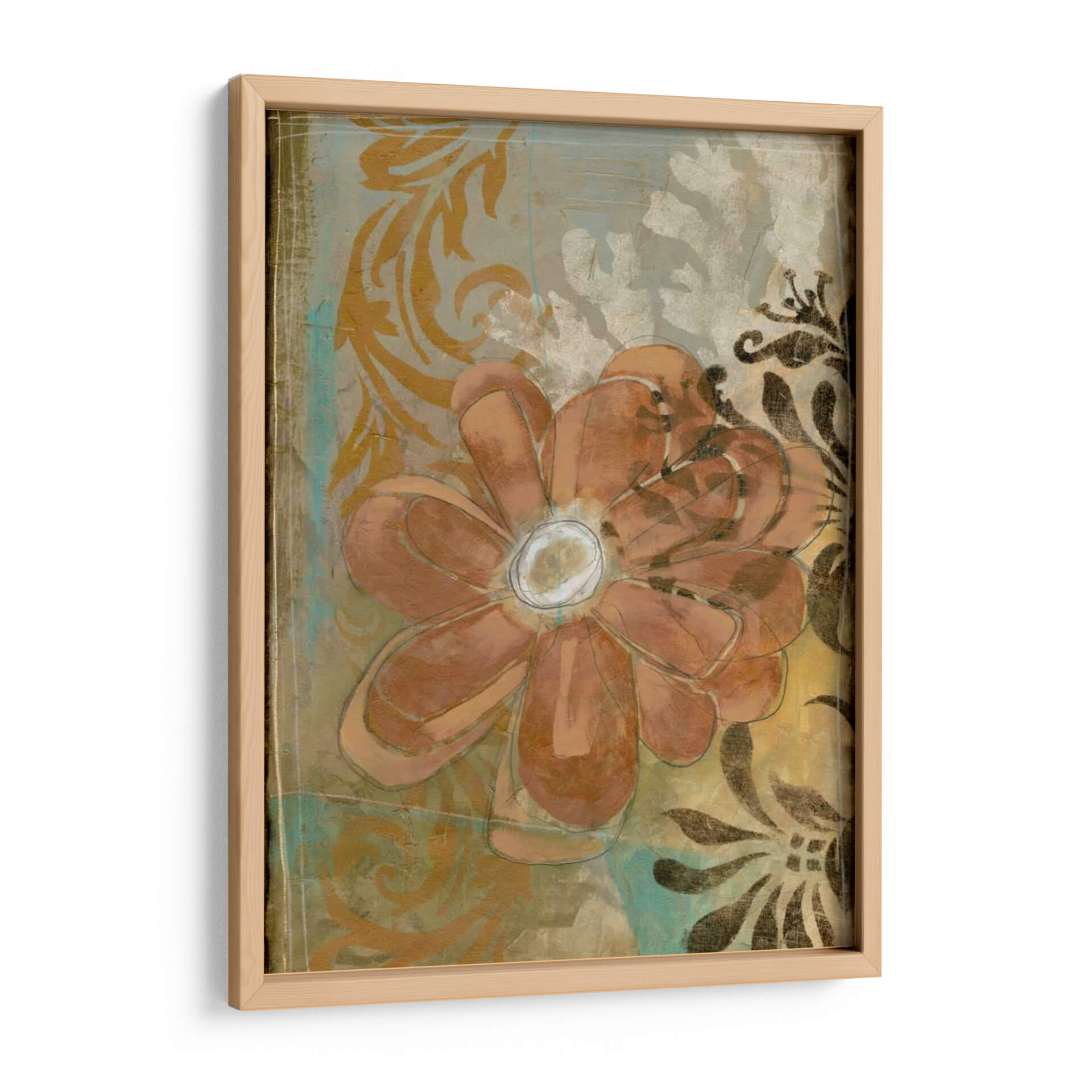 Transforma tu espacio con la cautivadora obra "Abstracción Floral I" de Jennifer Goldberger. Esta pieza explora la belleza etérea de la naturaleza a través de un lente abstracto, presentando una flor central en tonos terracota y naranjas cálidos, rodeada de delicados motivos ornamentales en dorados y turquesas sutiles. La textura rica y la composición evocan una sensación de profundidad y movimiento, como si la flor estuviera floreciendo ante tus ojos. Los trazos sueltos y el uso magistral del color crean una atmósfera de tranquilidad y elegancia. Ideal para añadir un toque de sofisticación natural a tu sala de estar, dormitorio o estudio, este cuadro decorativo se adapta perfectamente a interiores contemporáneos y clásicos. Su diseño versátil y sus colores armoniosos lo convierten en el punto focal perfecto para cualquier habitación, invitando a la contemplación y aportando una dosis de arte inspirador a tu vida diaria. Añade esta pieza única a tu colección y experimenta la fusión de arte y decoración.