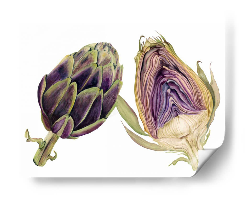 Embellece tu hogar con el encanto natural de "Acuarela Alcachofa", una obra maestra de Michael Willett que captura la belleza intrínseca de esta verdura en un vibrante estilo de acuarela. Este cuadro decorativo presenta una alcachofa entera en tonos púrpura intensos y verdes terrosos, junto a su contraparte cortada, revelando las delicadas capas interiores y matices violáceos y crema. La técnica de acuarela aporta una ligereza y transparencia únicas, resaltando la textura detallada y la forma escultural de la alcachofa. Los colores son ricos y evocadores, creando una atmósfera de frescura y vitalidad que puede transformar cualquier espacio. Ideal para cocinas, comedores o cualquier área donde se desee añadir un toque de color orgánico y sofisticación, esta pieza invita a la contemplación de la naturaleza y la gastronomía. "Acuarela Alcachofa" es más que una simple decoración de pared; es una celebración de la forma, el color y la esencia de uno de los productos más fascinantes de la tierra, aportando un aire de elegancia rústica y contemporánea a tu decoración.