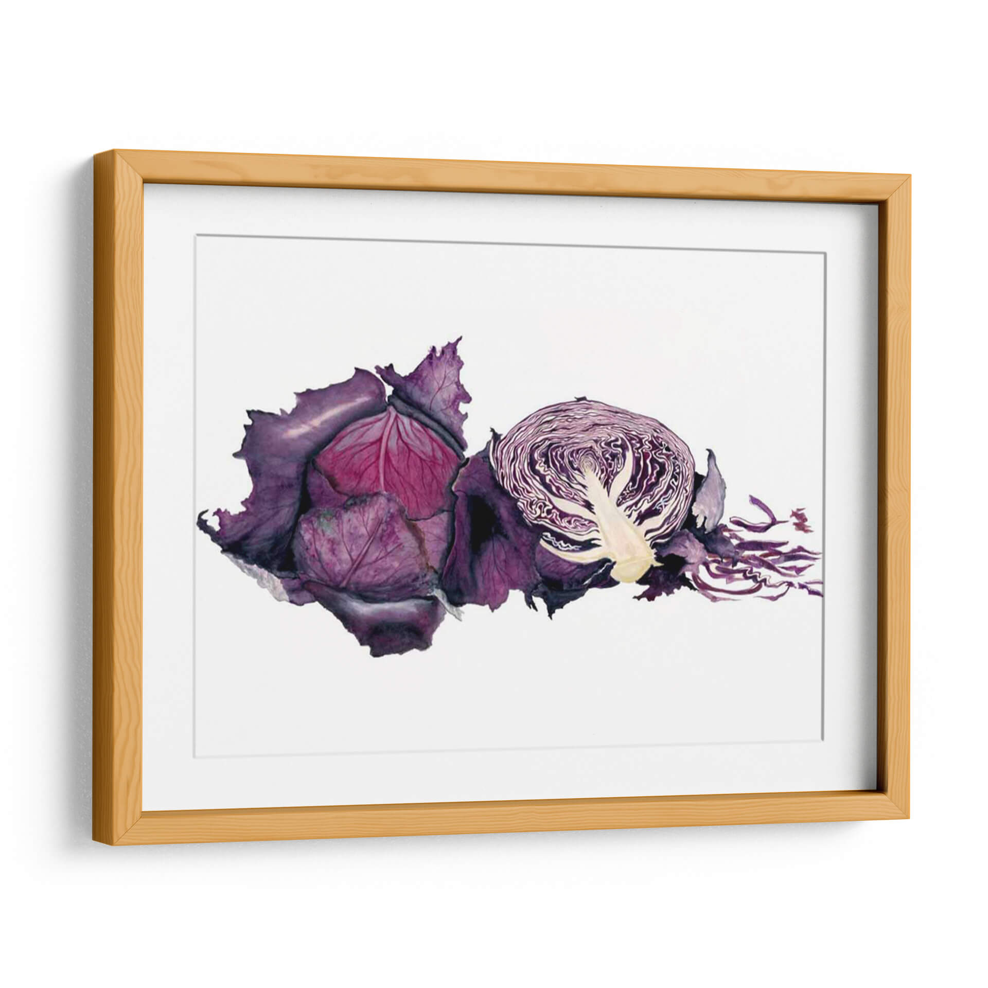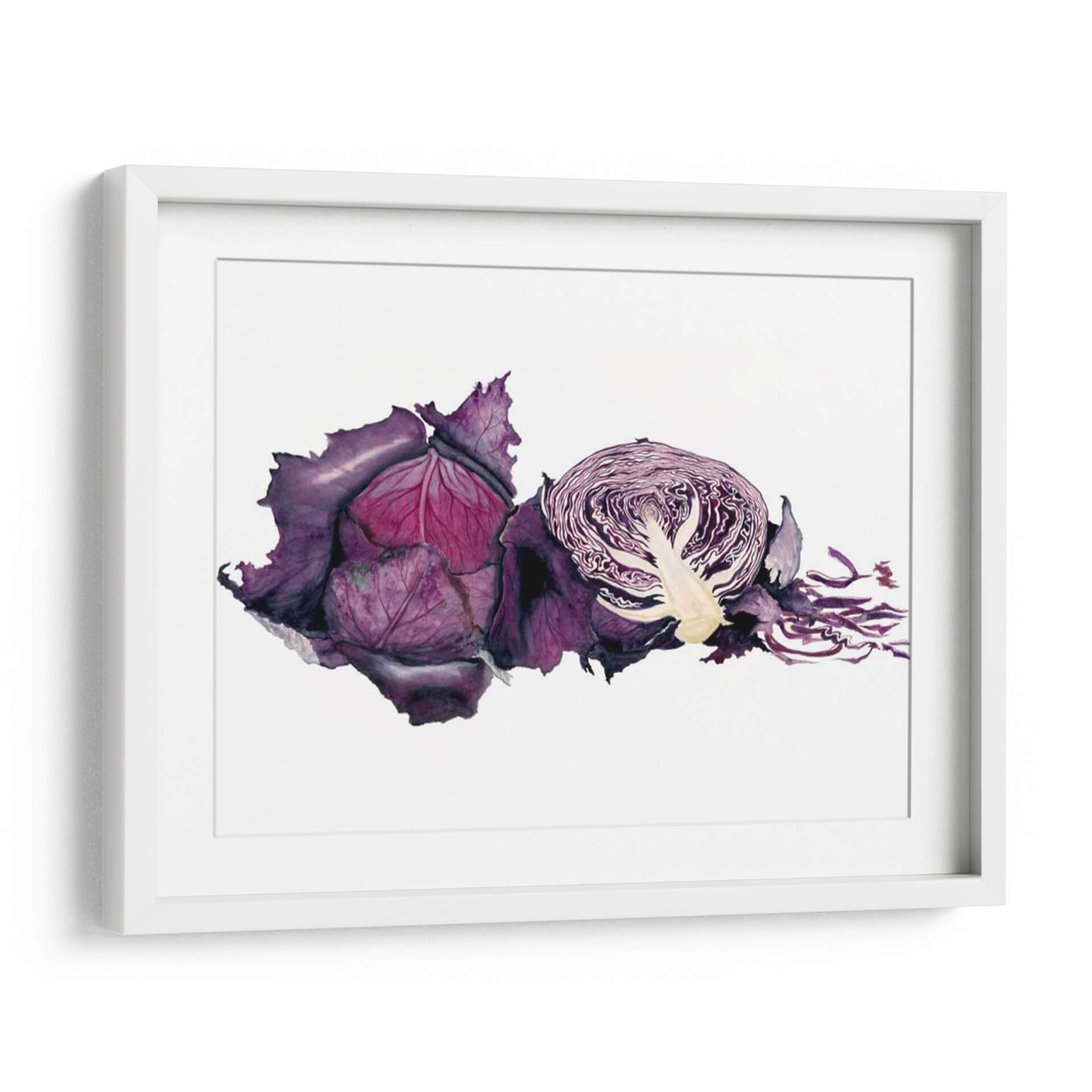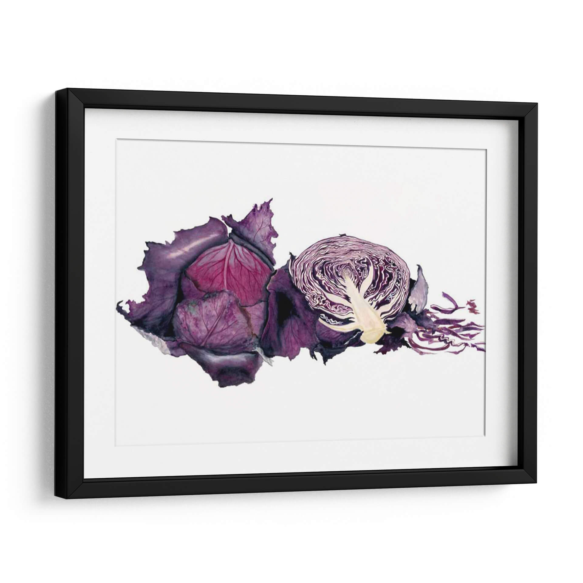Sumérgete en la vibrante y detallada representación de "Acuarela Col Púrpura" de Michael Willett, una obra de arte que captura la esencia botánica con una delicadeza excepcional. Este cuadro decorativo, realizado con la técnica de acuarela, resalta las profundidades del color púrpura, desde los tonos más oscuros y aterciopelados de las hojas exteriores hasta los matices rosados y violáceos del interior. La composición presenta una col morada entera y otra cortada por la mitad, revelando la intrincada estructura de sus capas y el contraste de texturas. La frescura y la vitalidad de la verdura se transmiten a través de pinceladas fluidas y un juego de luces y sombras que le otorgan realismo y profundidad. Perfecta para añadir un toque de color y naturaleza a tu cocina, comedor o cualquier espacio que busque inspiración culinaria y estética. Este cuadro es ideal para quienes aprecian el arte contemporáneo con motivos orgánicos, aportando un elemento de sofisticación y un guiño a la abundancia de la naturaleza. Su estilo realista con toques expresivos lo convierte en una pieza versátil para diversos estilos decorativos, desde el rústico hasta el moderno.