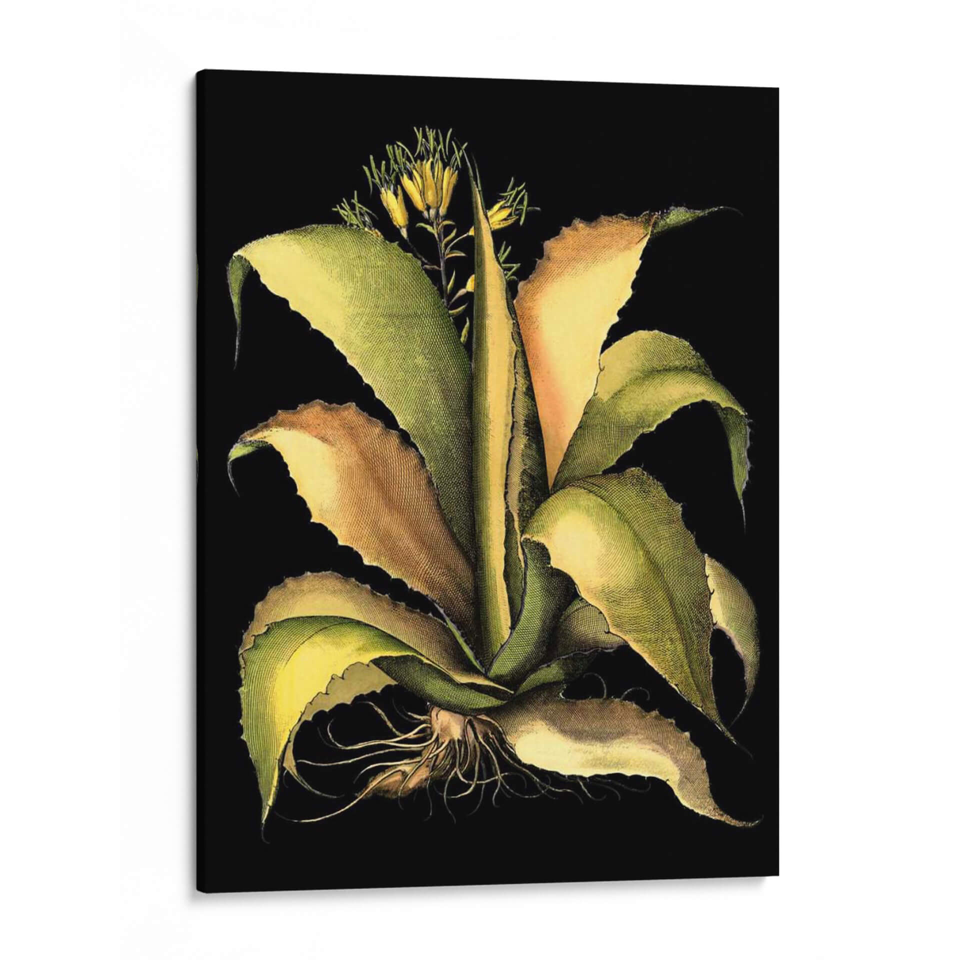 Sumérgete en la exuberante belleza botánica con "Aloe Dramática II", una obra de arte digital que captura la majestuosidad de una planta de aloe en su máxima expresión. Esta pieza, inspirada en las ilustraciones científicas clásicas, presenta detalles intrincados de las hojas suculentas, las raíces expuestas y las delicadas flores amarillas que emergen con elegancia. La rica paleta de verdes vibrantes, ocres cálidos y amarillos intensos, contrastando dramáticamente con el fondo negro profundo, crea un efecto visual impactante y sofisticado. "Aloe Dramática II" es más que una simple representación de flora; es una invitación a apreciar la complejidad y la fuerza de la naturaleza. Su estilo detallado y ligeramente vintage aporta un toque de elegancia atemporal a cualquier espacio, convirtiéndolo en el cuadro decorativo perfecto para salones modernos, estudios botánicos o cualquier rincón que busque un punto focal orgánico y lleno de vida. Ideal para los amantes de la botánica, el arte clásico y la decoración que evoca serenidad y admiración por el mundo natural. Añade una dosis de naturaleza estilizada y un toque de historia a tu hogar u oficina con este impresionante cuadro decorativo.