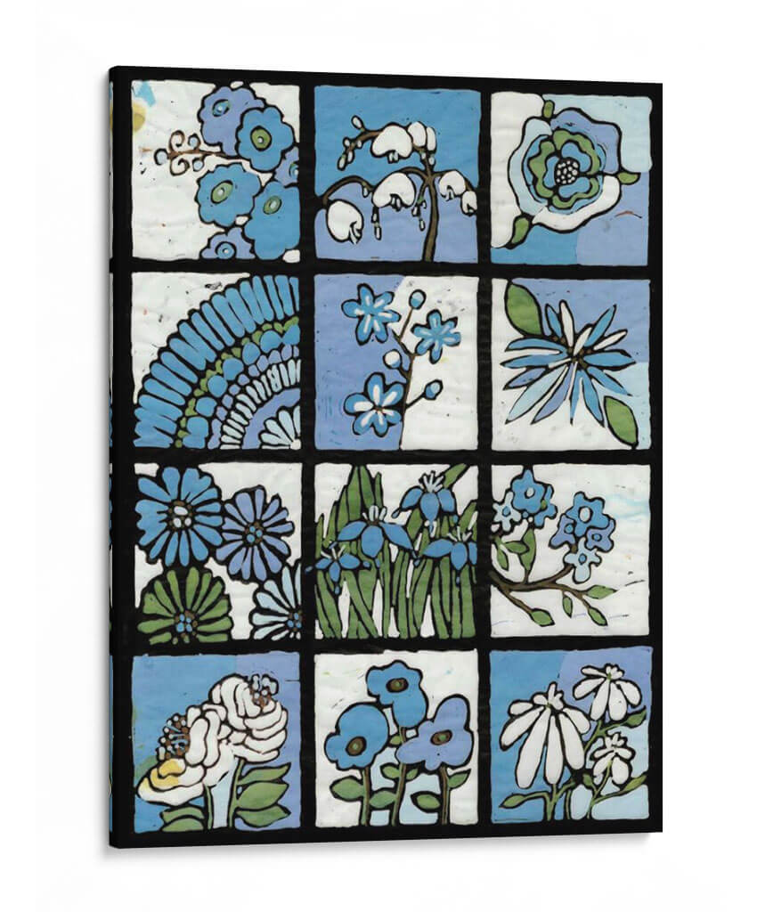 Este cautivador cuadro decorativo, "Asure Botanical I 12-Patch" de Andrea Davis, te transporta a un jardín botánico estilizado a través de una cuadrícula de 12 paneles. Cada viñeta presenta delicadas representaciones florales en una paleta de azules vibrantes, verdes frescos y toques de blanco y amarillo, evocando una sensación de frescura y serenidad. El estilo artístico, con sus líneas definidas y toques de texturas sutiles, combina elementos del arte folk y el diseño botánico para crear una pieza única y encantadora. La composición modular de la obra la hace versátil, permitiendo que cada panel actúe como una pequeña obra de arte individual o como parte de un todo armonioso. Ideal para añadir un toque de naturaleza y color a cualquier espacio, desde una sala de estar moderna hasta un dormitorio tranquilo u oficina, este cuadro decorativo es una celebración de la belleza botánica. Transmite una atmósfera de calma y optimismo, perfecta para quienes buscan infundir alegría y vitalidad en su decoración. Descubre la elegancia atemporal de la naturaleza a través de esta obra maestra contemporánea que seguro será un punto de conversación.