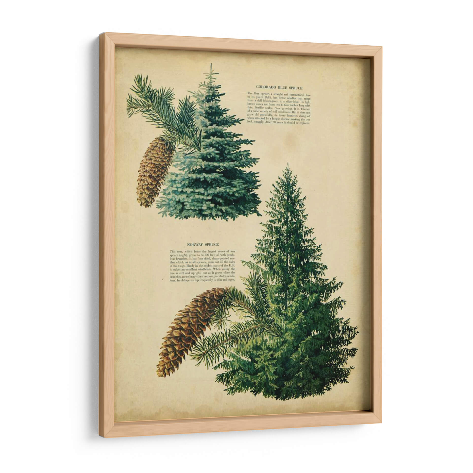 Adéntrate en la majestuosidad de la naturaleza con este exquisito cuadro decorativo que captura la esencia del Colorado Blue Spruce y el Norway Spruce. La obra presenta una detallada ilustración botánica de dos imponentes abetos, uno con un distintivo tono azulado plateado y el otro de un verde profundo y exuberante. Grandes piñas cuelgan de sus ramas, añadiendo un toque de realismo y escala a la composición. Los tonos verdes y azules, combinados con el fondo de aspecto envejecido, crean una atmósfera nostálgica y serena, remitiendo a los grabados clásicos de historia natural. Este cuadro es ideal para añadir un toque de elegancia rústica a cualquier espacio, desde una acogedora sala de estar o un estudio hasta una oficina que busque evocar tranquilidad y conexión con la naturaleza. Su estilo clásico y su detallada ejecución lo convierten en una pieza versátil, perfecta para complementar decoraciones rústicas, vintage o incluso modernas que busquen un punto de interés orgánico y sofisticado. Transforma tu pared en un lienzo de la naturaleza.