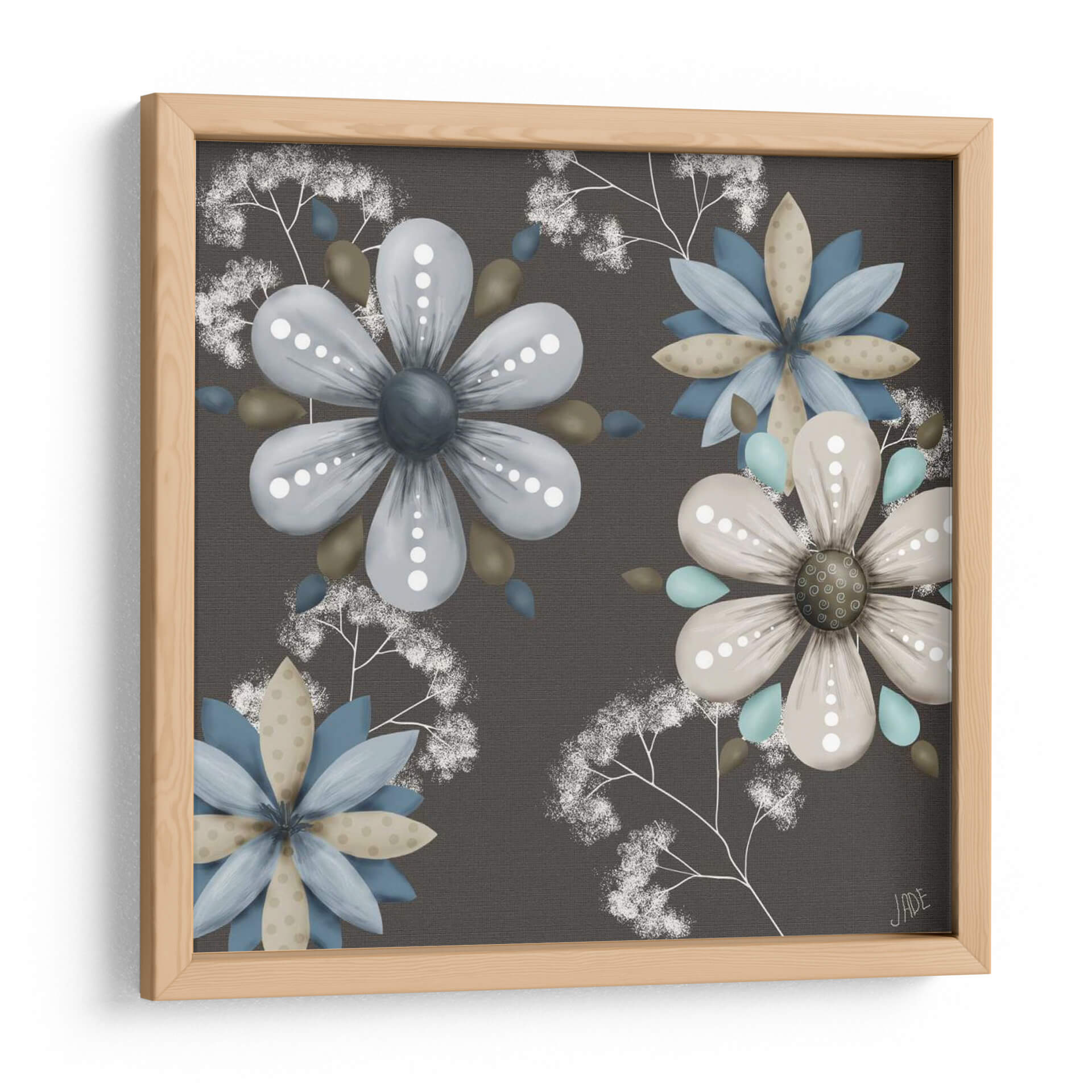 Transforma tu espacio con la delicada belleza del cuadro decorativo "Azul Floral En Sepia I" de Jade Reynolds. Esta obra de arte contemporánea presenta un cautivador arreglo floral sobre un fondo en tonos sepia, donde las flores, representadas en suaves azules, grises y beiges, se despliegan con pétalos detallados adornados con puntos blancos y acentos de color aguamarina. Las delicadas ramas y pequeños detalles florales blancos que salpican el fondo añaden una dimensión etérea, creando una composición equilibrada y armoniosa. El estilo artístico, con toques de realismo y una ejecución digital refinada, evoca una sensación de calma y serenidad, ideal para crear un ambiente relajante en tu dormitorio, un toque de sofisticación en tu sala de estar o un punto focal sutil y elegante en tu oficina. Este cuadro decorativo es perfecto para quienes buscan añadir un elemento natural y artístico a su decoración, fusionando colores neutros con toques de azul para una estética moderna y atemporal. Añade un aire de tranquilidad y estilo contemporáneo a cualquier ambiente con esta pieza única.