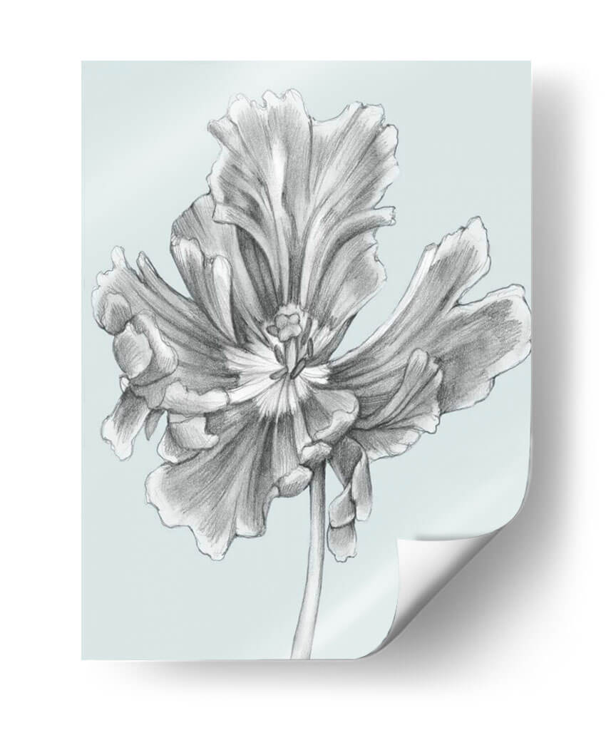 Adéntrate en la delicada belleza de 'Azul Plateada Tulipanes III', una obra de arte que captura la elegancia de un tulipán en plena floración con un exquisito detalle a lápiz. Jennifer Goldberger nos presenta una pieza que evoca una sensación de serenidad y sofisticación, ideal para quienes buscan añadir un toque de naturaleza refinada a su hogar u oficina. La composición se centra en la flor, permitiendo que cada pétalo texturizado y la sutil gradación de tonos grises y plateados capten la atención. El suave fondo azul claro proporciona un contraste sereno, realzando la tridimensionalidad y la delicadeza de la ilustración botánica. Esta obra es perfecta para crear un ambiente de calma y contemplación, funcionando como un punto focal sutil pero impactante en cualquier espacio moderno, minimalista o de inspiración nórdica. El estilo detallado del dibujo a lápiz aporta una cualidad atemporal y artística, invitando a la admiración de la forma y la estructura natural. Añade esta pieza a tu colección para un toque de elegancia floral que trasciende las tendencias.
