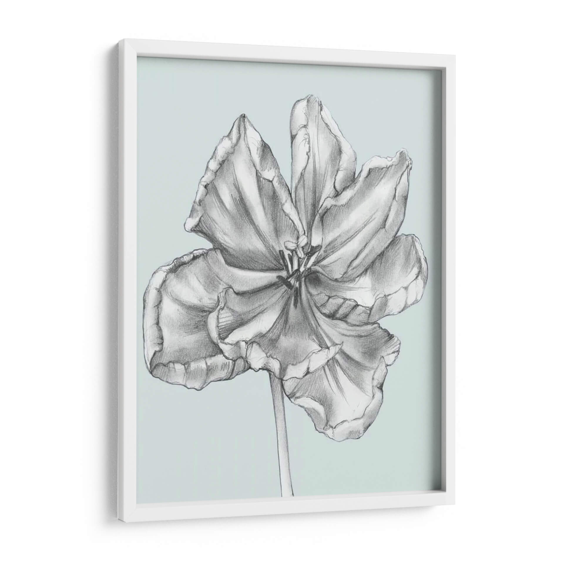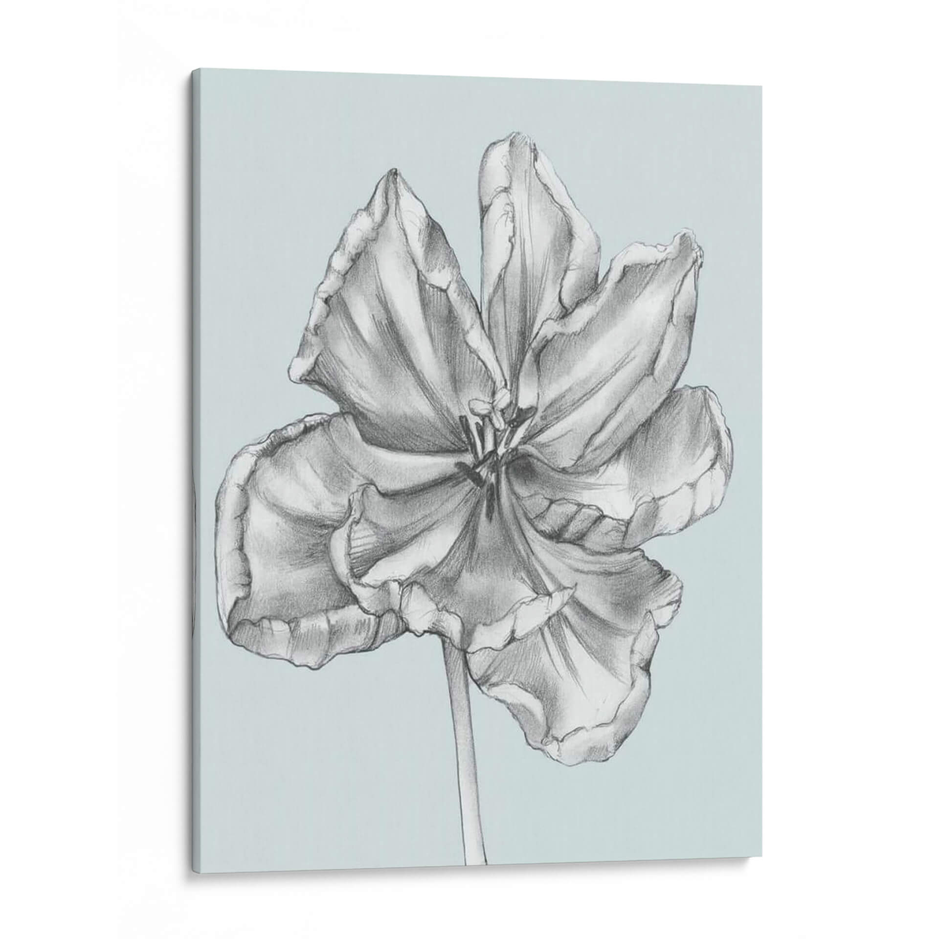 Embellece tu espacio con "Azul Plateada Tulipanes IV", una exquisita obra de arte de Jennifer Goldberger que captura la delicadeza y la forma de un tulipán con un detalle impresionante. Realizado en un estilo realista y detallado, este cuadro decorativo presenta un solo tulipán en pleno apogeo, con pétalos ondulados que parecen acariciar el aire. La técnica de lápiz sobre un fondo de tono azul pálido crea un contraste sutil pero cautivador, aportando una atmósfera de serenidad y elegancia atemporal. Los tonos plateados y azules pálidos evocan una sensación de calma y sofisticación, haciendo de esta pieza una adición perfecta para cualquier habitación que busque un toque de refinamiento natural. Ideal para dormitorios, salas de estar o incluso oficinas, "Azul Plateada Tulipanes IV" infunde una sensación de tranquilidad y belleza natural. Cada trazo del lápiz revela la maestría de la artista, dando vida a la textura y la profundidad de los pétalos. Este cuadro de tulipán es más que una simple decoración; es una invitación a la contemplación y a la apreciación de la belleza efímera de la naturaleza. Añade un toque de arte botánico clásico con un giro contemporáneo a tu hogar.