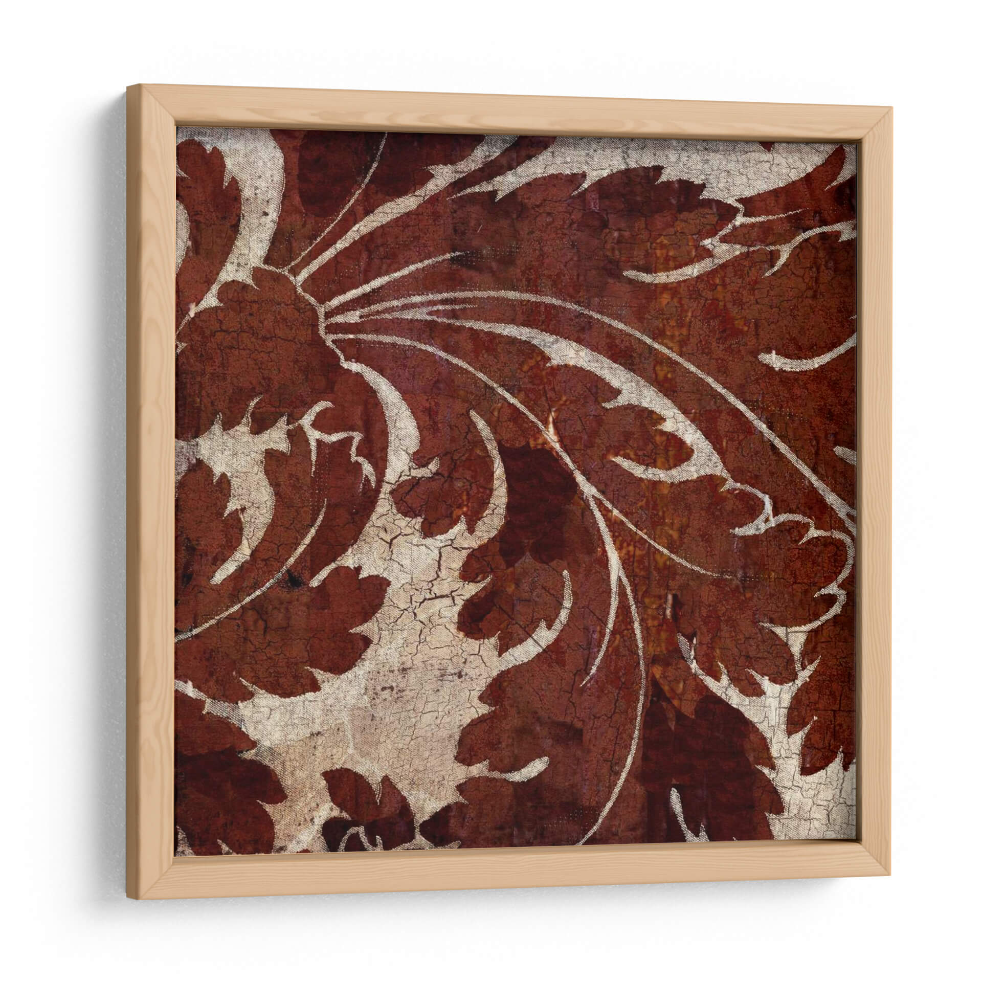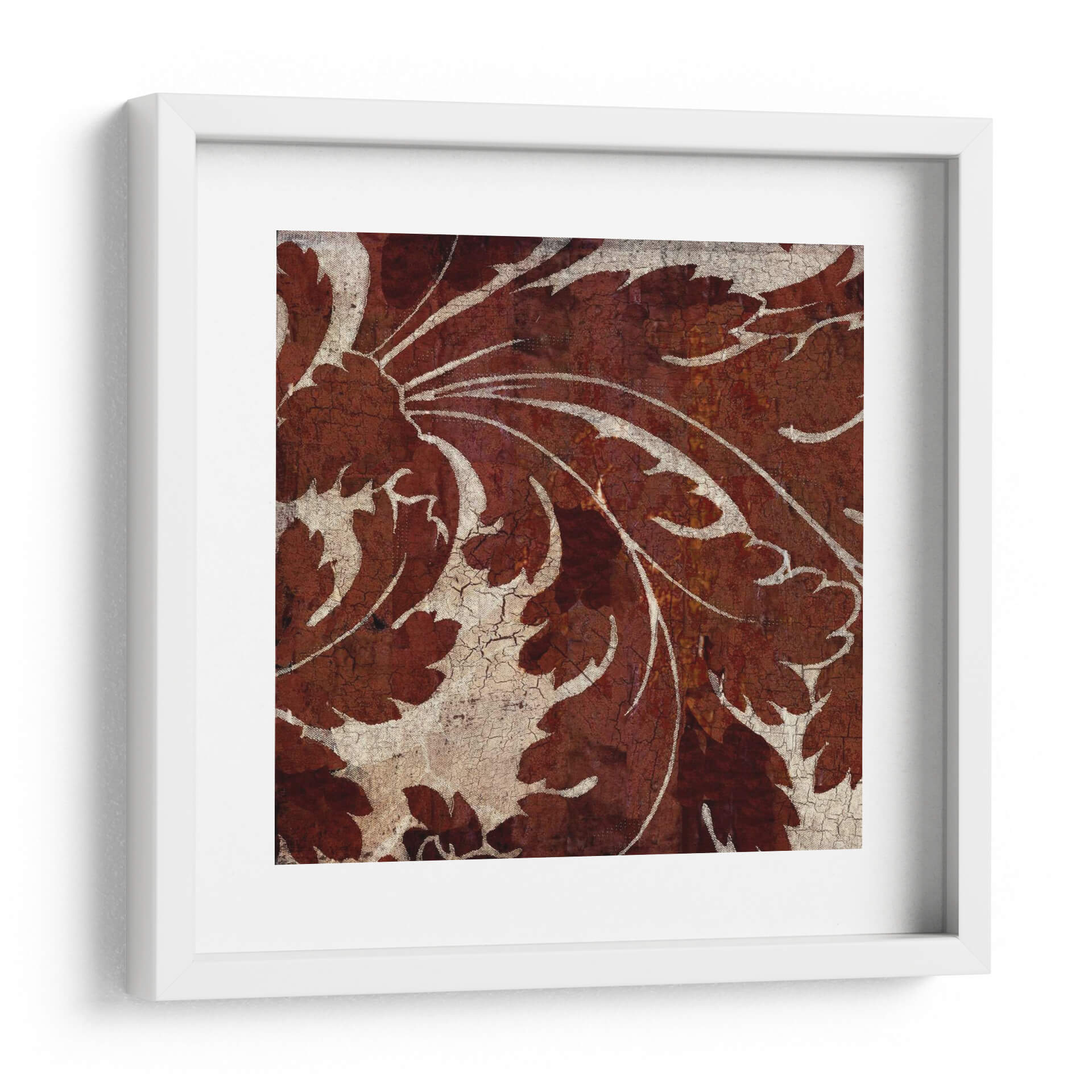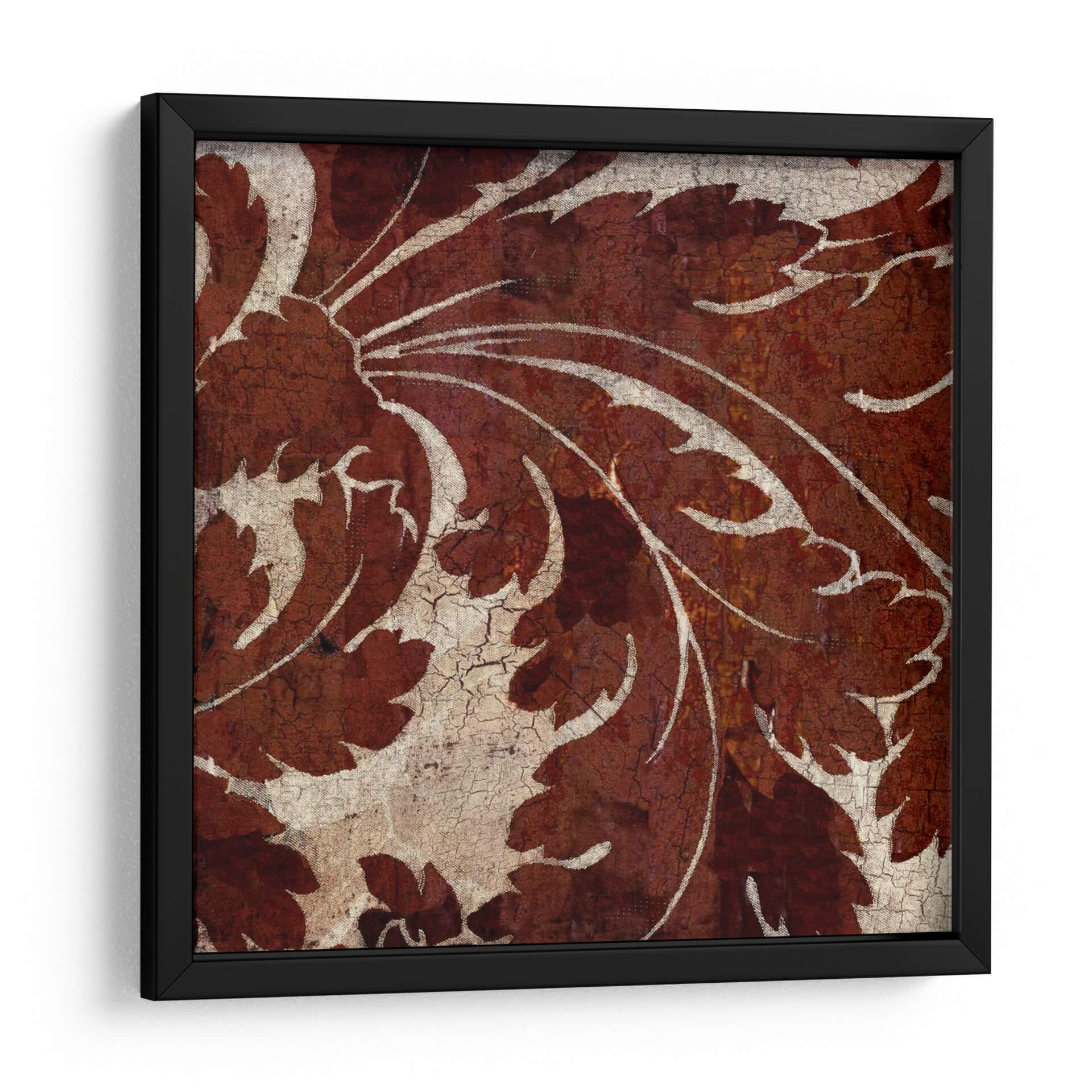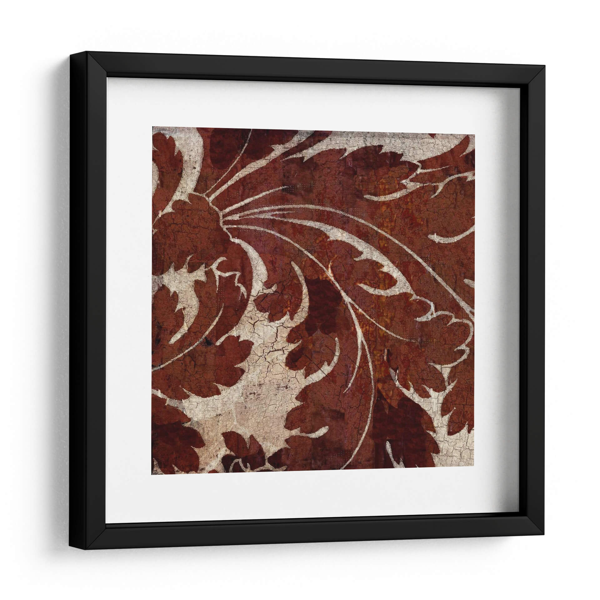 Descubre la obra "Azulejo Crujido I" de Louise Montillio, una pieza que evoca la belleza atemporal de los patrones botánicos con un toque rústico y texturizado. Este cuadro decorativo presenta un intrincado diseño de hojas y volutas en tonos profundos de terracota y óxido, contrastando elegantemente con un fondo agrietado en beige y blanco roto. La textura visual, similar a la de un azulejo antiguo desgastado por el tiempo, añade profundidad y carácter a la composición. Las líneas fluidas y orgánicas de las formas vegetales, ejecutadas con un estilo que recuerda a grabados clásicos pero con una sensibilidad contemporánea, invitan a la contemplación. La paleta de colores cálidos y terrosos crea una atmósfera acogedora y serena, perfecta para añadir un toque de sofisticación natural a cualquier espacio. Ideal como punto focal en un salón moderno, aportando calidez a un comedor o brindando una sensación de tranquilidad en un dormitorio. "Azulejo Crujido I" es más que una simple decoración de pared; es una invitación a conectar con la naturaleza y la historia a través del arte, transformando tu hogar en un refugio de estilo y elegancia.