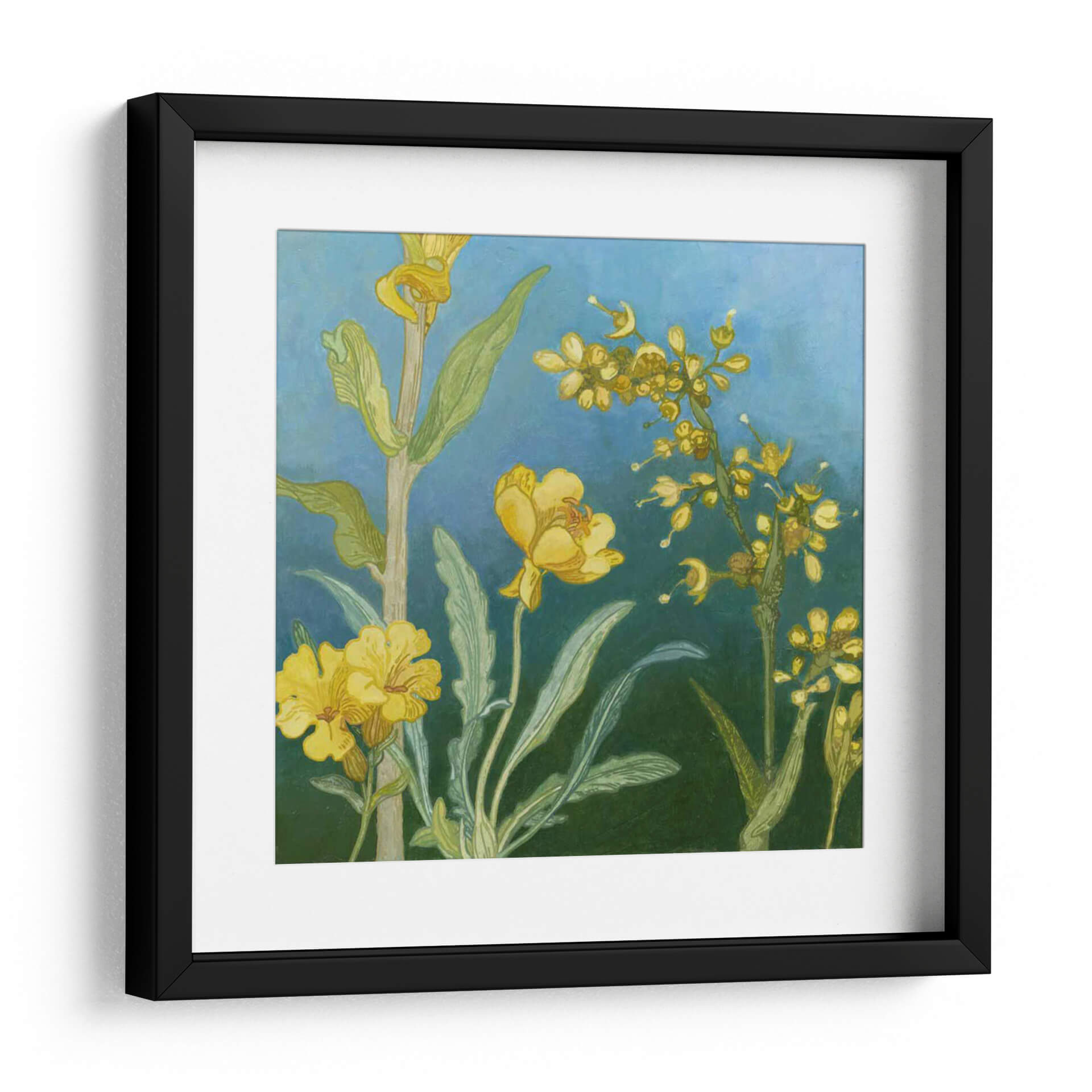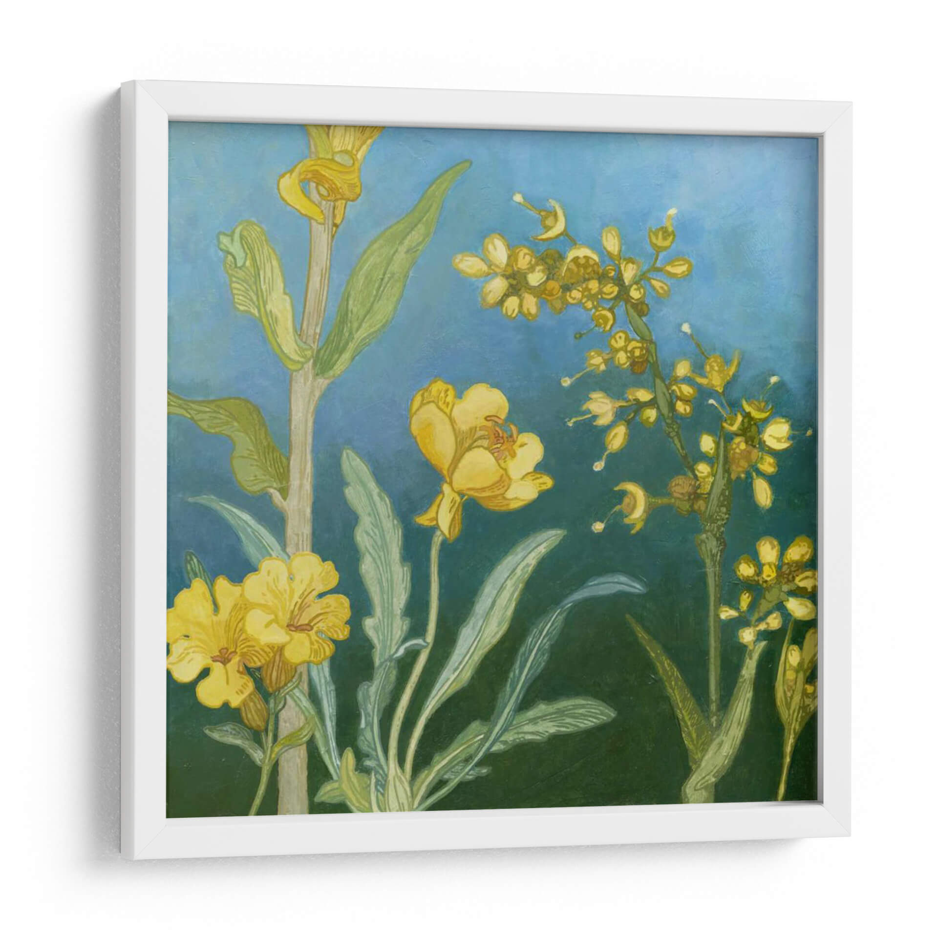 Sumérgete en la vibrante belleza de "Azure Blooms I", una cautivadora obra de arte digital de Megan Meagher que captura la esencia de la naturaleza con un toque contemporáneo. Este cuadro decorativo presenta un exuberante despliegue de flores amarillas radiantes, detalladamente representadas con pinceladas delicadas y expresivas, que contrastan maravillosamente contra un fondo azul profundo y evocador. Las diferentes tonalidades de azul crean una atmósfera de calma y serenidad, mientras que las flores, llenas de vida y detalle, irradian calidez y alegría. La composición, que combina elementos botánicos detallados con un estilo artístico que recuerda al impresionismo y al arte contemporáneo, invita a la contemplación. Cada pétalo y hoja está pintado con una sensibilidad que resalta la belleza intrínseca de las formas naturales. "Azure Blooms I" es ideal para añadir un toque de color y sofisticación a cualquier espacio, ya sea una sala de estar moderna, un dormitorio sereno o una oficina que busca inspiración. Transforma tu hogar en una galería personal con esta pieza única que combina la delicadeza de la flora con la audacia del arte moderno.