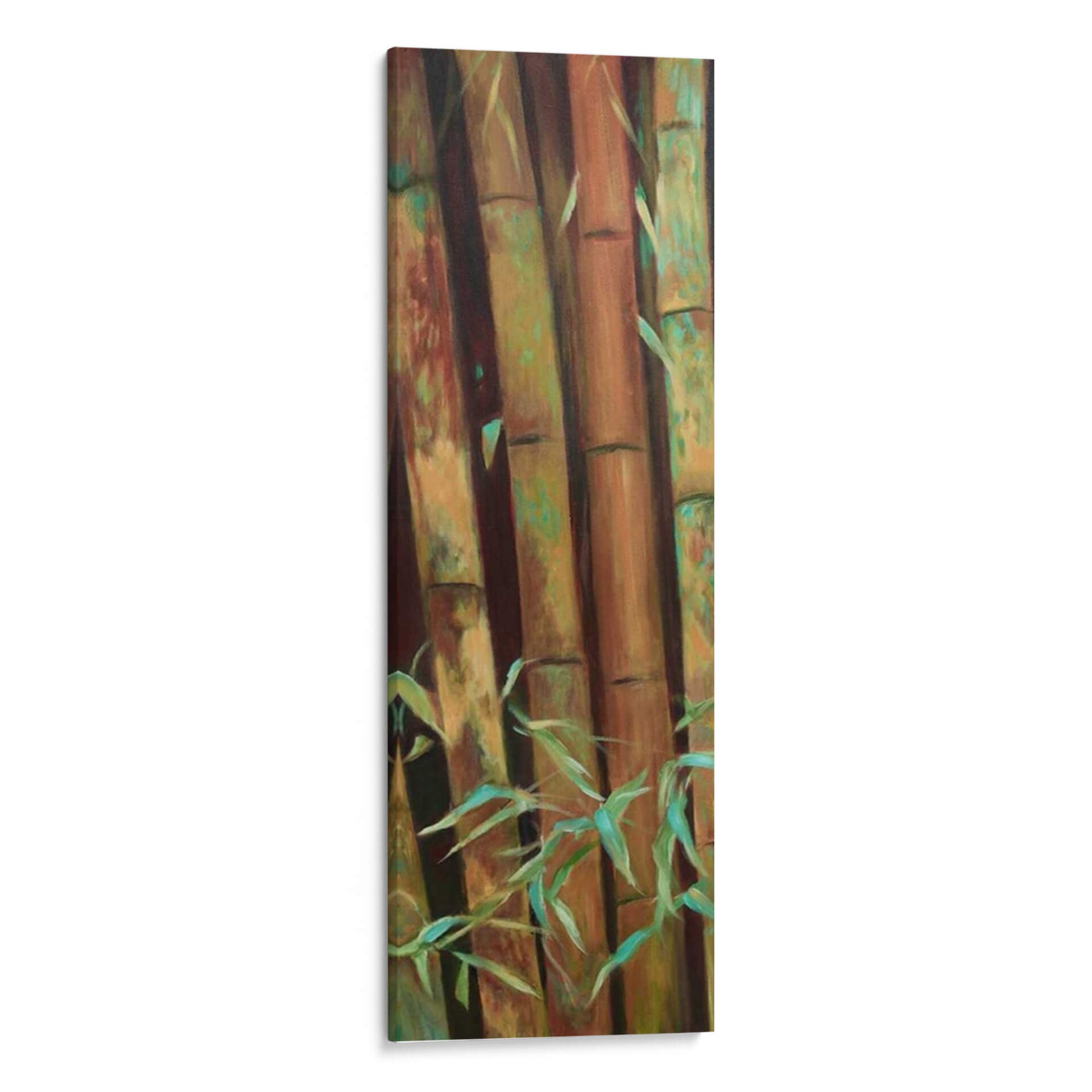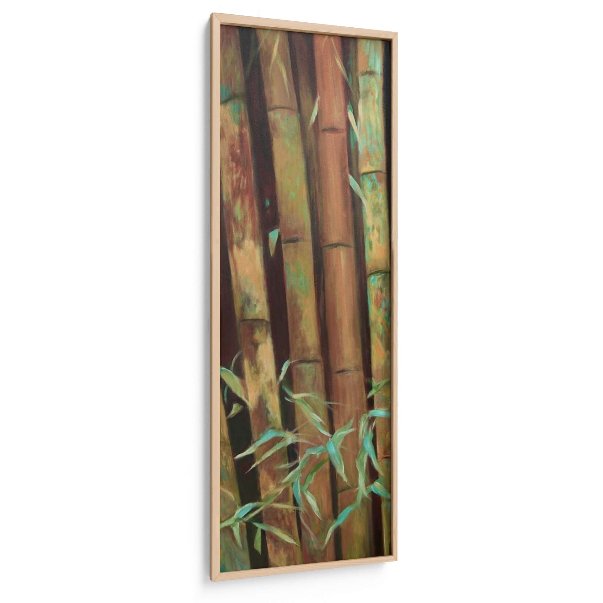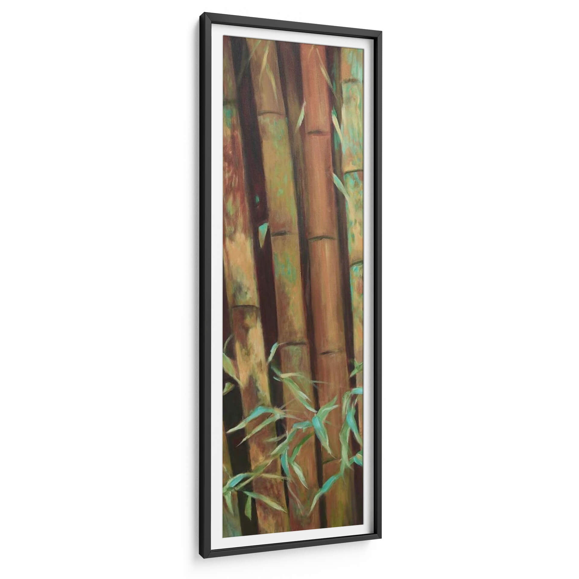 Sumérgete en la serenidad natural con "Bambú Final I", una obra de arte contemporáneo que captura la esencia de los cañaverales con una paleta de colores cálidos y terrosos, realzada por toques vibrantes de verde azulado. La artista Suzanne Wilkins presenta un estudio detallado de los tallos de bambú, utilizando pinceladas expresivas y una composición vertical que evoca crecimiento y estabilidad. Los tonos rojizos y dorados del bambú contrastan delicadamente con las hojas etéreas en tonos turquesa, creando una atmósfera de calma y contemplación. Este cuadro decorativo es perfecto para añadir un toque de naturaleza y sofisticación a cualquier espacio, desde salones modernos hasta estudios zen. Su estilo pictórico invita a la reflexión, transformando una escena botánica en una experiencia emocional. "Bambú Final I" no es solo una pieza decorativa, sino una ventana a la tranquilidad, ideal para quienes buscan una conexión visual con la armonía del mundo natural. Su formato alargado lo hace ideal para pasillos, o como un acento vertical que estiliza y eleva la decoración de tu hogar u oficina, aportando una sensación de paz y equilibrio.