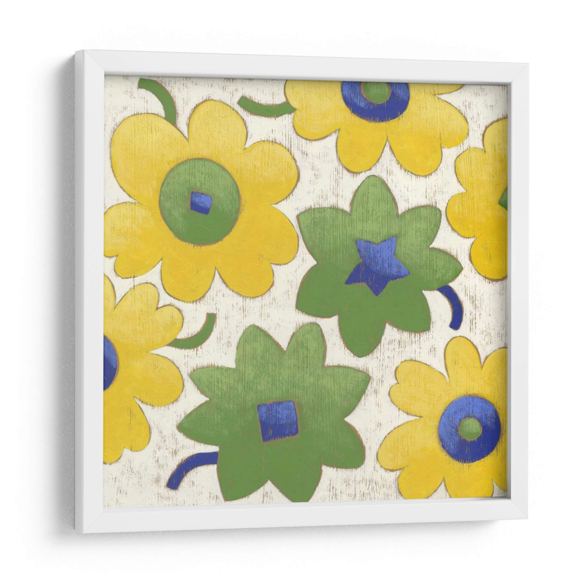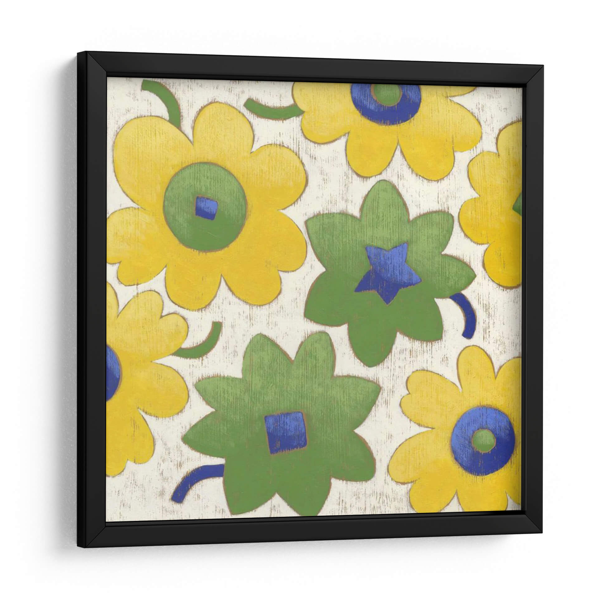 Sumérgete en la alegría y el color con "Bellissimo Iii", una obra de arte cautivadora del artista Chariklia Zarris. Este cuadro decorativo presenta un patrón vibrante de flores estilizadas en alegres tonos de amarillo y verde, con toques de azul profundo que añaden un contraste llamativo. La composición, con sus formas audaces y simplificadas, evoca una sensación de optimismo y vitalidad, ideal para infundir energía positiva en cualquier espacio. El fondo texturizado, que simula una madera rústica, aporta una calidez terrenal que complementa las flores de manera sutil. "Bellissimo Iii" es perfecto para quienes buscan añadir un toque de naturaleza moderna y un acento de color alegre a su hogar u oficina. Su estilo distintivo lo convierte en una pieza de conversación, capaz de transformar un ambiente y reflejar una personalidad dinámica y optimista. Considera esta pieza para dar vida a una sala de estar, un dormitorio o un espacio de trabajo que necesite un toque de frescura y un diseño contemporáneo y lúdico. Un verdadero festín visual para los amantes del arte abstracto y floral.