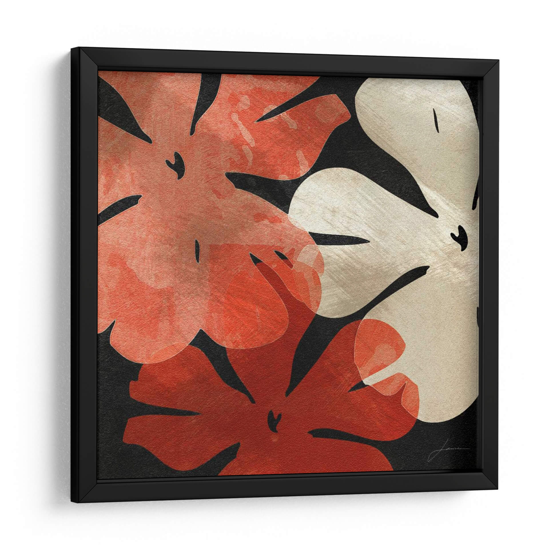 Transforma tu espacio con la cautivadora obra de arte "Bloomer Tiles III" de James Burghardt. Este cuadro decorativo presenta una explosión de formas florales estilizadas sobre un fondo oscuro y profundo, creando un contraste vibrante y moderno. La paleta de colores, dominada por intensos rojos y naranjas que se funden suavemente con toques de beige y blanco roto, evoca una sensación de calidez y energía, equilibrada por la elegancia del negro. El estilo abstracto y simplificado de las flores, con contornos nítidos y texturas sutiles, añade un toque contemporáneo y sofisticado a cualquier decoración. La composición dinámica y el juego de luces y sombras invitan a la contemplación, aportando un punto focal de interés visual sin abrumar. Ideal para añadir un toque de color y personalidad a salas de estar, comedores o estudios, este cuadro decorativo contemporáneo es perfecto para aquellos que buscan piezas de arte que inspiren y embellezcan su hogar u oficina. La maestría de Burghardt se manifiesta en la capacidad de crear impacto visual a través de elementos orgánicos interpretados de manera moderna. Añade un toque artístico único y lleno de vida a tus paredes con esta pieza versátil y de gran impacto.